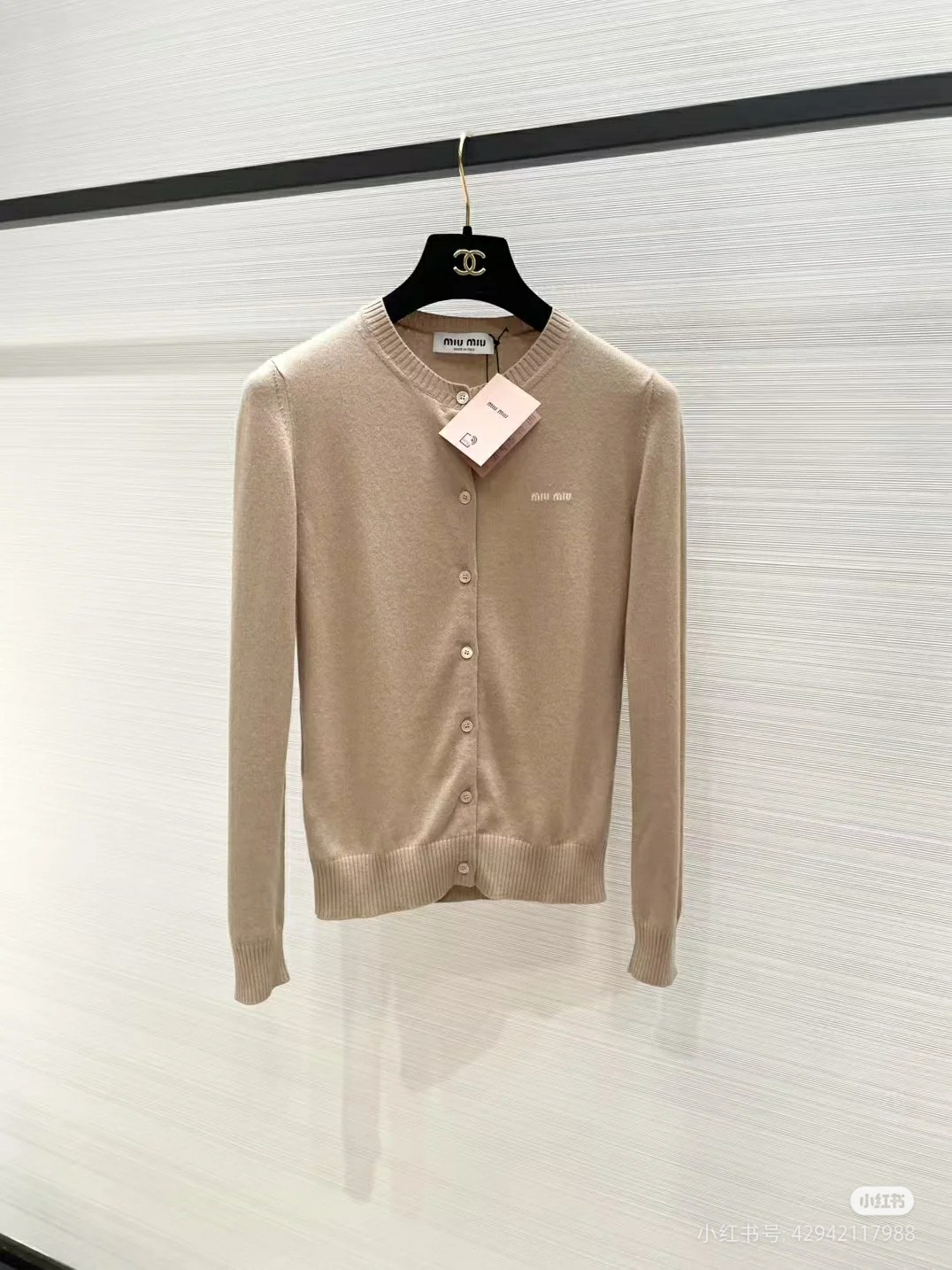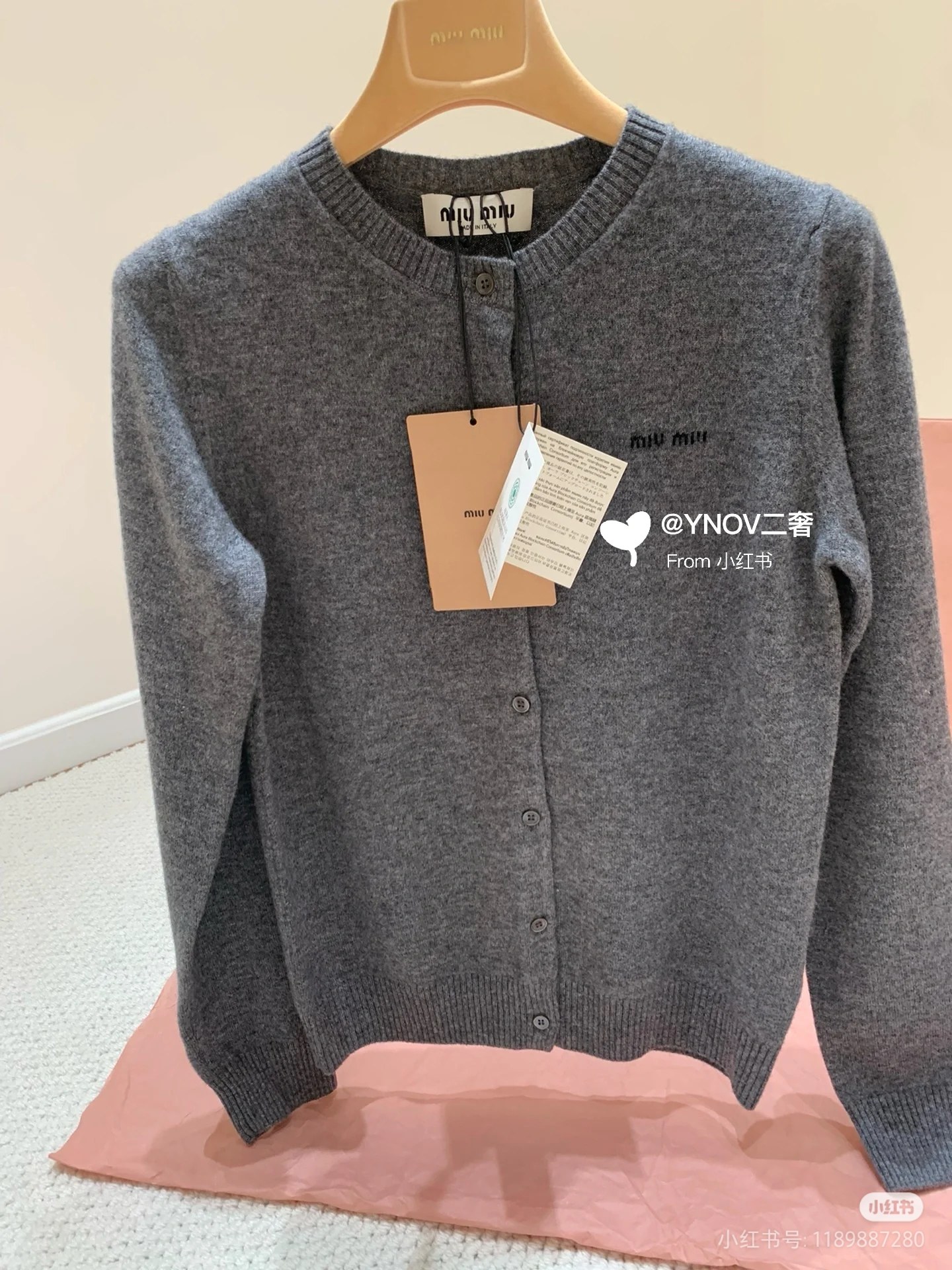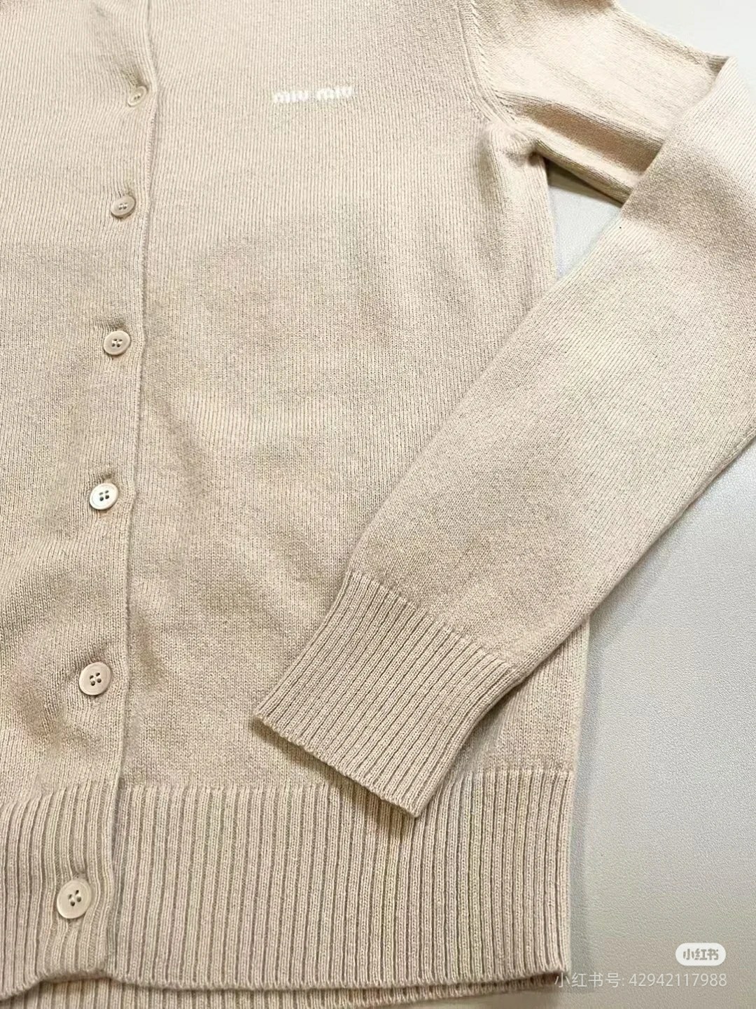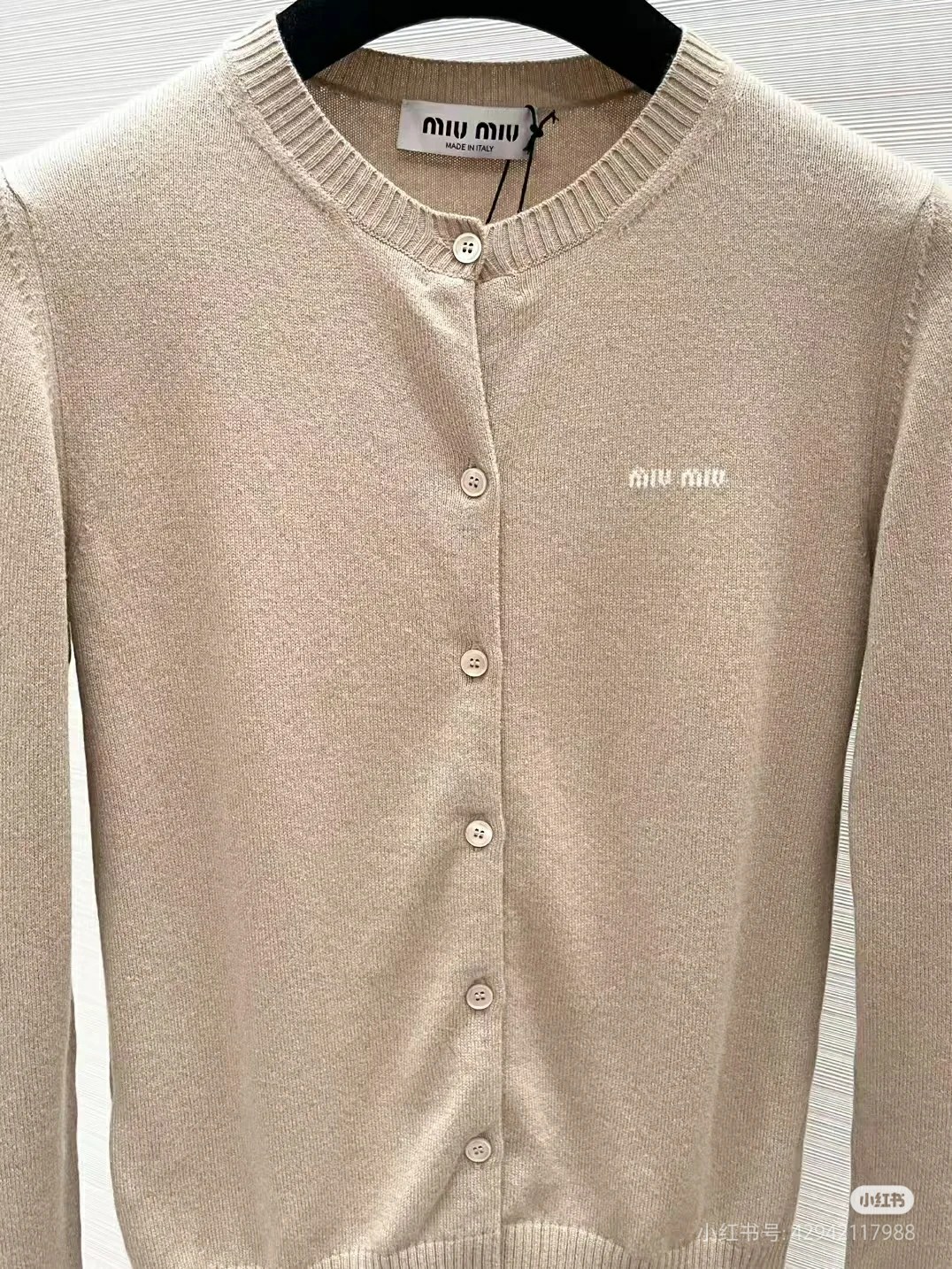 这款衣服是AAAAA 1:1 质量 (非常棒). 使用了和原版一模一样的材料. 商标部分也保持了和缪缪/Miu Miu一样. 图片拍摄是实物衣服拍摄, 您所收到的实物保证和我们图片一模一样.