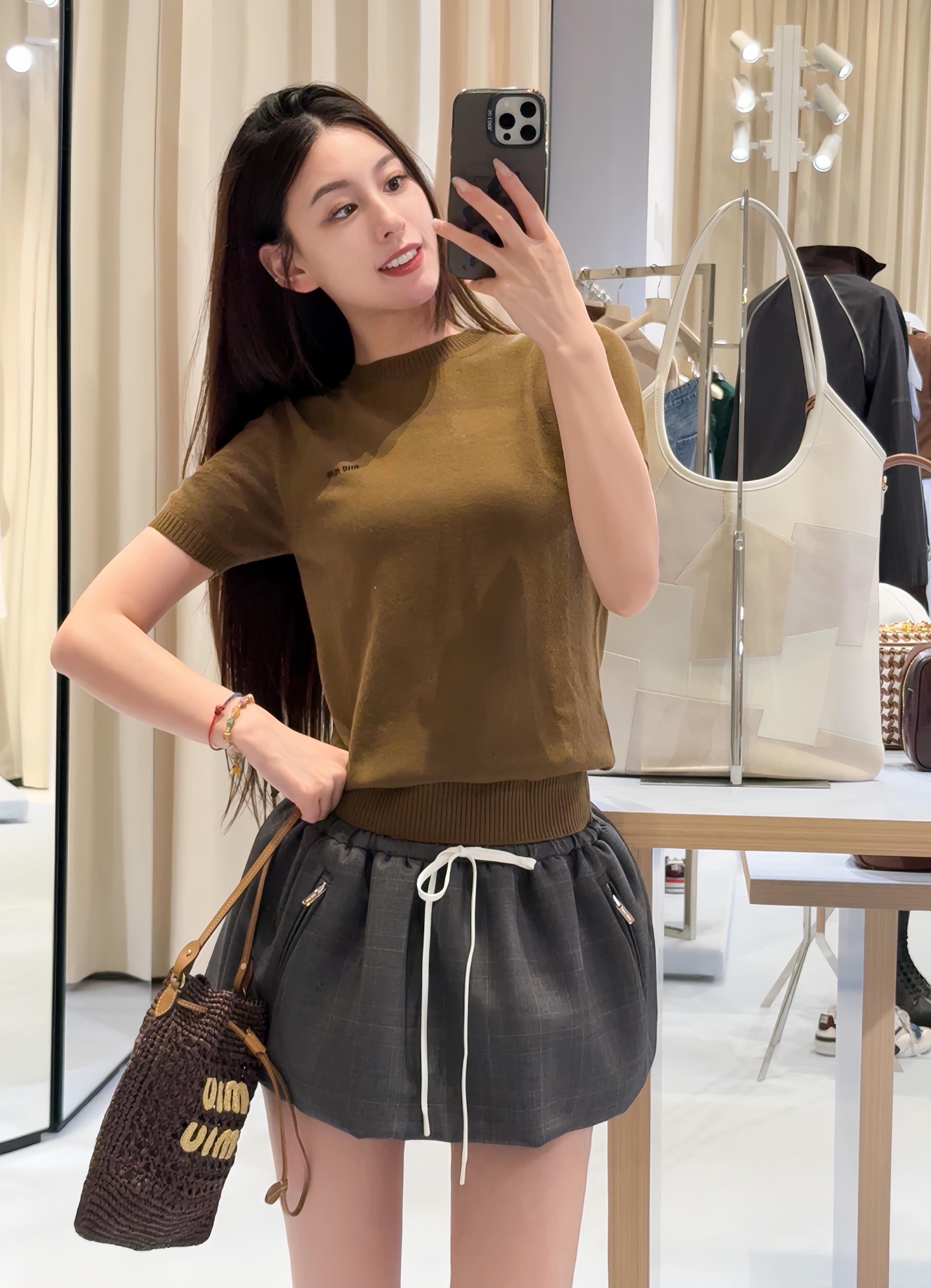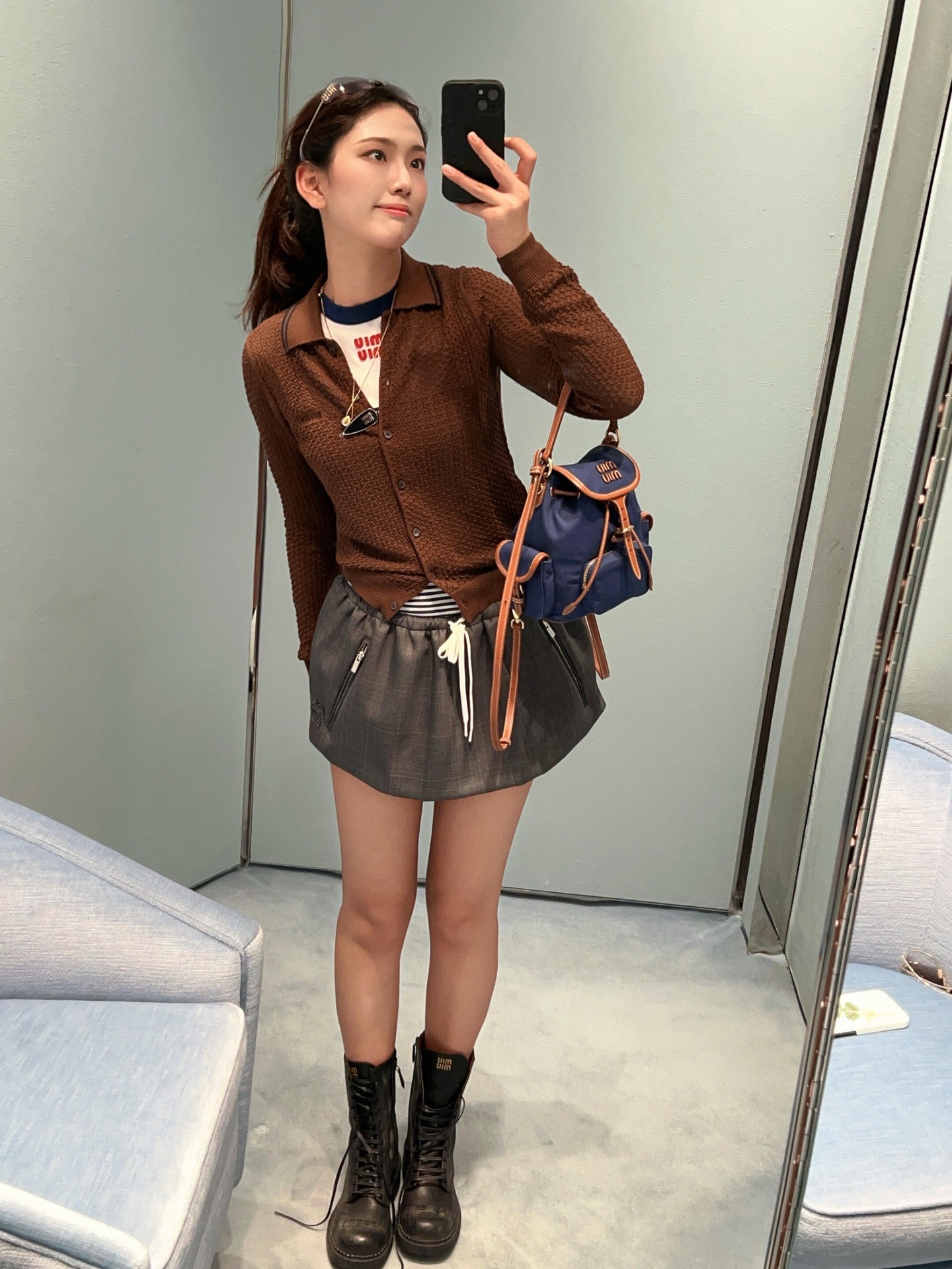 这款衣服是AAAAA 1:1 质量 (非常棒). 使用了和原版一模一样的材料. 商标部分也保持了和缪缪/Miu Miu一样. 图片拍摄是实物衣服拍摄, 您所收到的实物保证和我们图片一模一样.