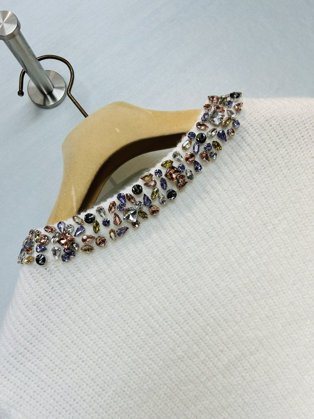 这款衣服是AAAAA 1:1 质量 (非常棒). 使用了和原版一模一样的材料. 商标部分也保持了和缪缪/Miu Miu一样. 图片拍摄是实物衣服拍摄, 您所收到的实物保证和我们图片一模一样.