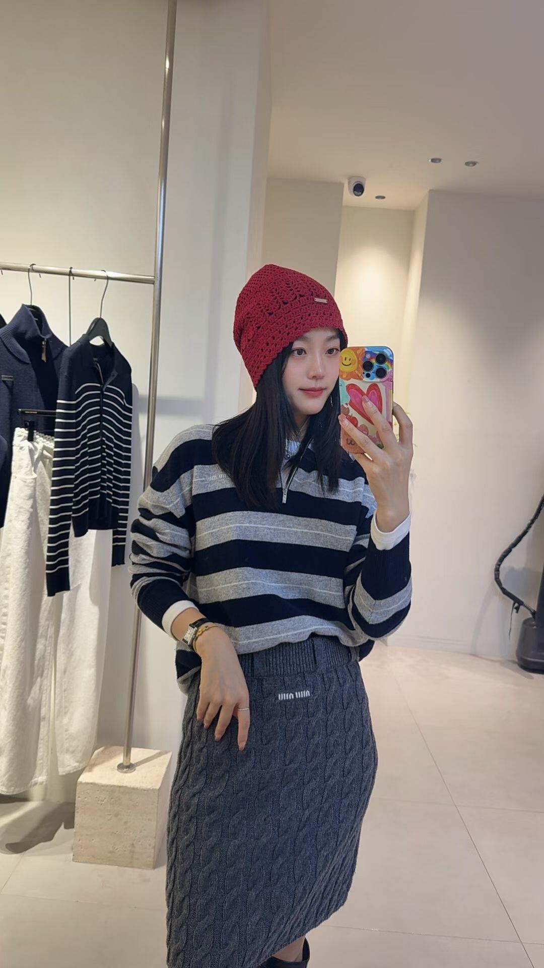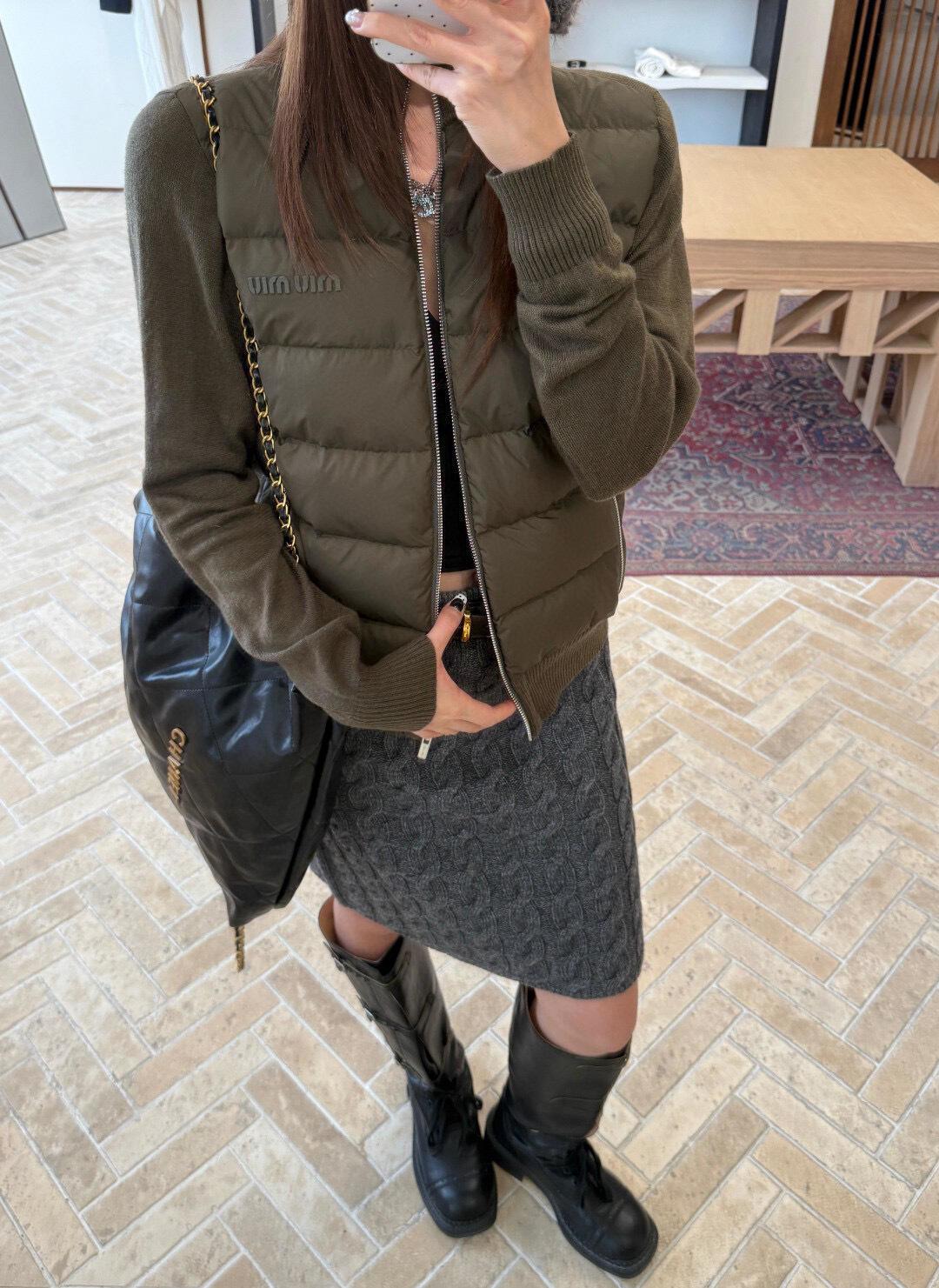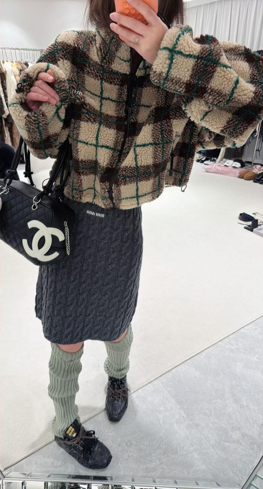 这款衣服是AAAAA 1:1 质量 (非常棒). 使用了和原版一模一样的材料. 商标部分也保持了和缪缪/Miu Miu一样. 图片拍摄是实物衣服拍摄, 您所收到的实物保证和我们图片一模一样.