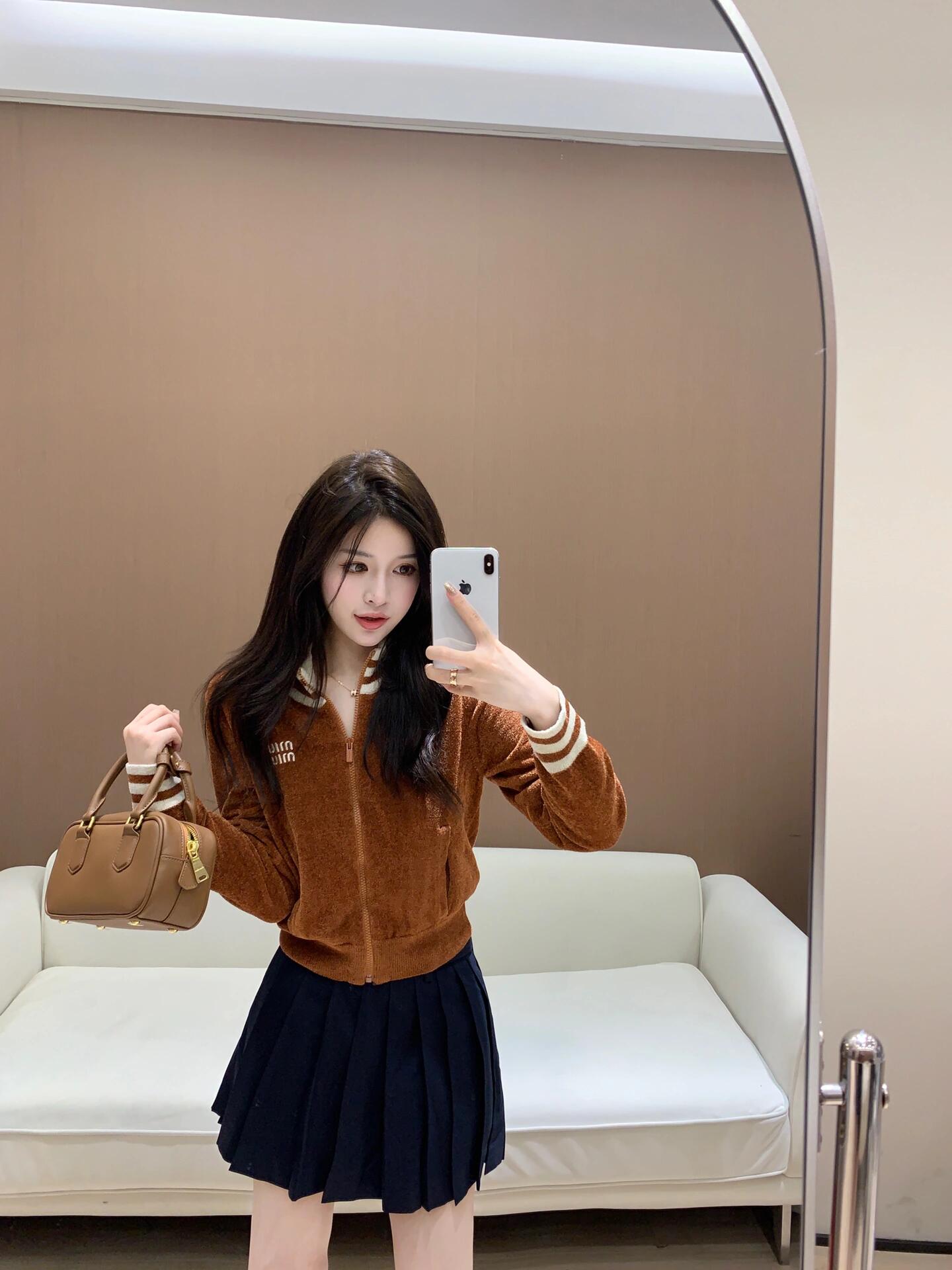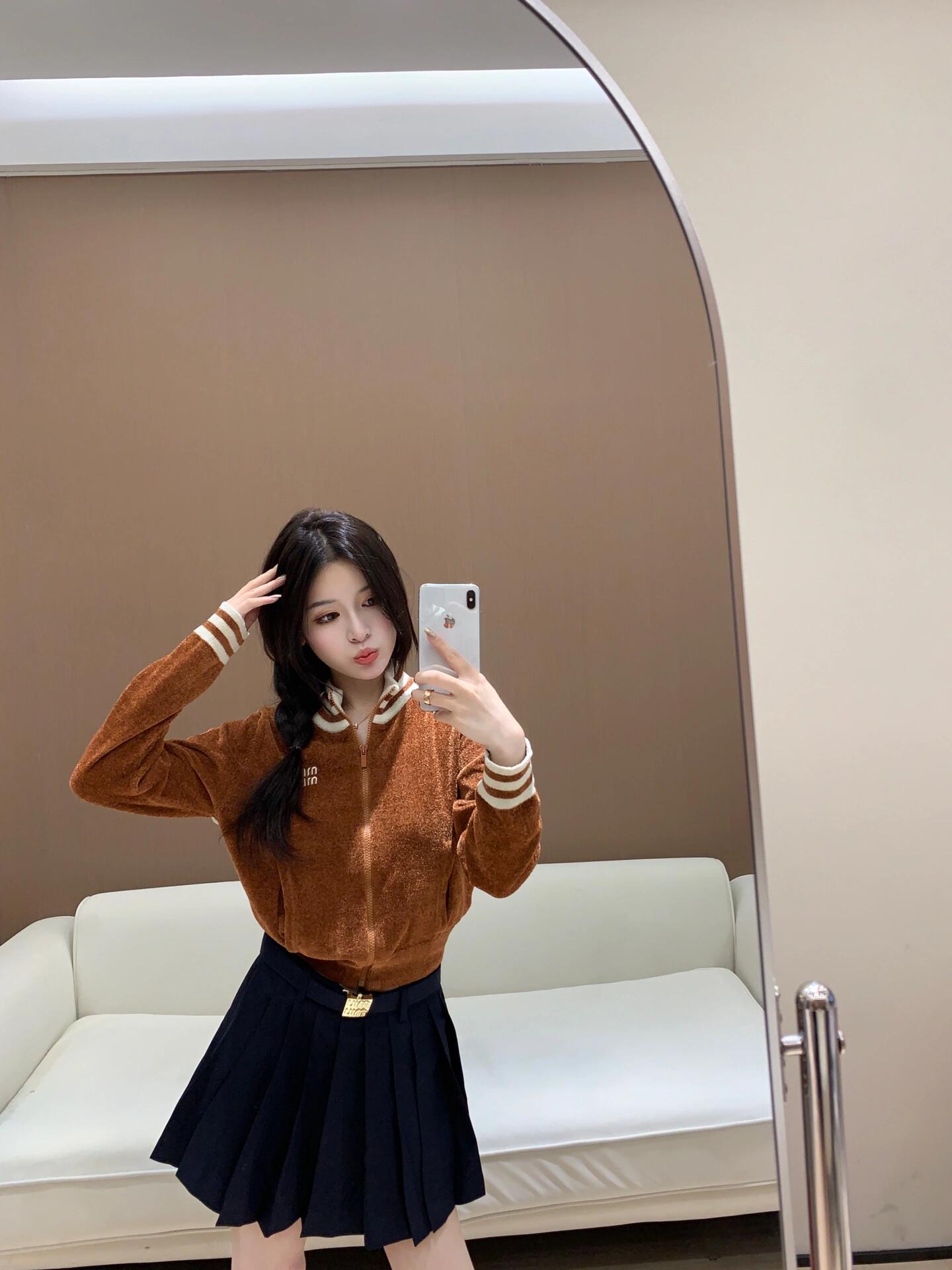 这款衣服是AAAAA 1:1 质量 (非常棒). 使用了和原版一模一样的材料. 商标部分也保持了和缪缪/Miu Miu一样. 图片拍摄是实物衣服拍摄, 您所收到的实物保证和我们图片一模一样.