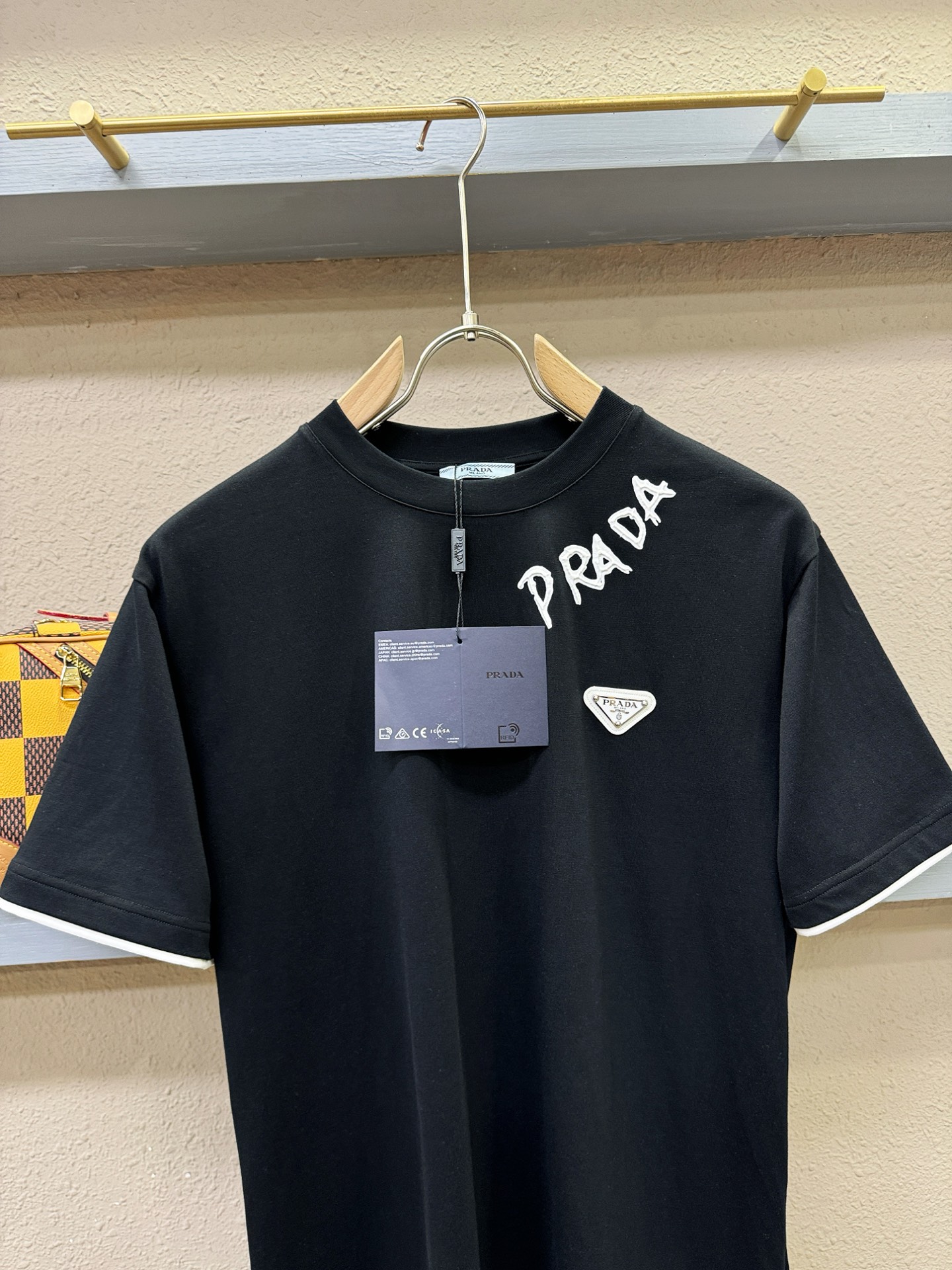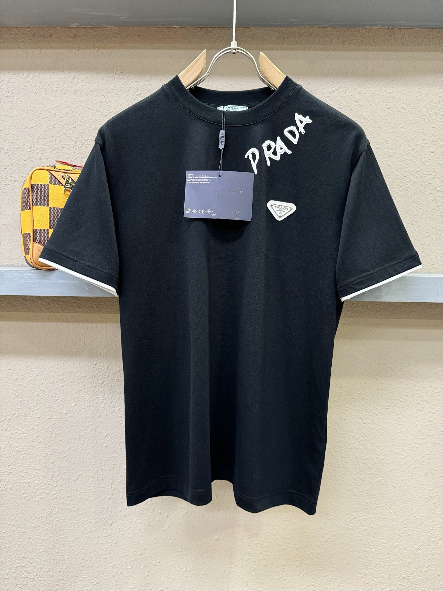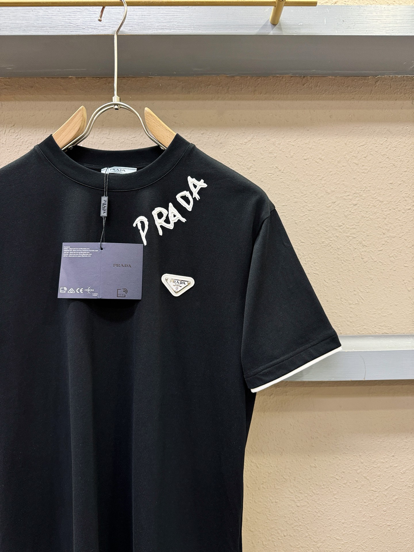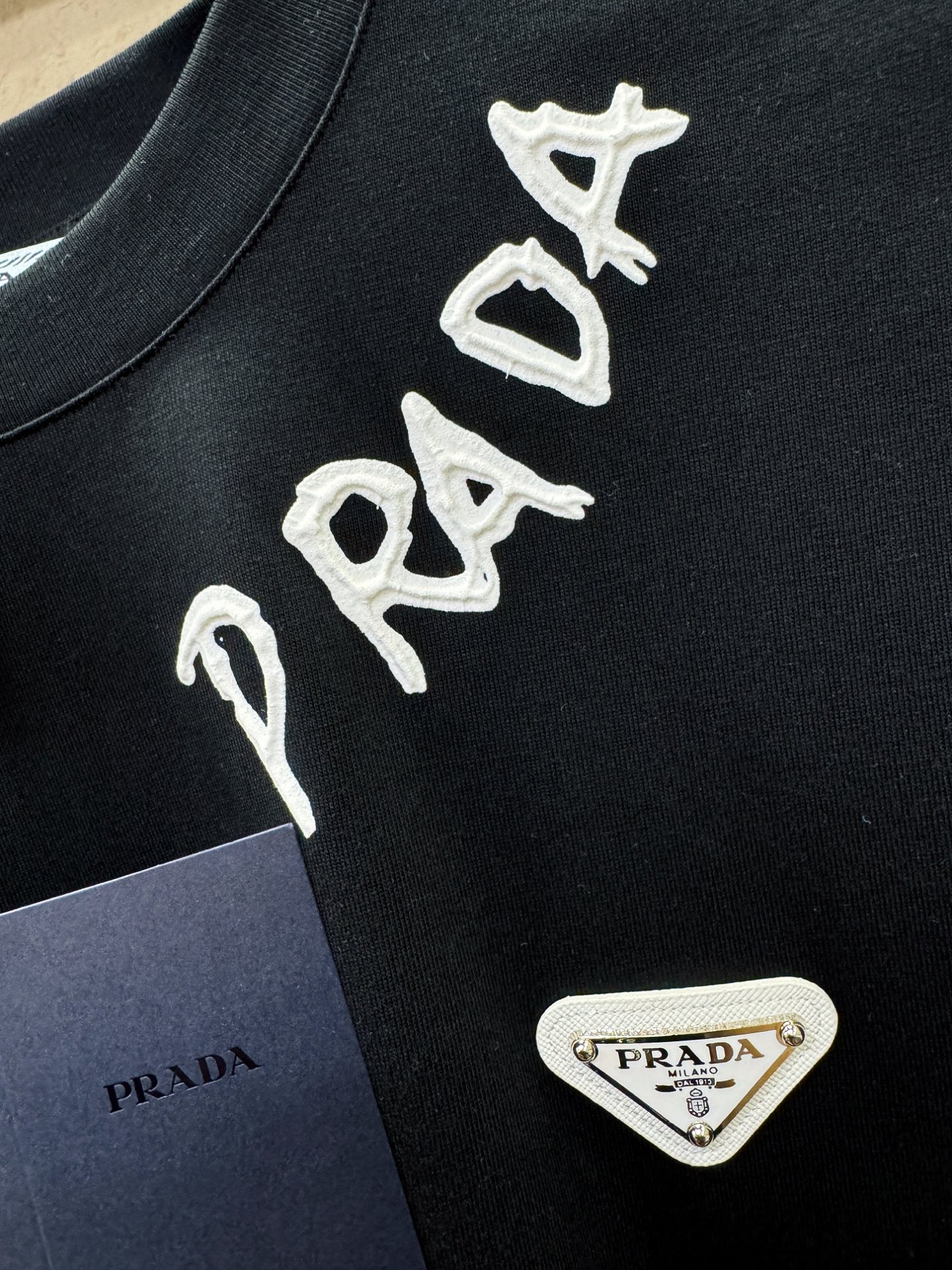 这款衣服是AAAAA 1:1 质量 (非常棒). 使用了和原版一模一样的材料. 商标部分也保持了和普拉达/Prada一样. 图片拍摄是实物衣服拍摄, 您所收到的实物保证和我们图片一模一样.