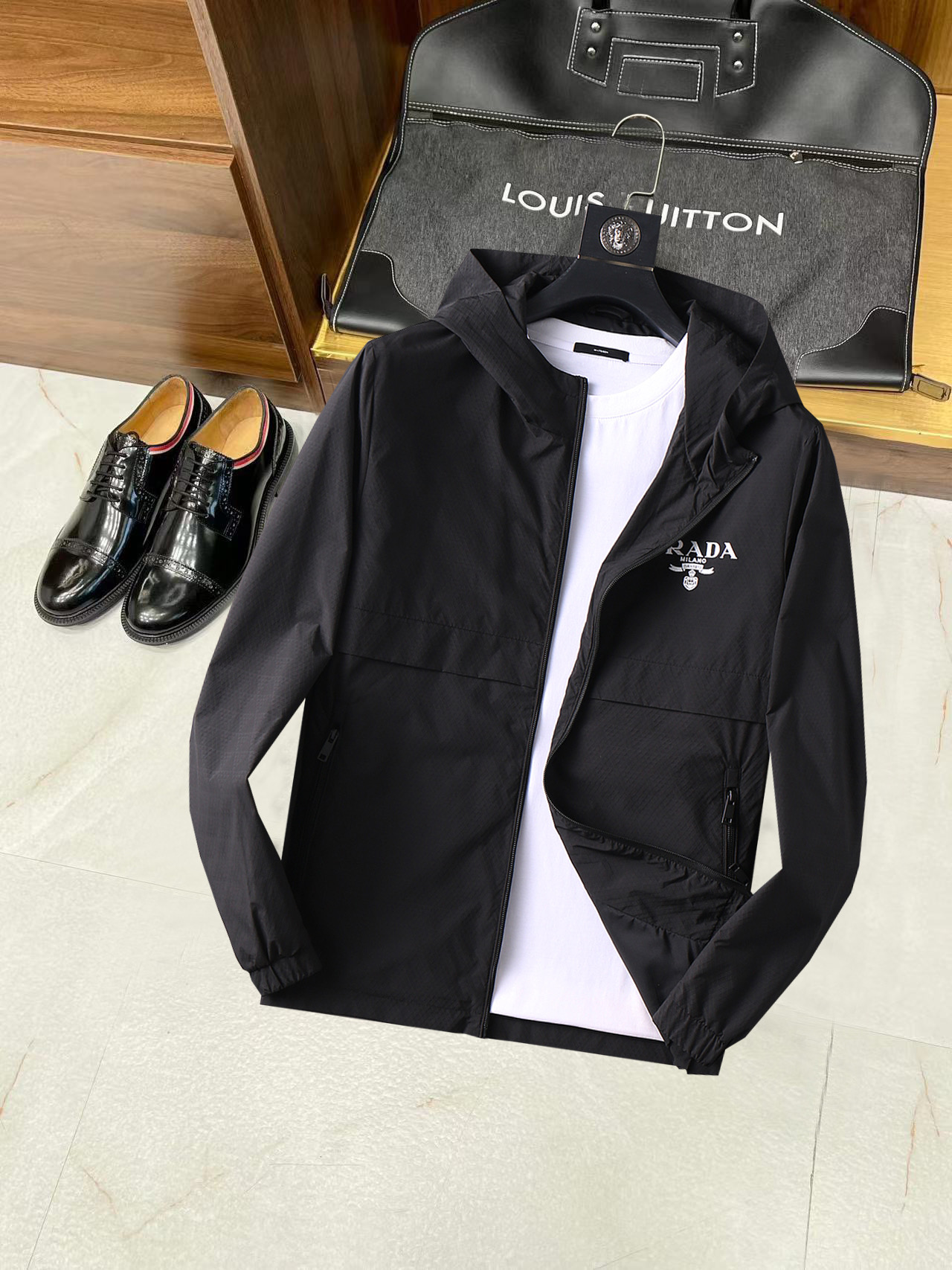 这款衣服是AAAAA 1:1 质量 (非常棒). 使用了和原版一模一样的材料. 商标部分也保持了和普拉达/Prada一样. 图片拍摄是实物衣服拍摄, 您所收到的实物保证和我们图片一模一样.