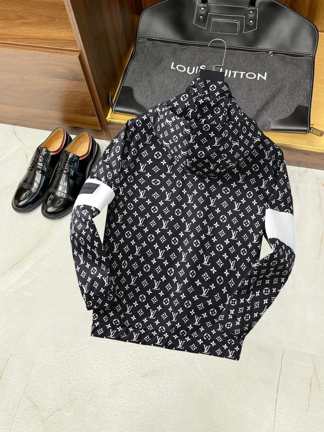 这款衣服是AAAAA 1:1 质量 (非常棒). 使用了和原版一模一样的材料. 商标部分也保持了和路易威登/Louis Vuitton一样. 图片拍摄是实物衣服拍摄, 您所收到的实物保证和我们图片一模一样.