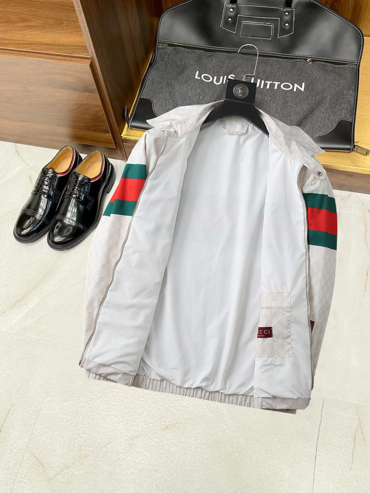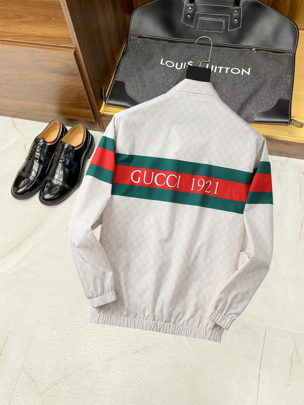 这款衣服是AAAAA 1:1 质量 (非常棒). 使用了和原版一模一样的材料. 商标部分也保持了和古奇/Gucci一样. 图片拍摄是实物衣服拍摄, 您所收到的实物保证和我们图片一模一样.
