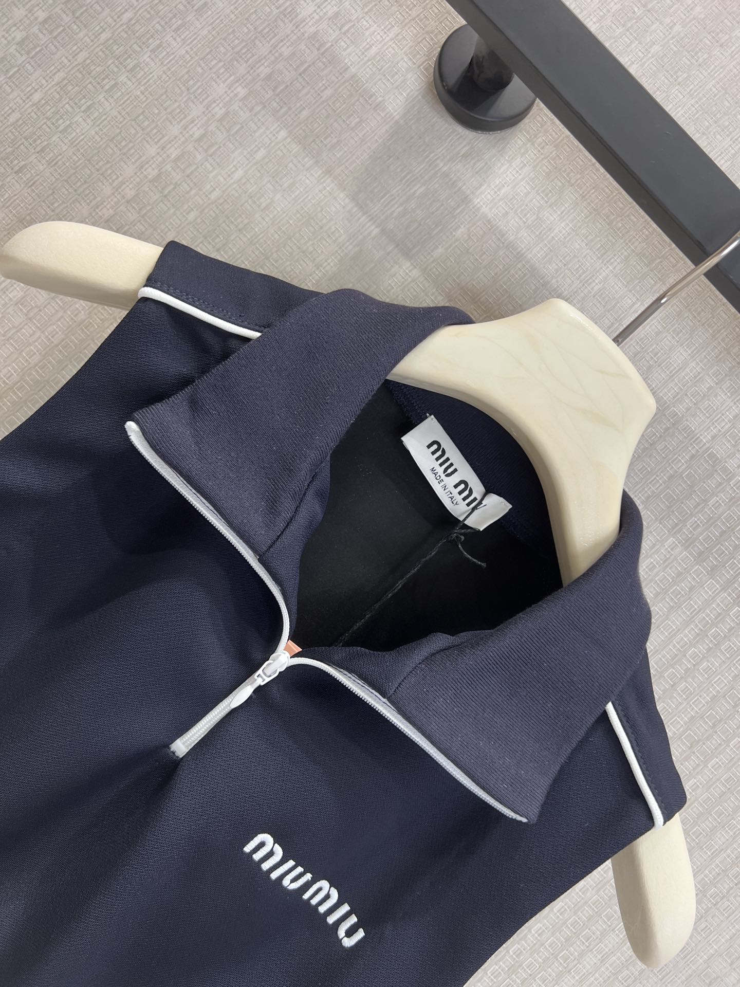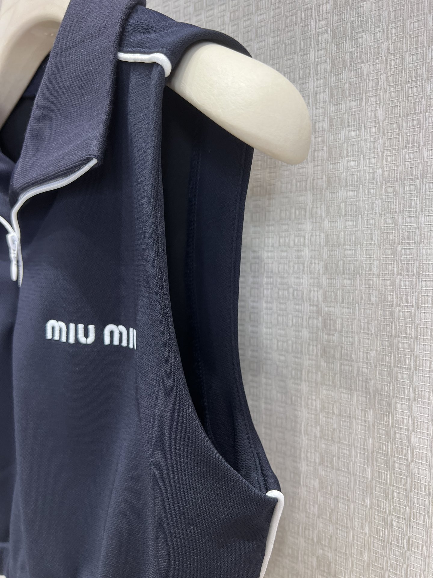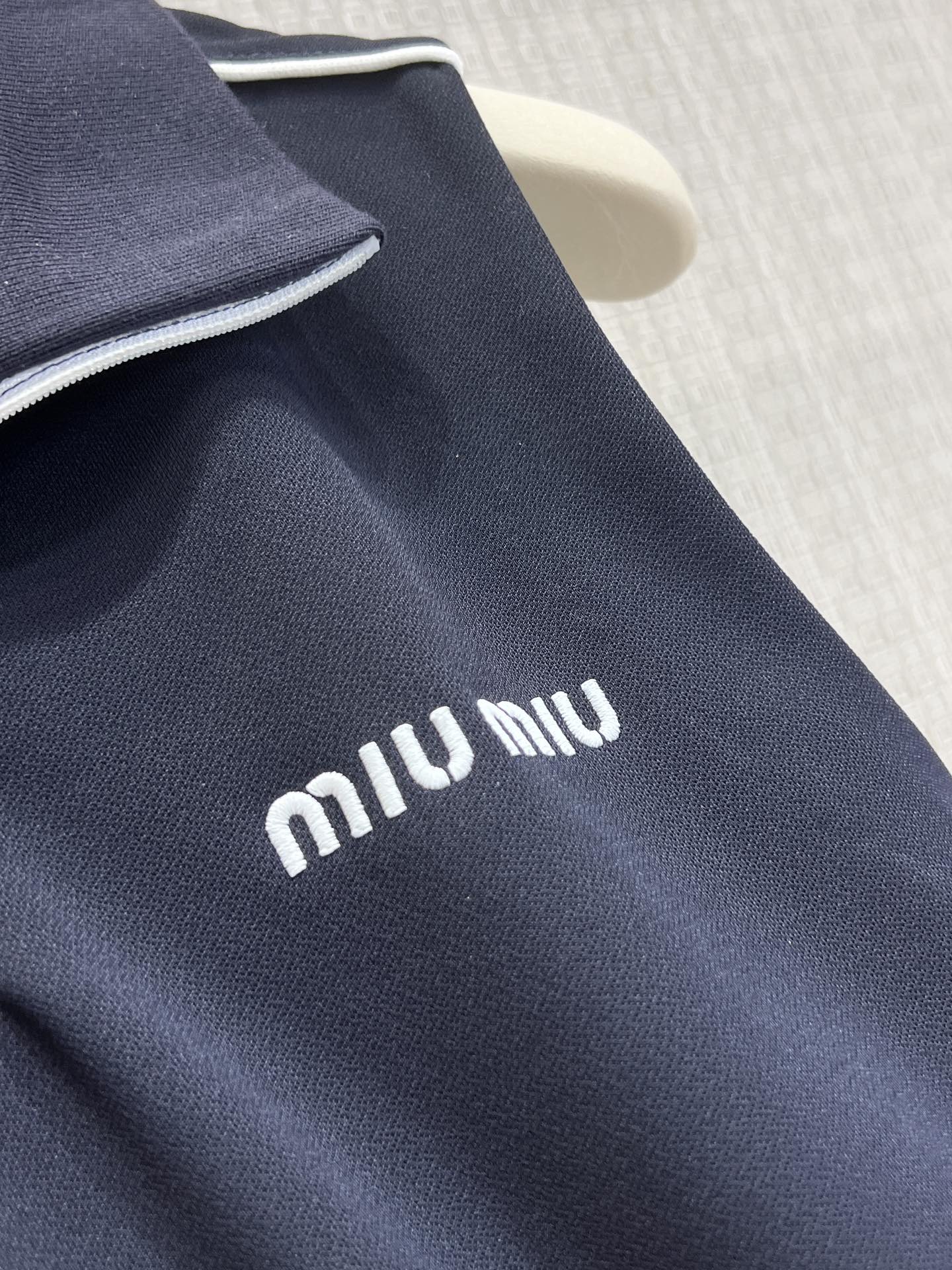 这款衣服是AAAAA 1:1 质量 (非常棒). 使用了和原版一模一样的材料. 商标部分也保持了和缪缪/Miu Miu一样. 图片拍摄是实物衣服拍摄, 您所收到的实物保证和我们图片一模一样.