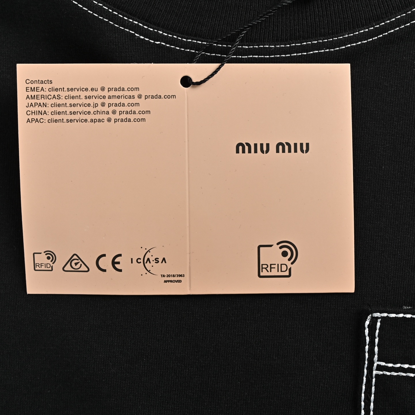 这款衣服是AAAAA 1:1 质量 (非常棒). 使用了和原版一模一样的材料. 商标部分也保持了和缪缪/Miu Miu一样. 图片拍摄是实物衣服拍摄, 您所收到的实物保证和我们图片一模一样.
