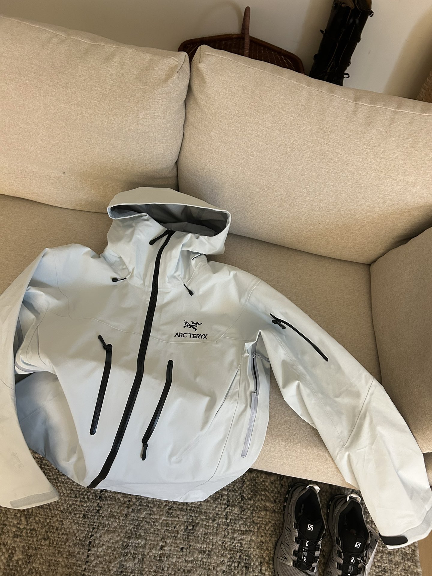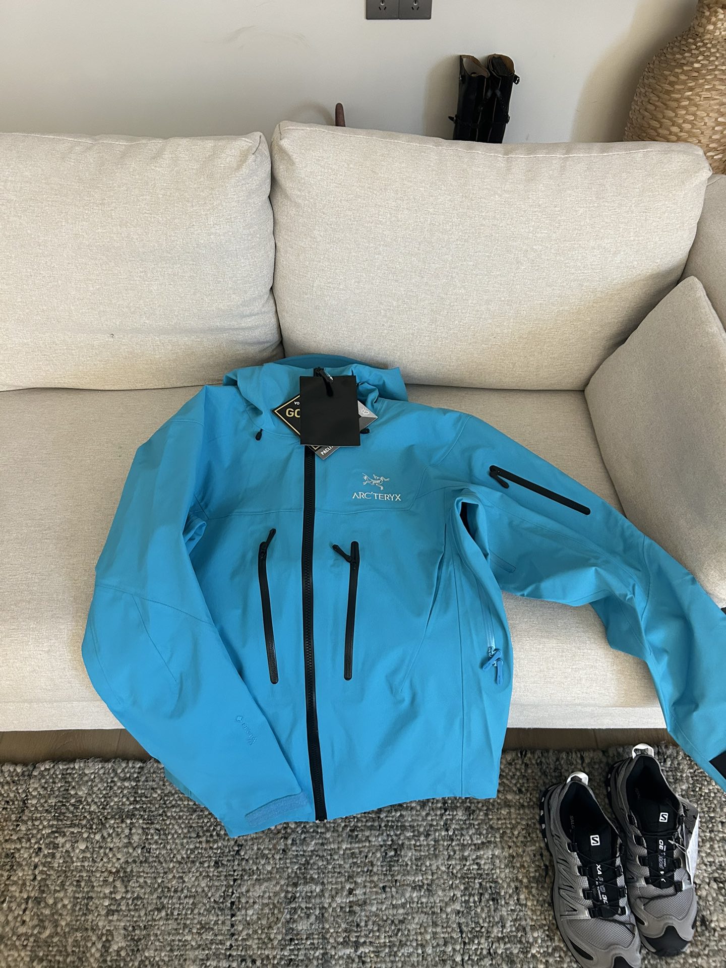 这款衣服是AAAAA 1:1 质量 (非常棒). 使用了和原版一模一样的材料. 商标部分也保持了和ARC'TERYX一样. 图片拍摄是实物衣服拍摄, 您所收到的实物保证和我们图片一模一样.