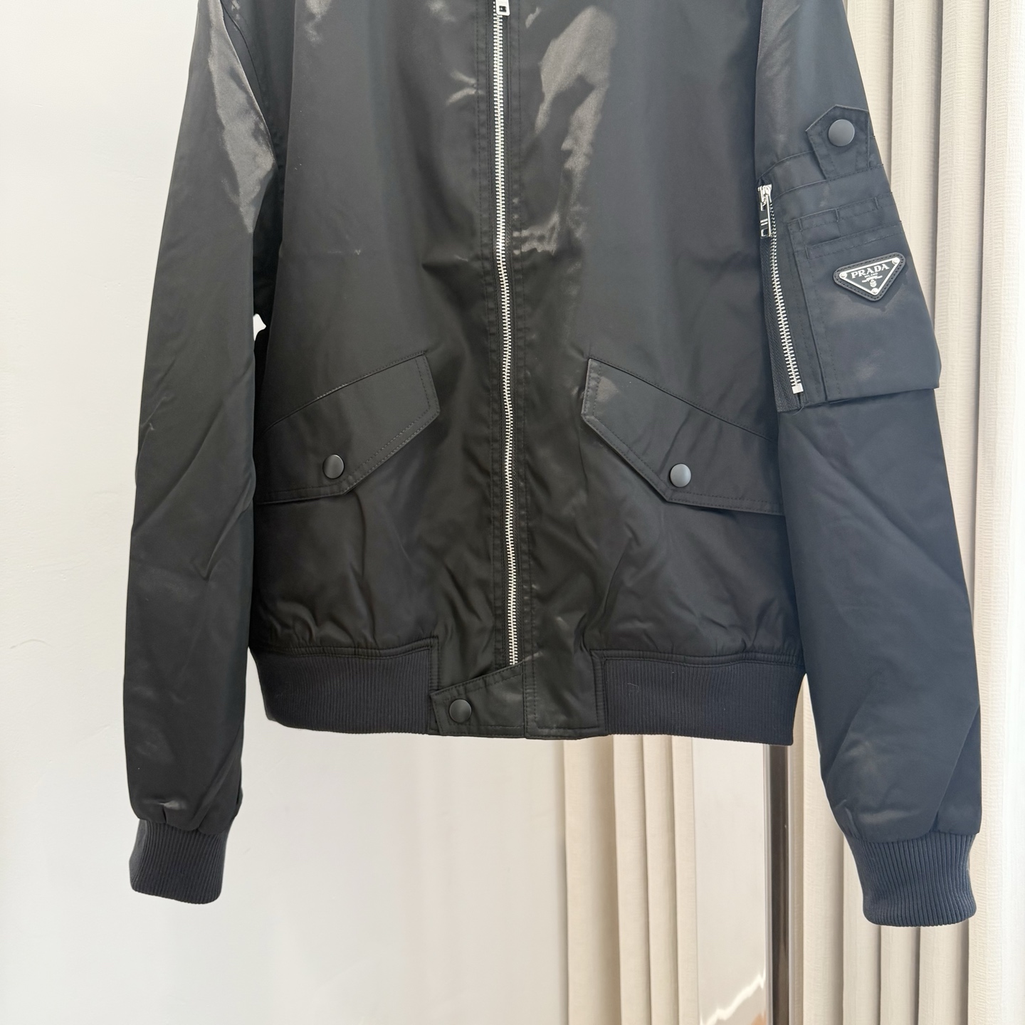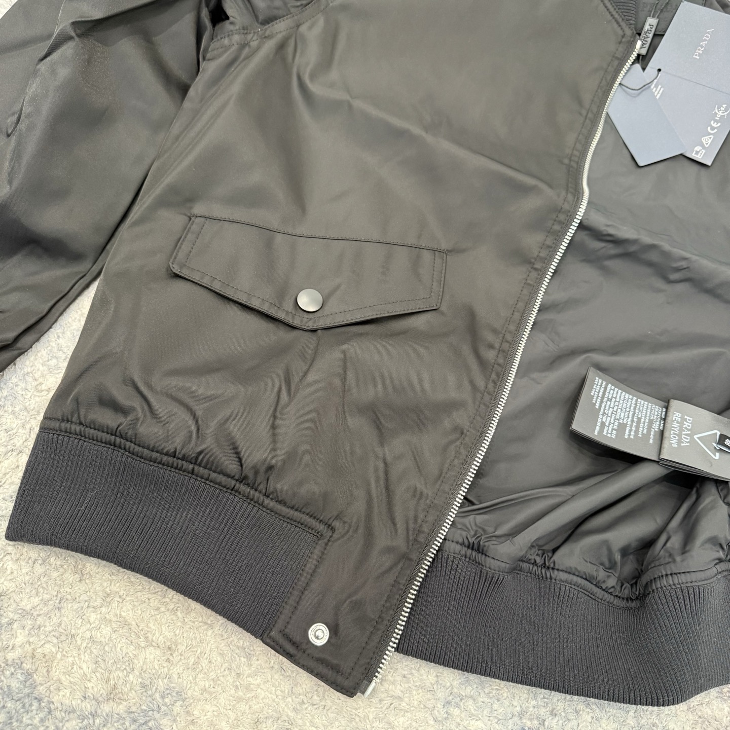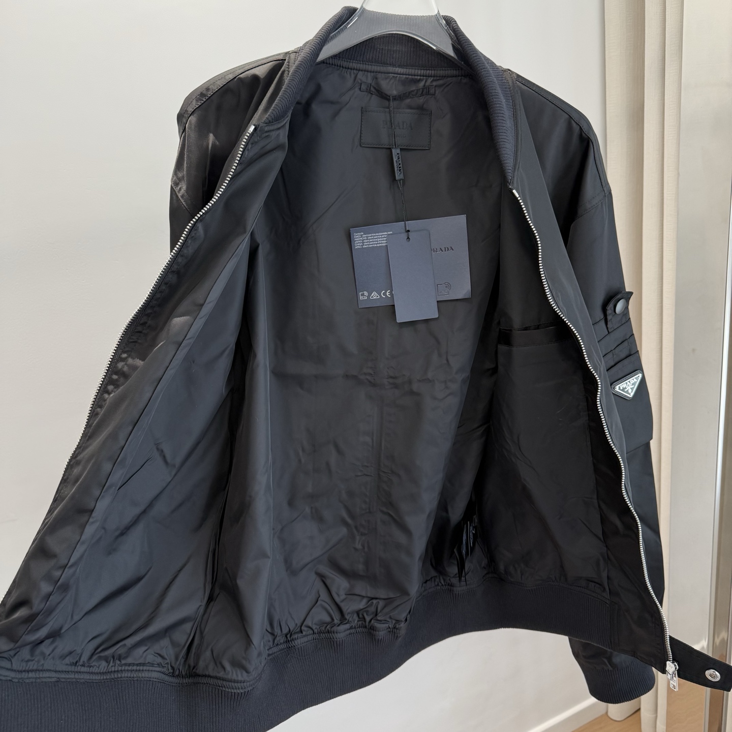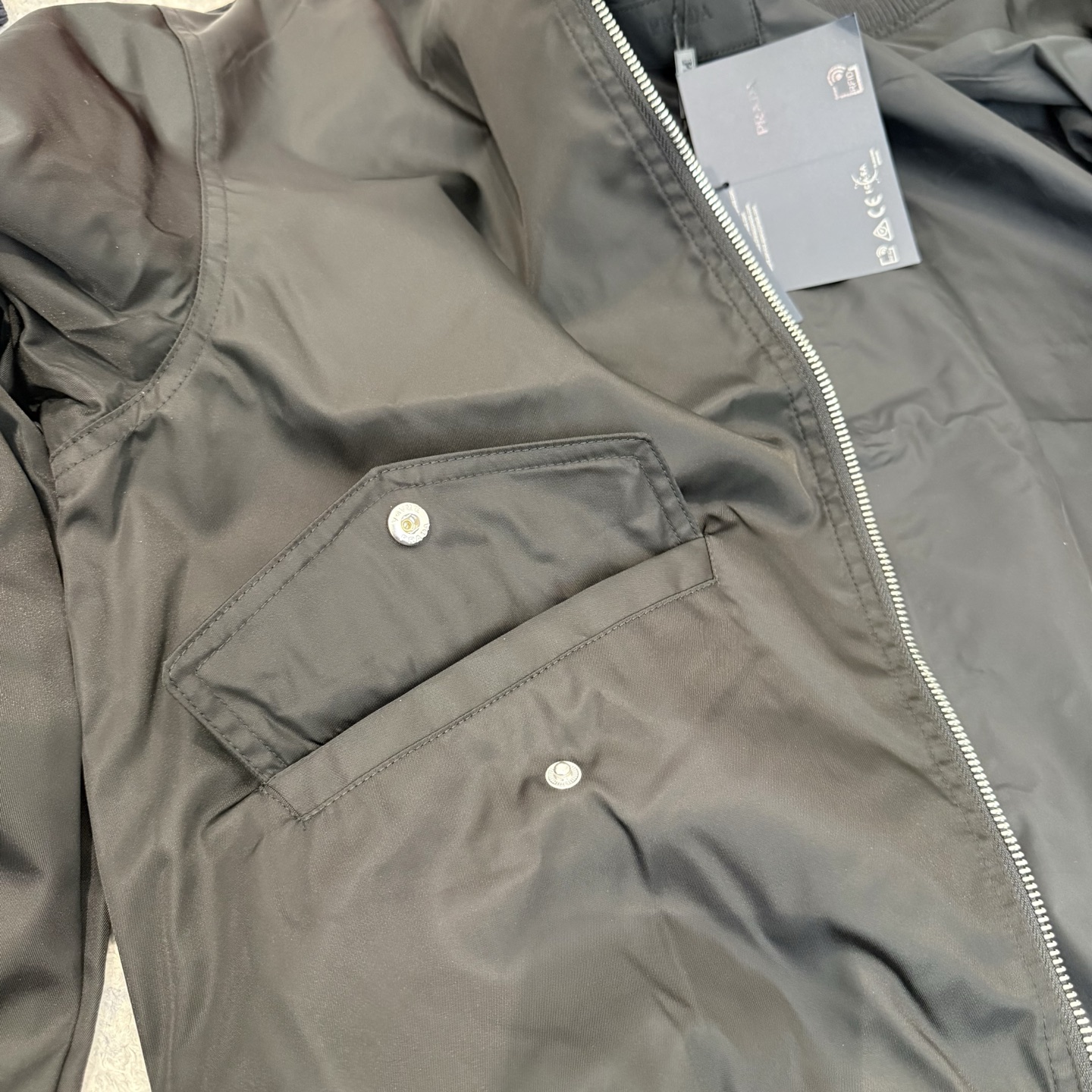 这款衣服是AAAAA 1:1 质量 (非常棒). 使用了和原版一模一样的材料. 商标部分也保持了和普拉达/Prada一样. 图片拍摄是实物衣服拍摄, 您所收到的实物保证和我们图片一模一样.