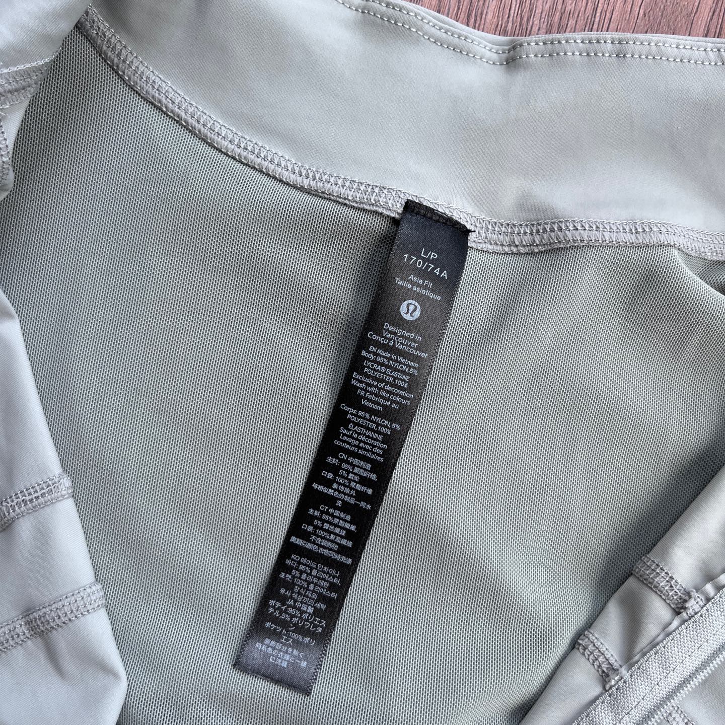 这款衣服是AAAAA 1:1 质量 (非常棒). 使用了和原版一模一样的材料. 商标部分也保持了和Lululemon一样. 图片拍摄是实物衣服拍摄, 您所收到的实物保证和我们图片一模一样.