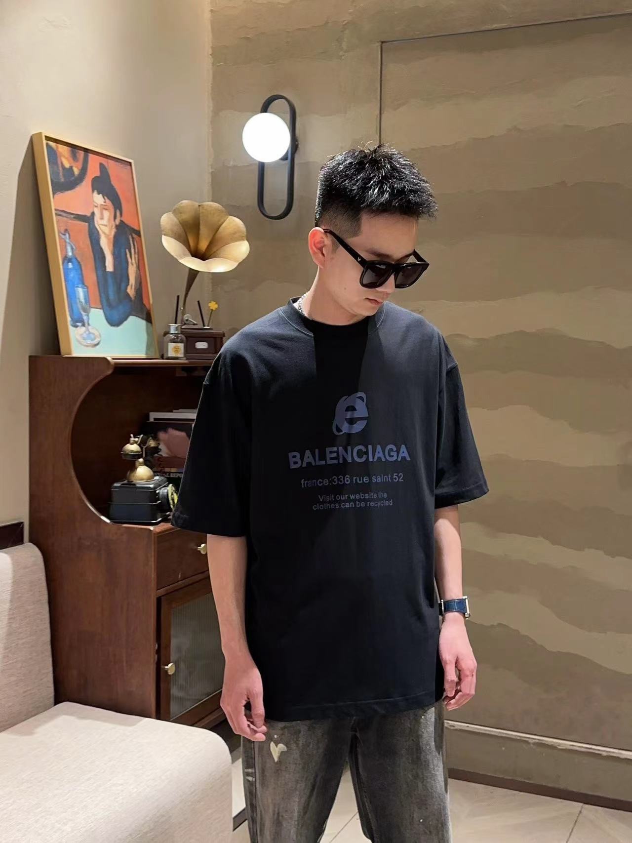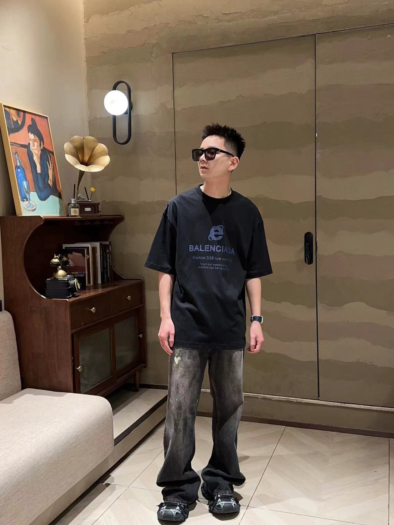 这款衣服是AAAAA 1:1 质量 (非常棒). 使用了和原版一模一样的材料. 商标部分也保持了和巴黎世家/Balenciaga一样. 图片拍摄是实物衣服拍摄, 您所收到的实物保证和我们图片一模一样.
