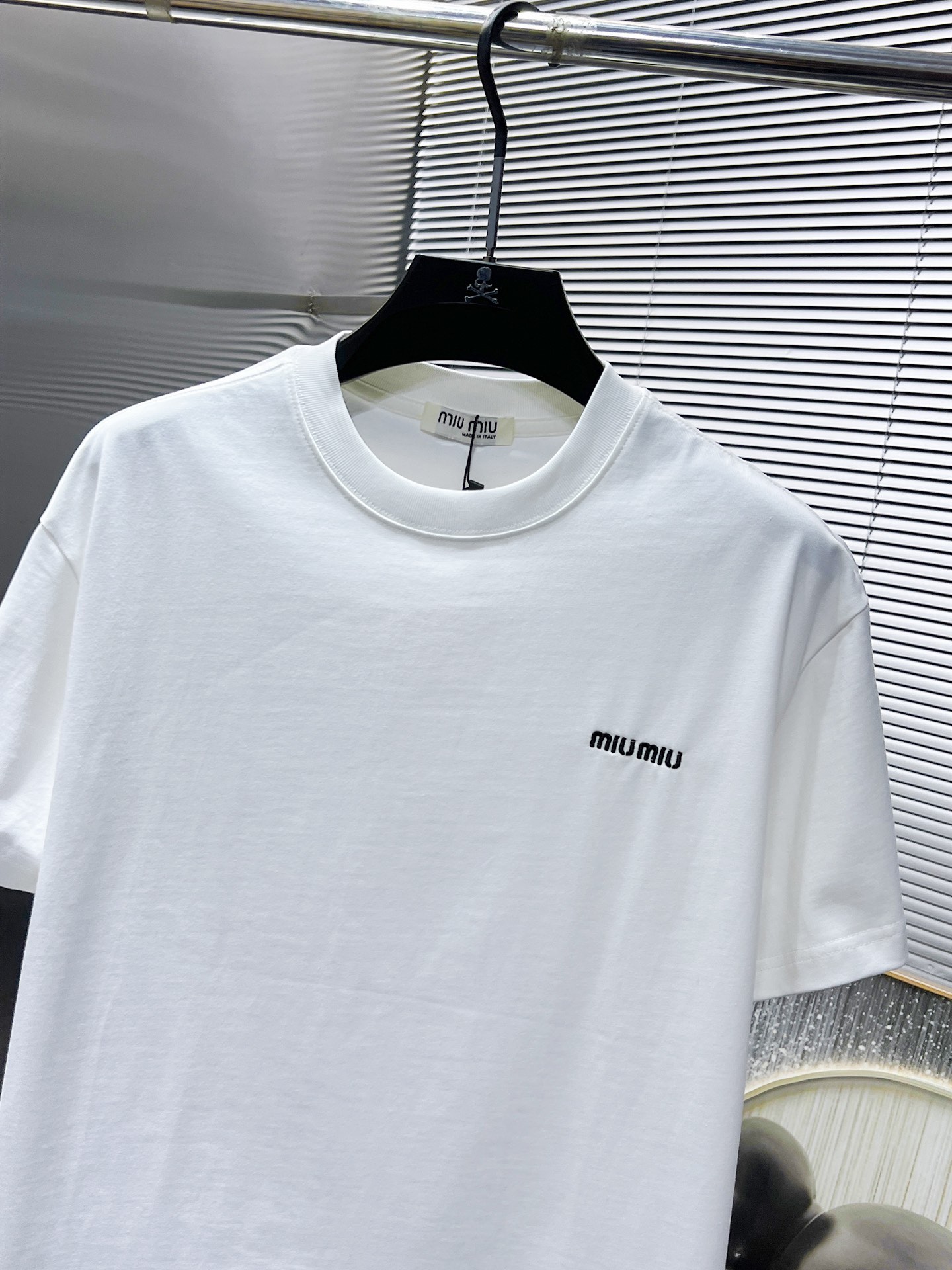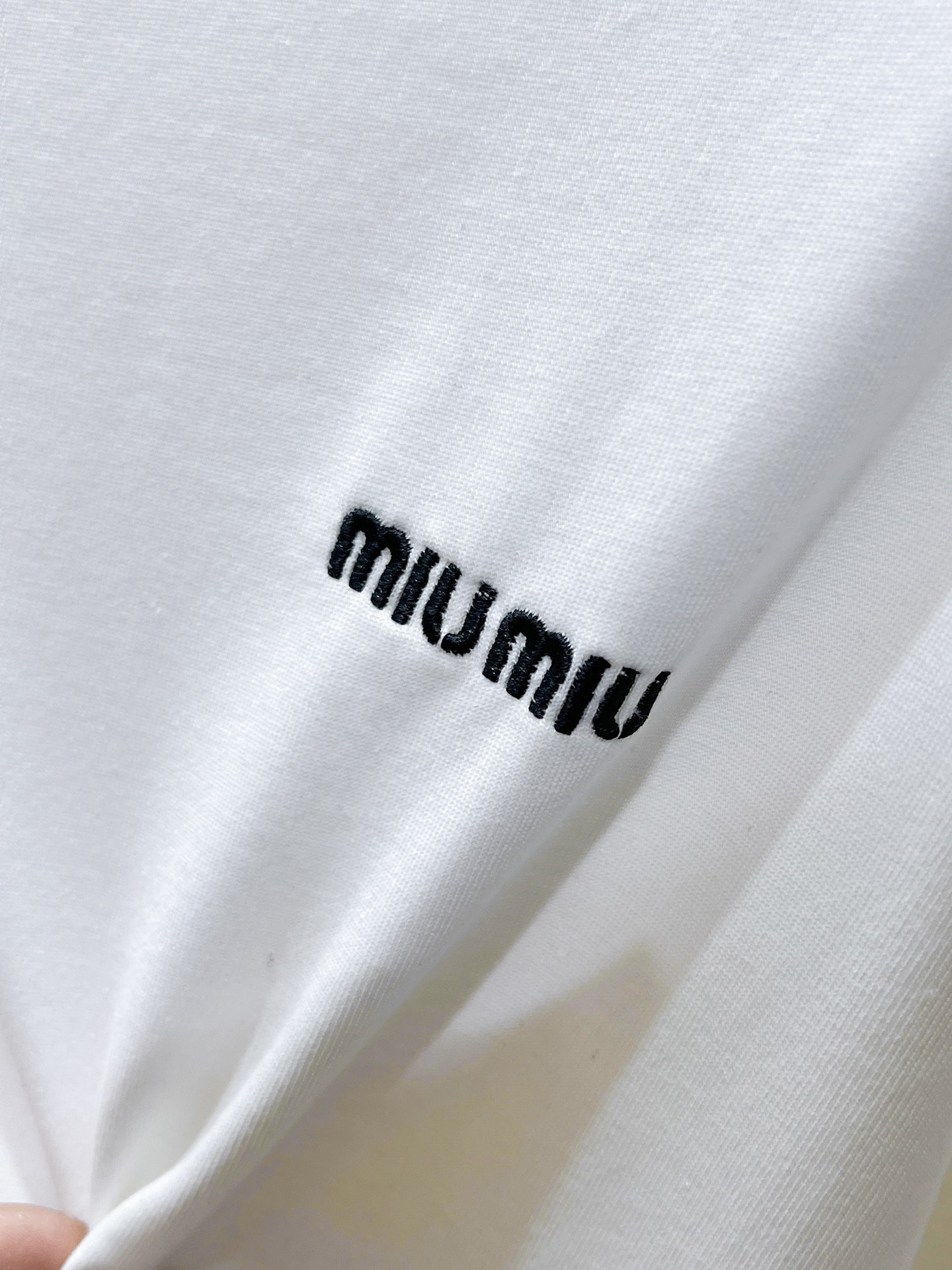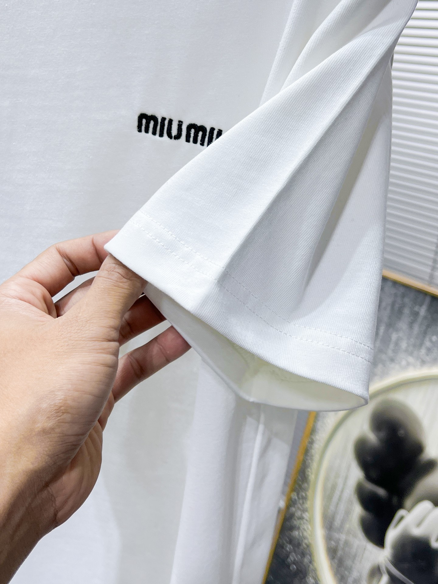 这款衣服是AAAAA 1:1 质量 (非常棒). 使用了和原版一模一样的材料. 商标部分也保持了和缪缪/Miu Miu一样. 图片拍摄是实物衣服拍摄, 您所收到的实物保证和我们图片一模一样.