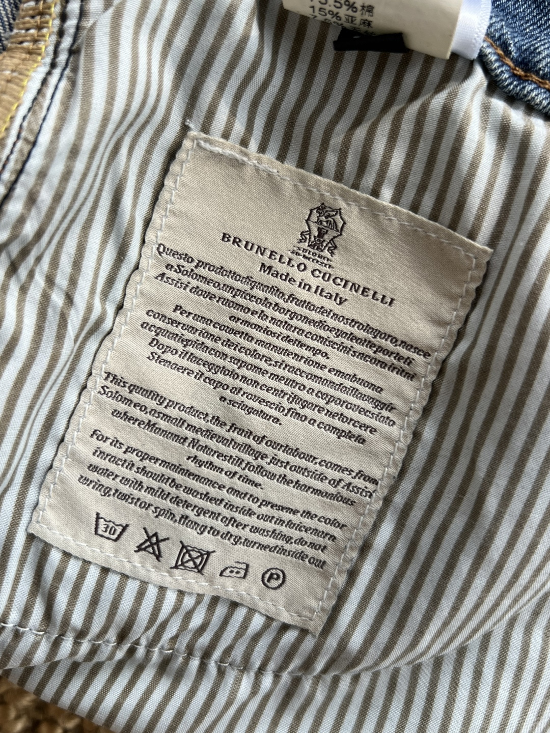 这款衣服是AAAAA 1:1 质量 (非常棒). 使用了和原版一模一样的材料. 商标部分也保持了和Brunello Cucinelli一样. 图片拍摄是实物衣服拍摄, 您所收到的实物保证和我们图片一模一样.
