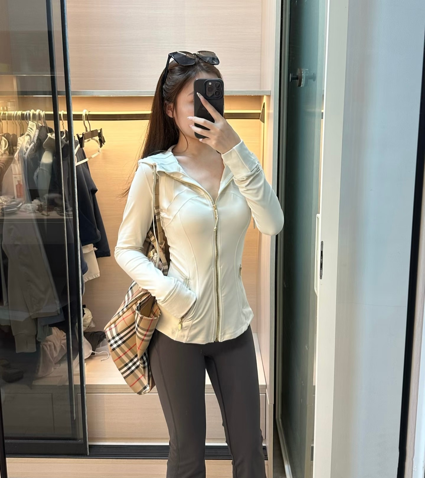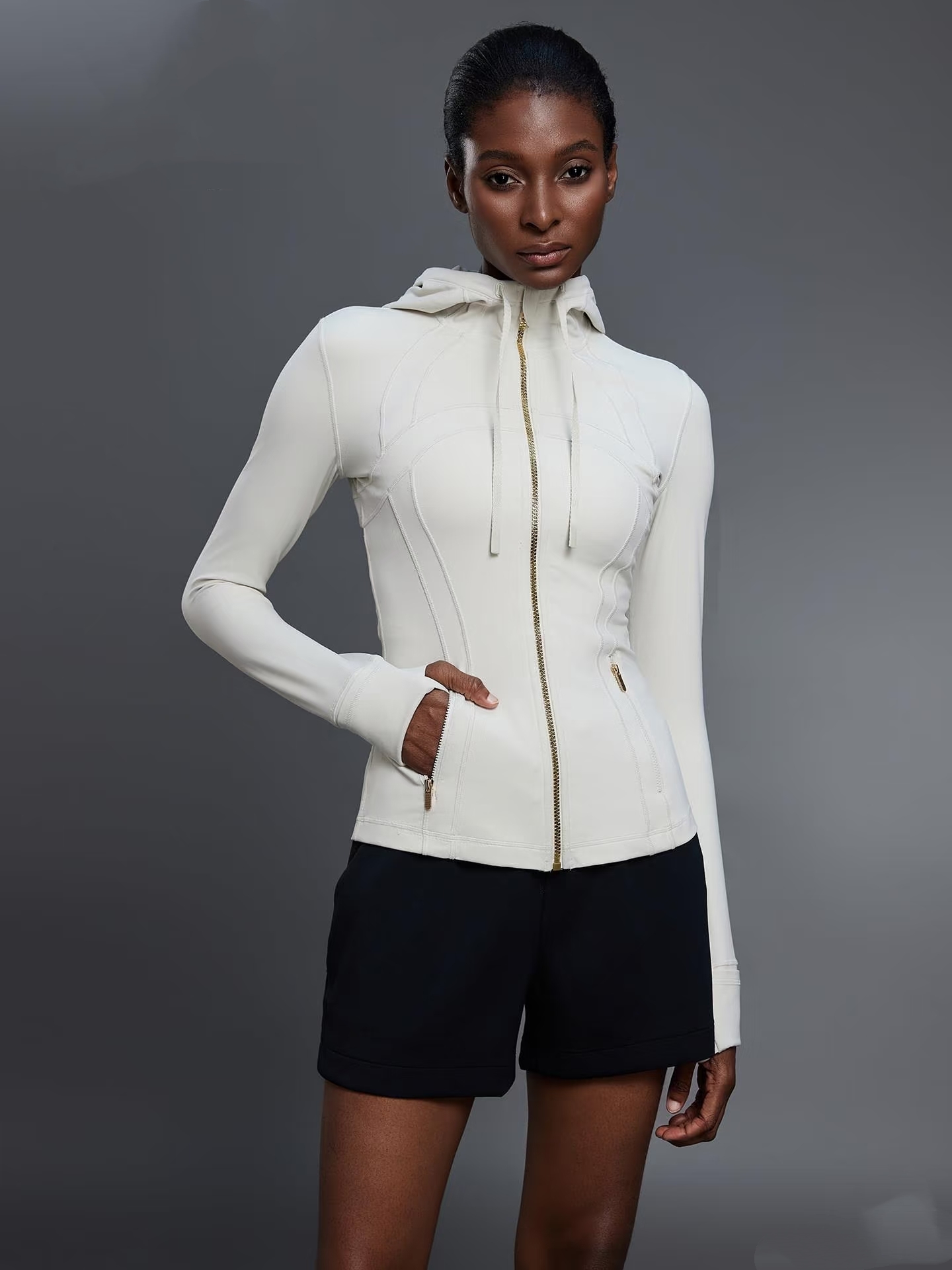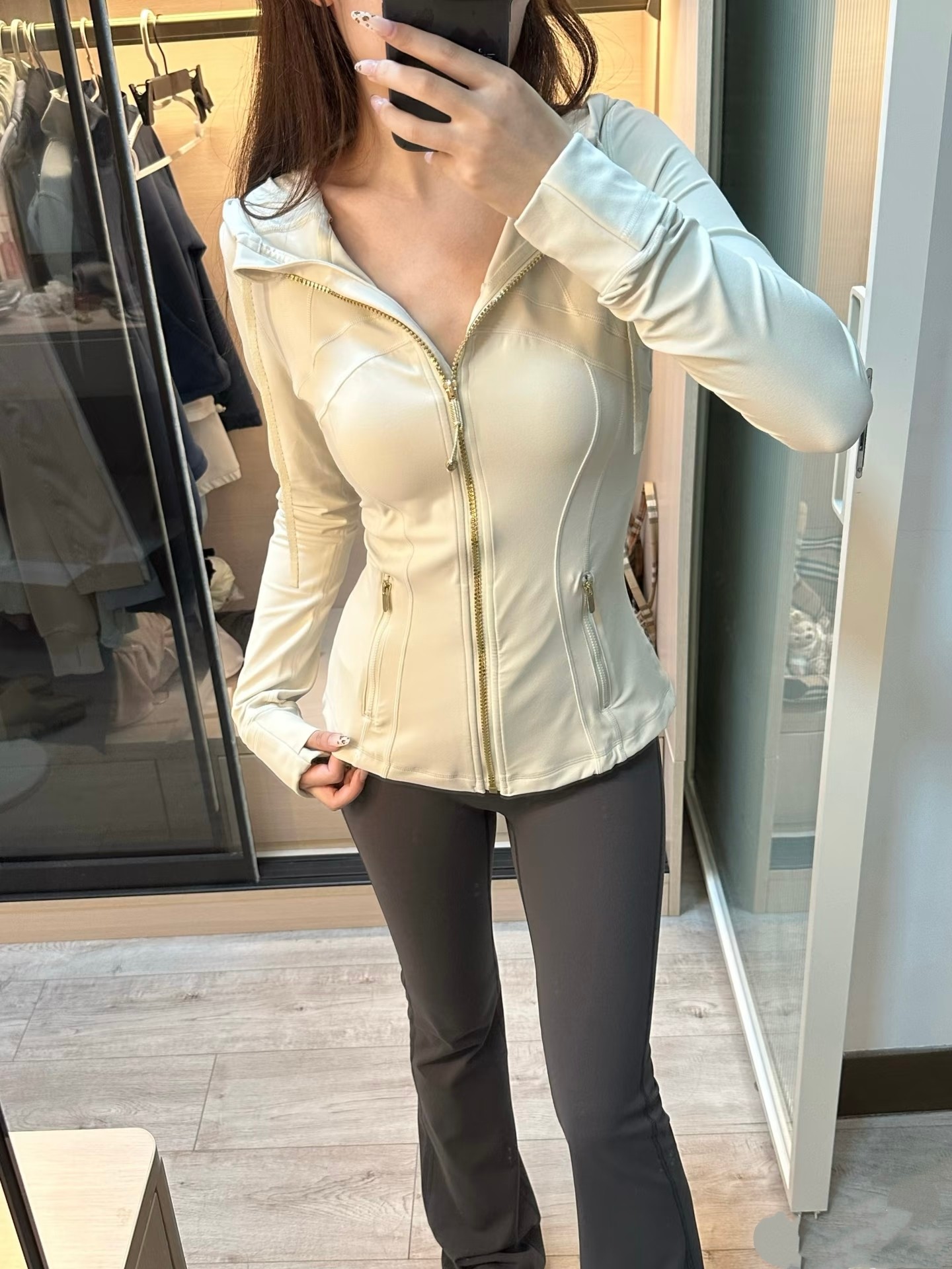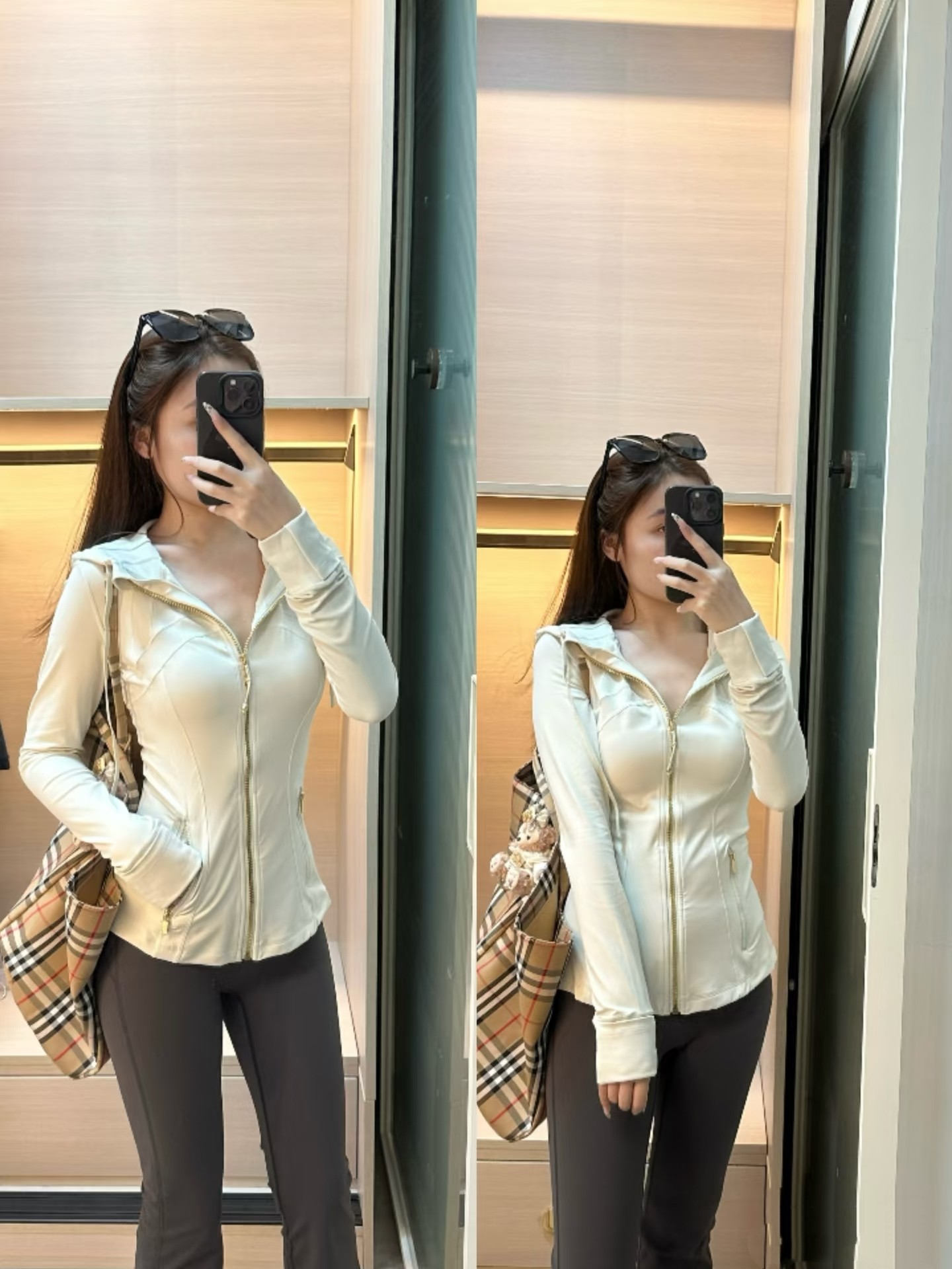这款衣服是AAAAA 1:1 质量 (非常棒). 使用了和原版一模一样的材料. 商标部分也保持了和Lululemon一样. 图片拍摄是实物衣服拍摄, 您所收到的实物保证和我们图片一模一样.