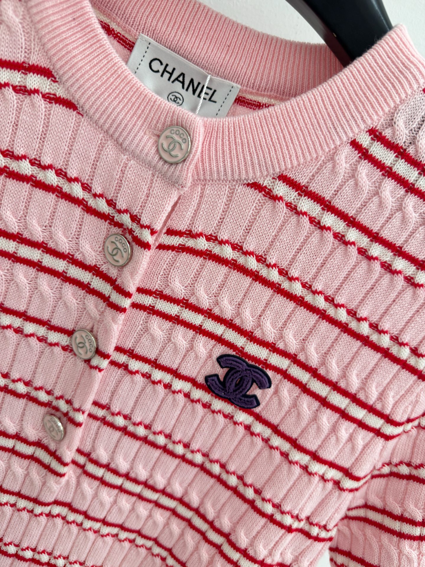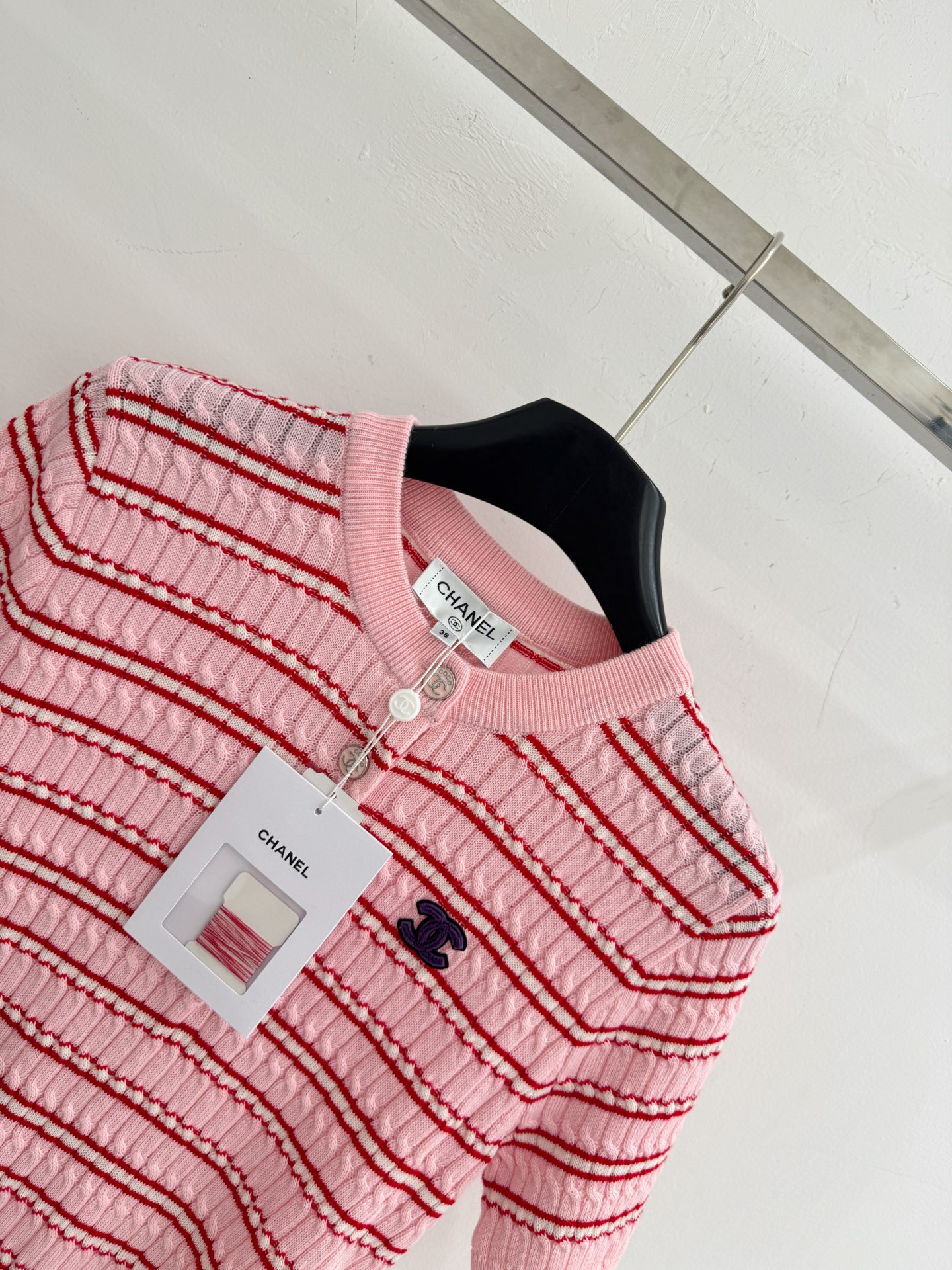 这款衣服是AAAAA 1:1 质量 (非常棒). 使用了和原版一模一样的材料. 商标部分也保持了和香奈儿/Chanel一样. 图片拍摄是实物衣服拍摄, 您所收到的实物保证和我们图片一模一样.