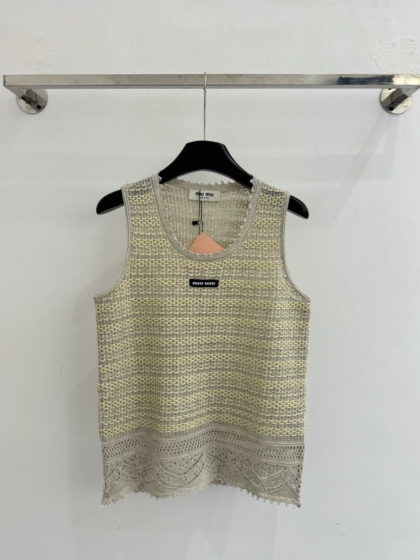 这款衣服是AAAAA 1:1 质量 (非常棒). 使用了和原版一模一样的材料. 商标部分也保持了和缪缪/Miu Miu一样. 图片拍摄是实物衣服拍摄, 您所收到的实物保证和我们图片一模一样.