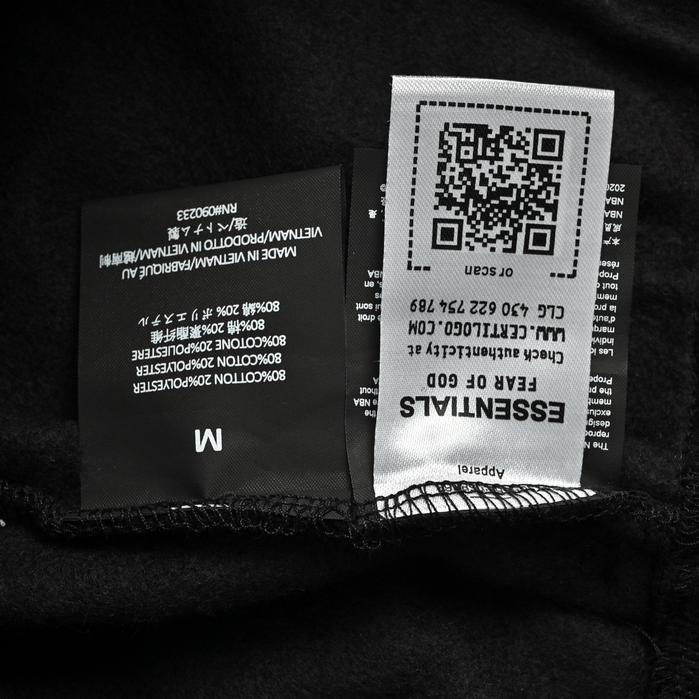 这款衣服是AAAAA 1:1 质量 (非常棒). 使用了和原版一模一样的材料. 商标部分也保持了和ESSENTIALS一样. 图片拍摄是实物衣服拍摄, 您所收到的实物保证和我们图片一模一样.
