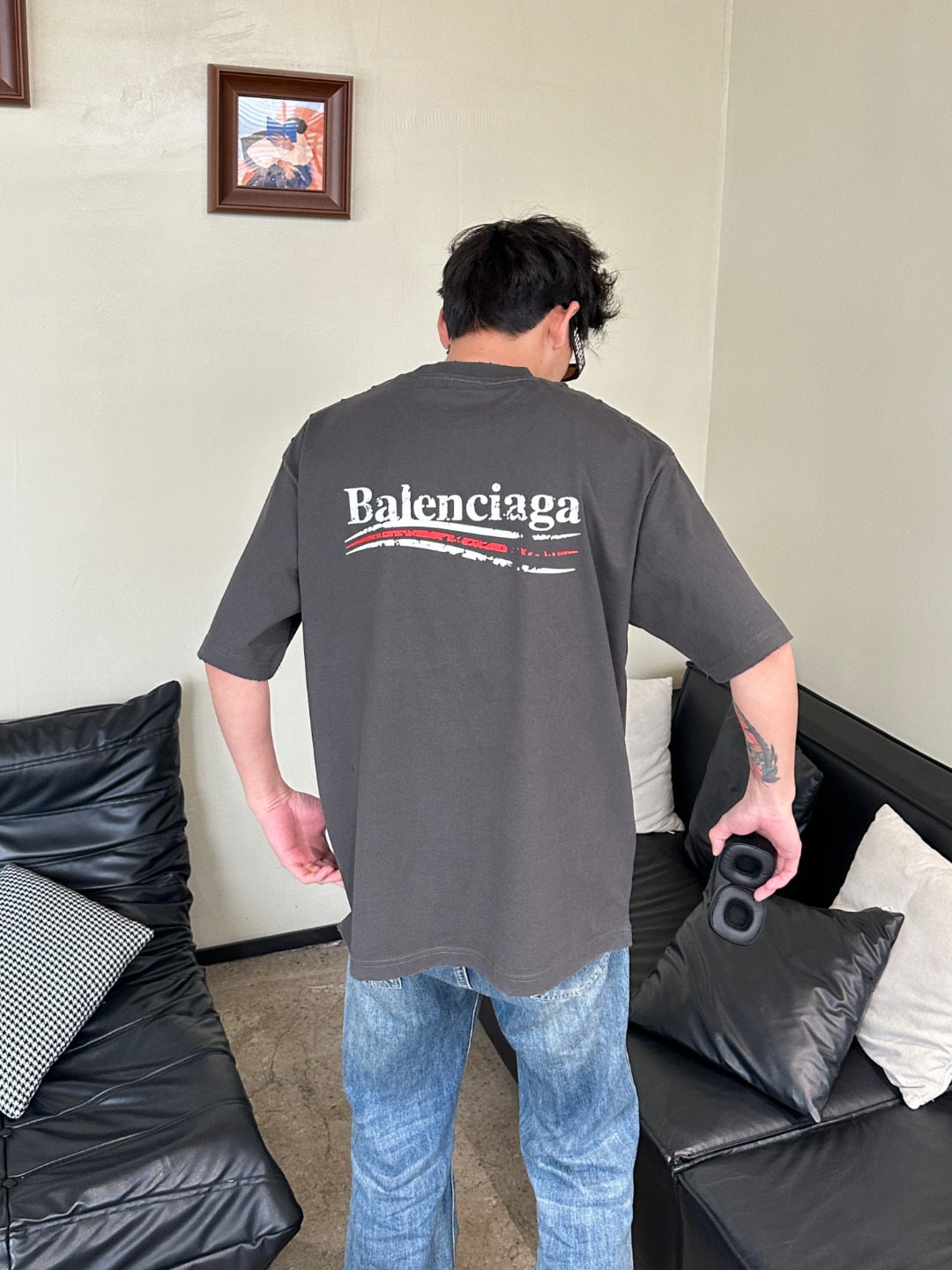 这款衣服是AAAAA 1:1 质量 (非常棒). 使用了和原版一模一样的材料. 商标部分也保持了和巴黎世家/Balenciaga一样. 图片拍摄是实物衣服拍摄, 您所收到的实物保证和我们图片一模一样.