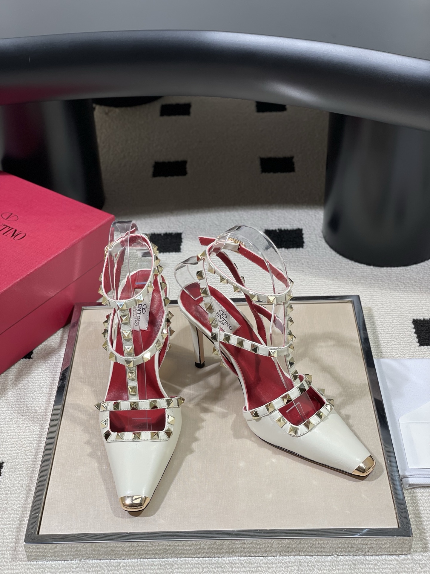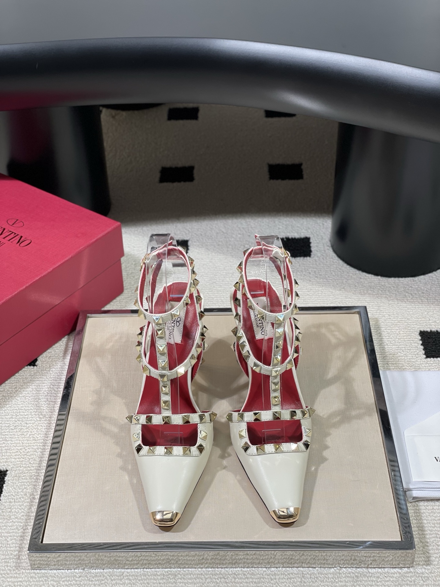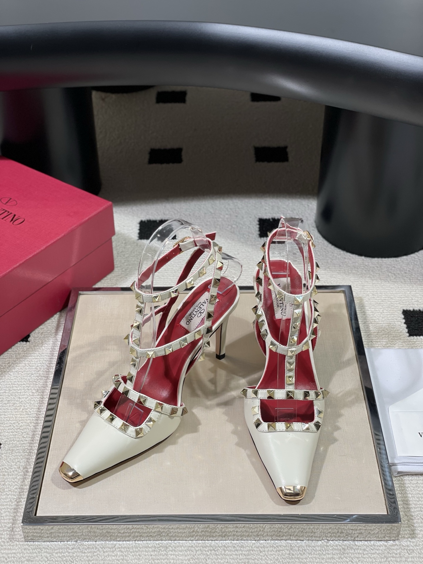 这款鞋子是AAAAA 1:1 质量 (非常棒). 使用了和原版一模一样的材料. 商标部分也保持了和华伦天奴/Valentino一样. 图片拍摄是实物鞋子拍摄, 您所收到的实物保证和我们图片一模一样.