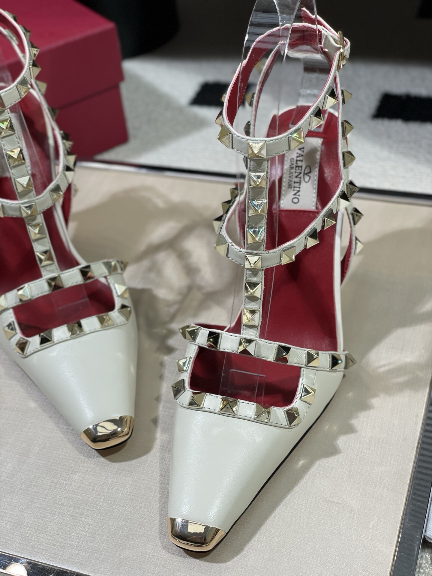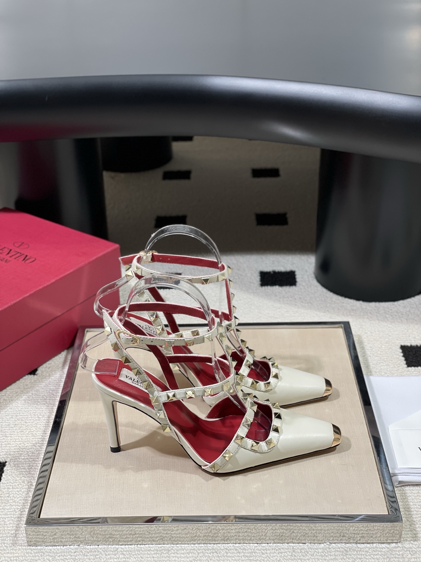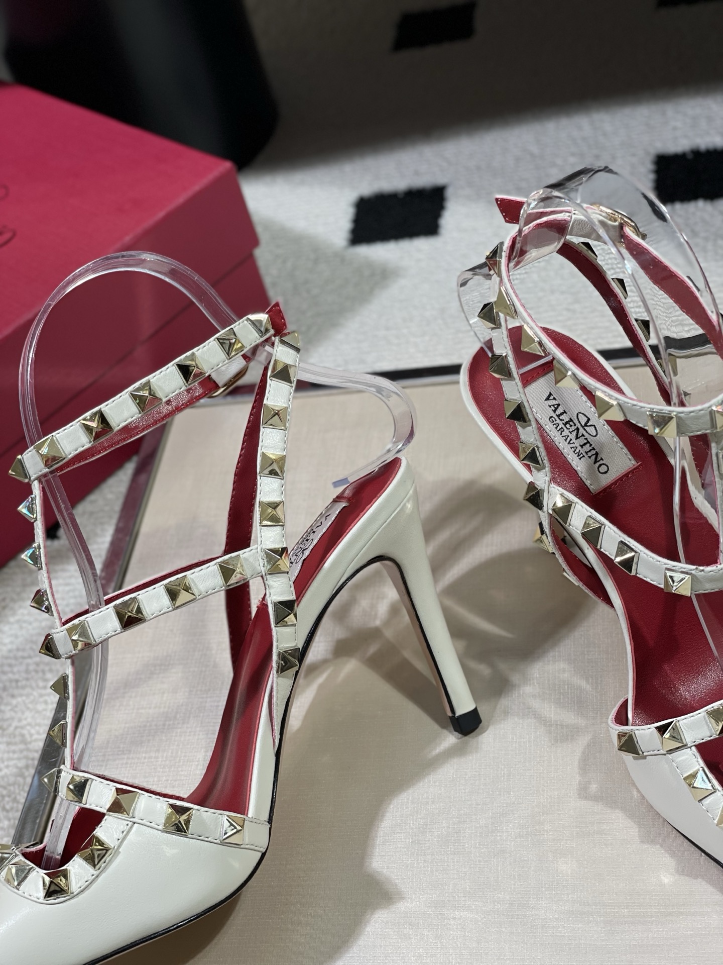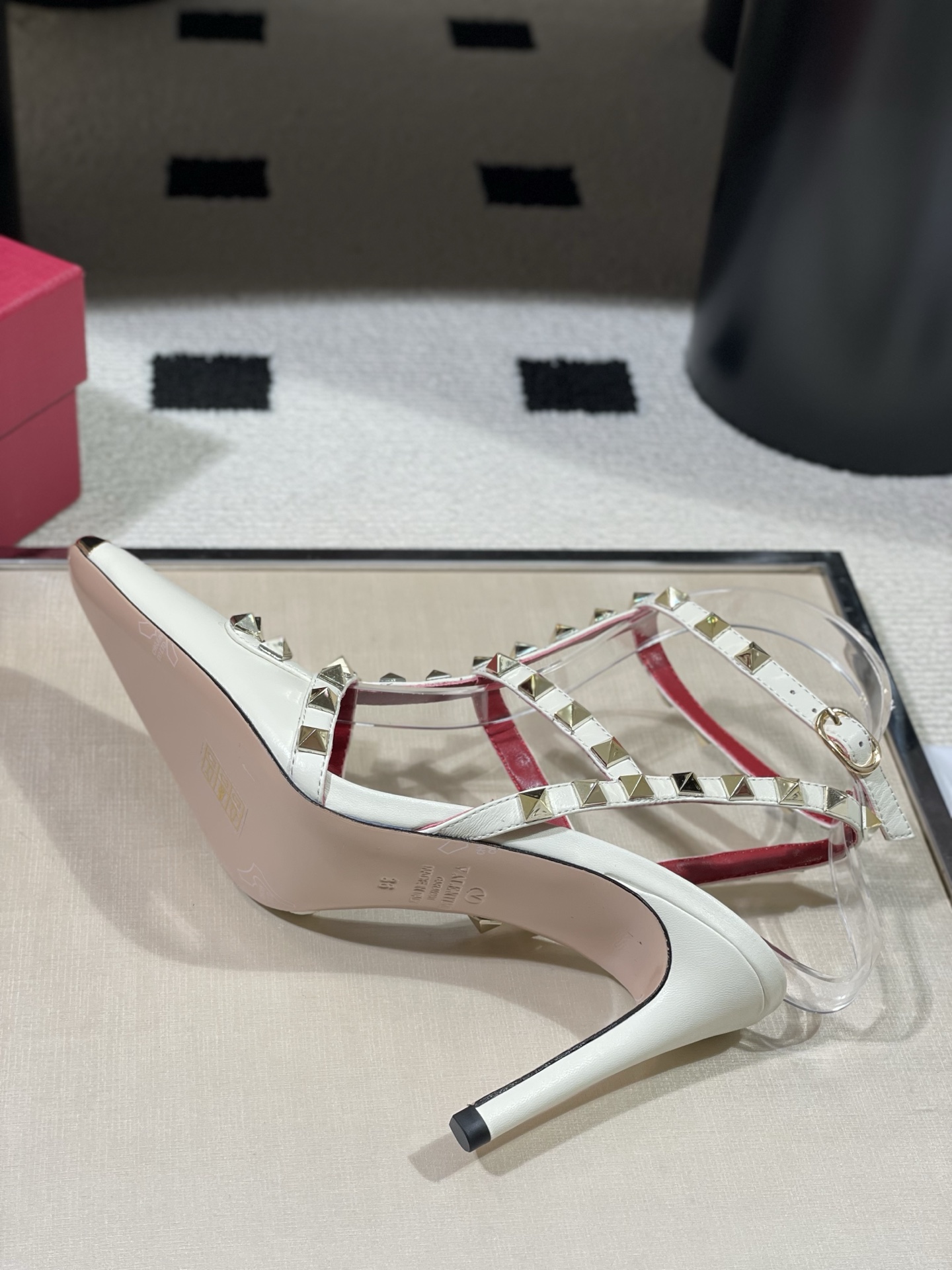 这款鞋子是AAAAA 1:1 质量 (非常棒). 使用了和原版一模一样的材料. 商标部分也保持了和华伦天奴/Valentino一样. 图片拍摄是实物鞋子拍摄, 您所收到的实物保证和我们图片一模一样.
