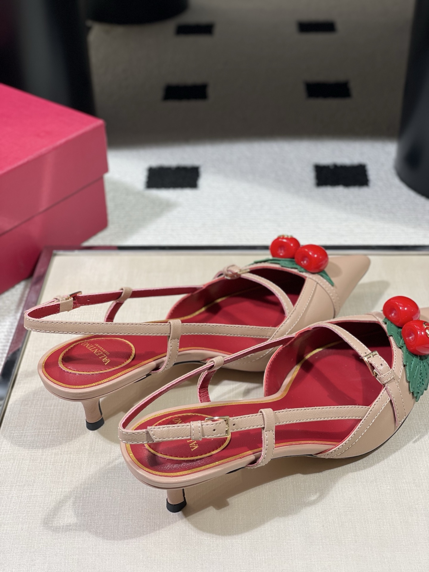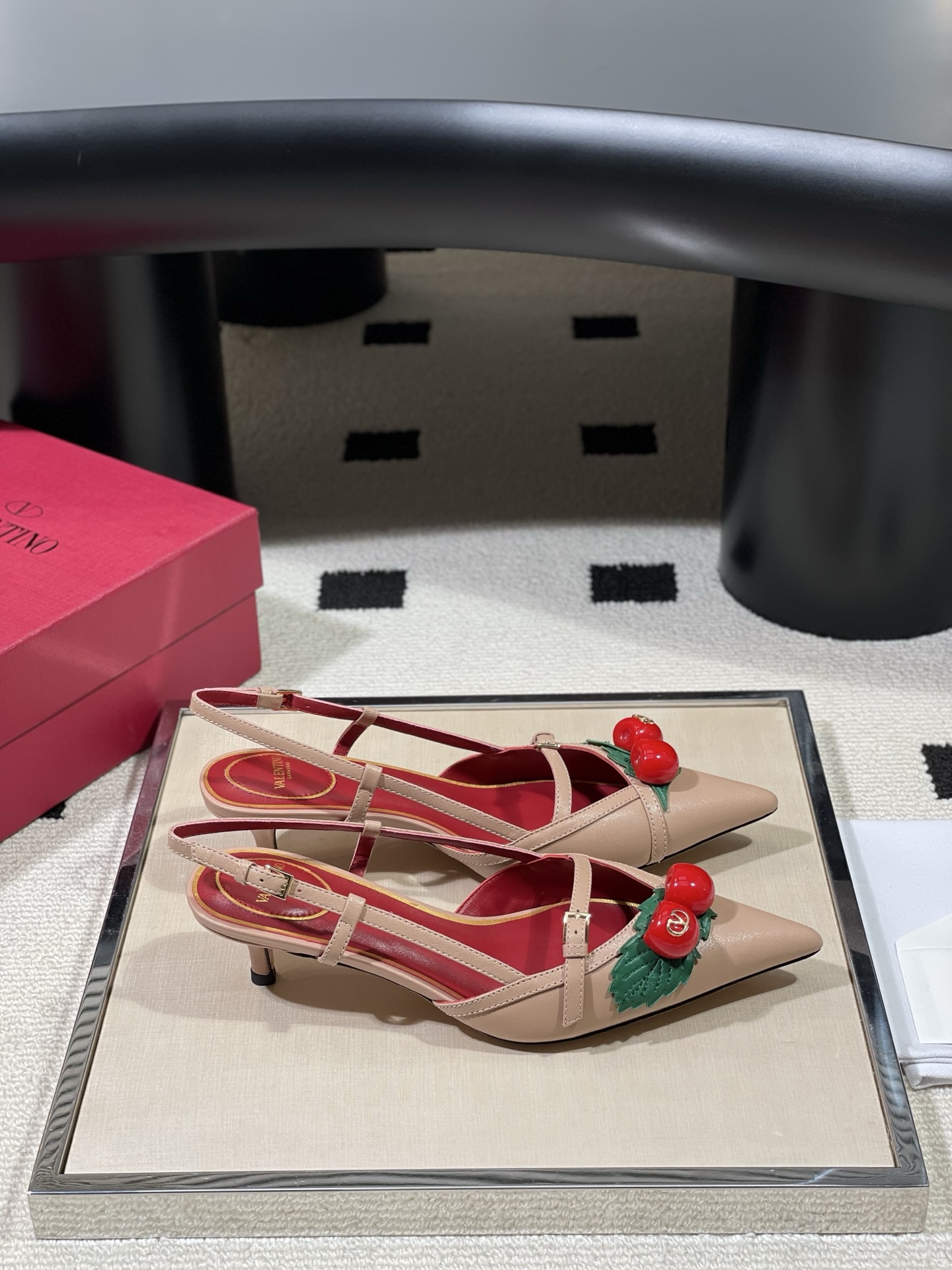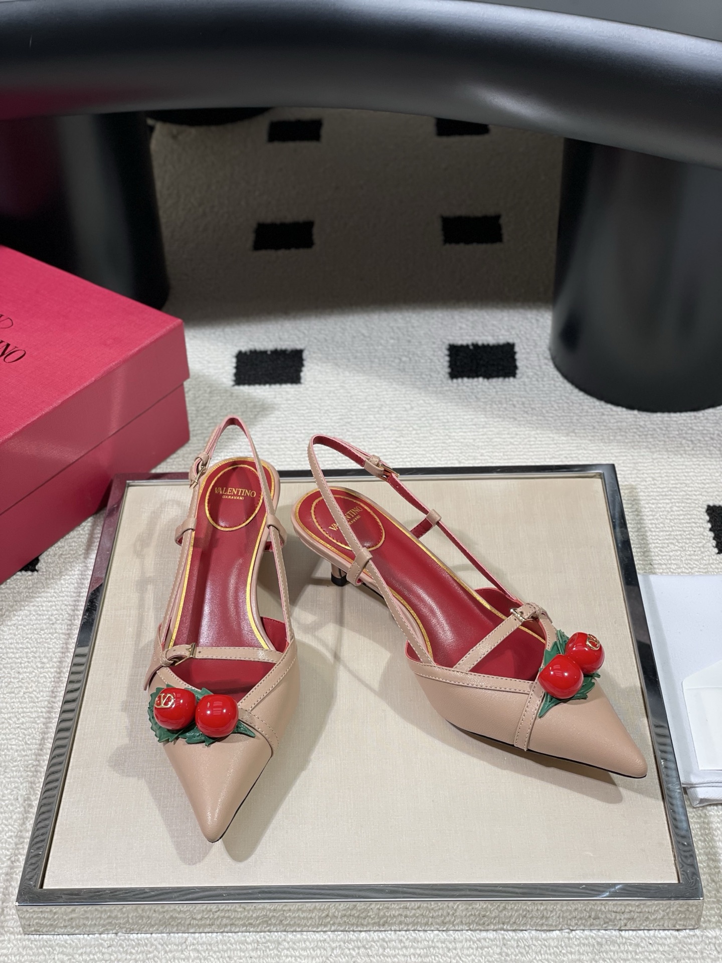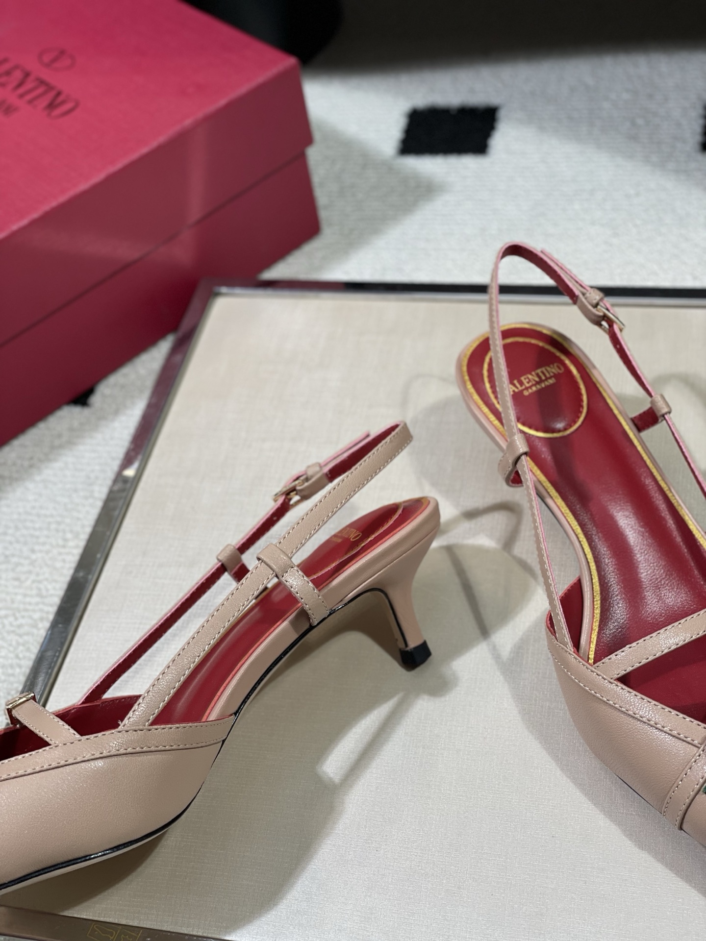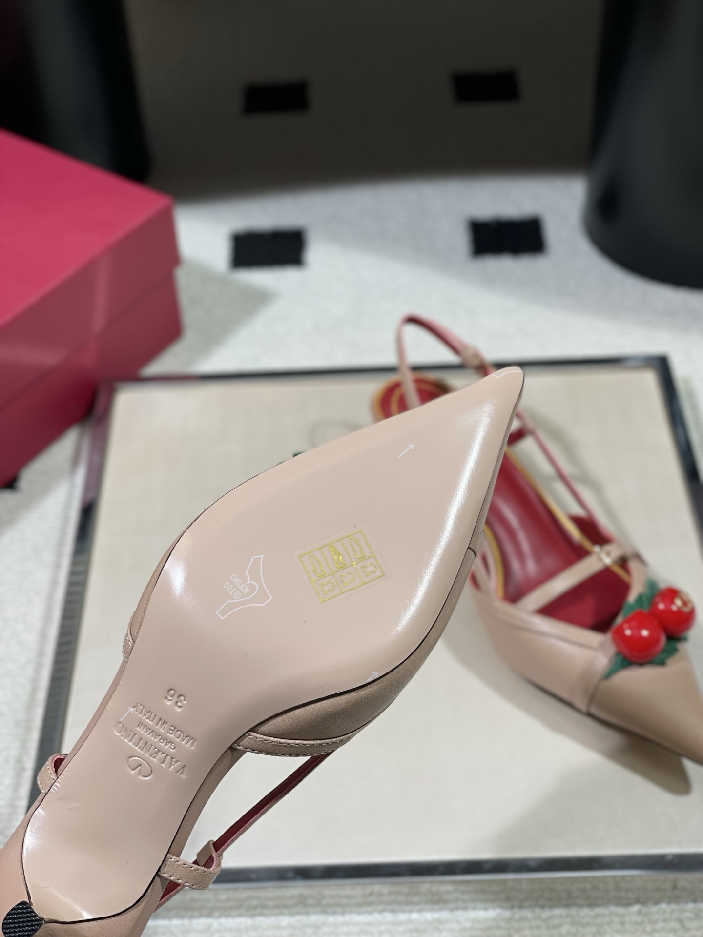 这款鞋子是AAAAA 1:1 质量 (非常棒). 使用了和原版一模一样的材料. 商标部分也保持了和华伦天奴/Valentino一样. 图片拍摄是实物鞋子拍摄, 您所收到的实物保证和我们图片一模一样.