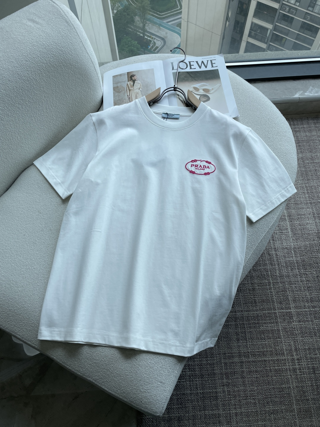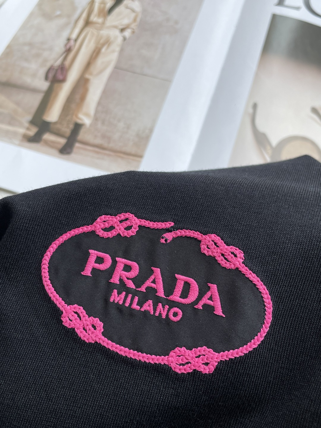 这款衣服是AAAAA 1:1 质量 (非常棒). 使用了和原版一模一样的材料. 商标部分也保持了和普拉达/Prada一样. 图片拍摄是实物衣服拍摄, 您所收到的实物保证和我们图片一模一样.
