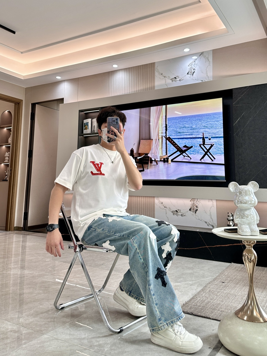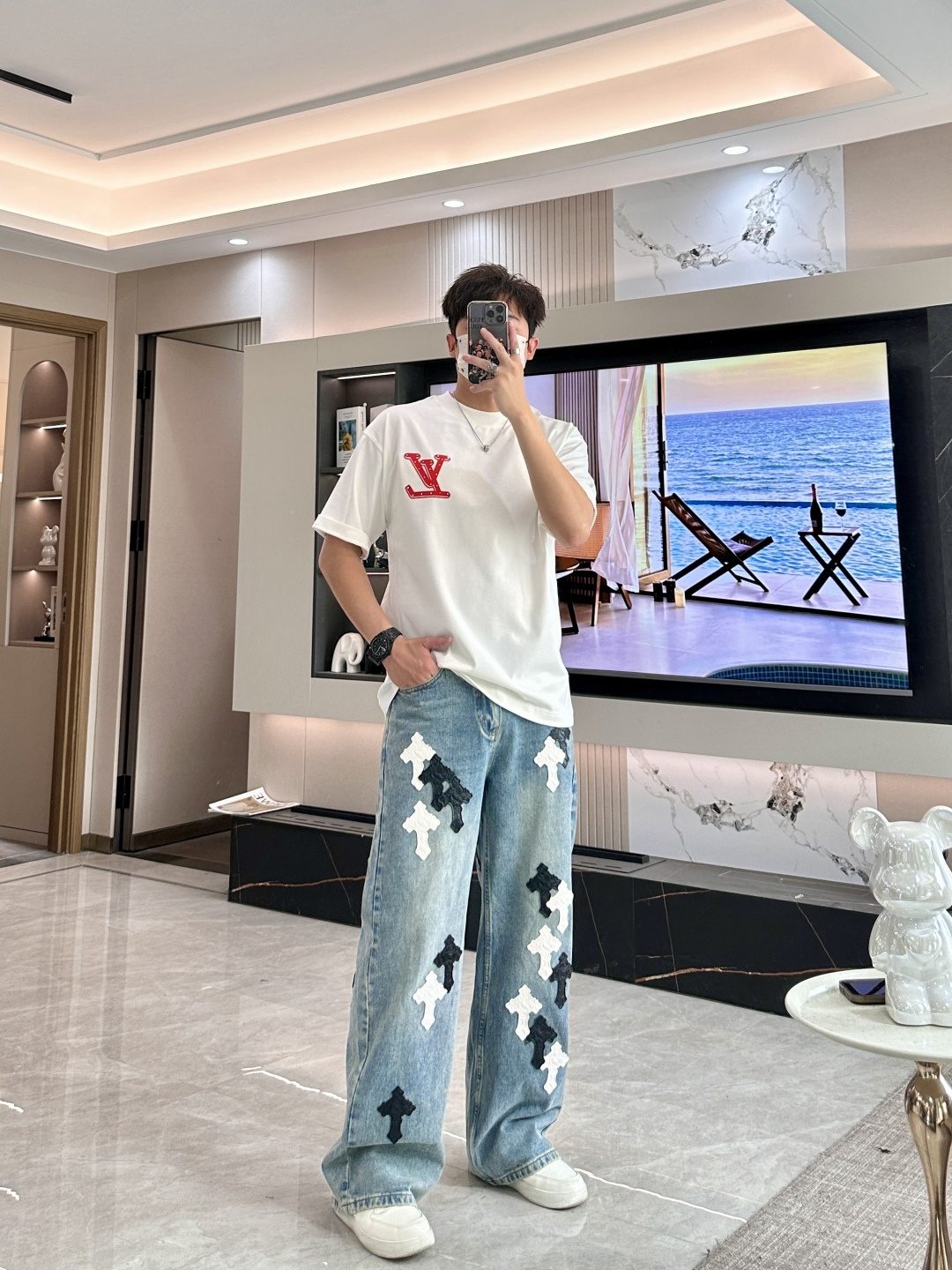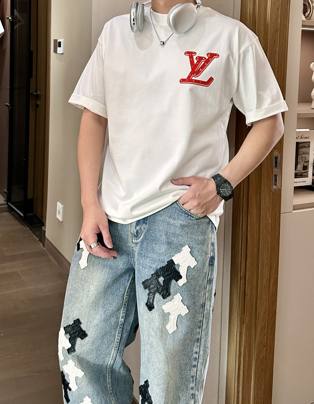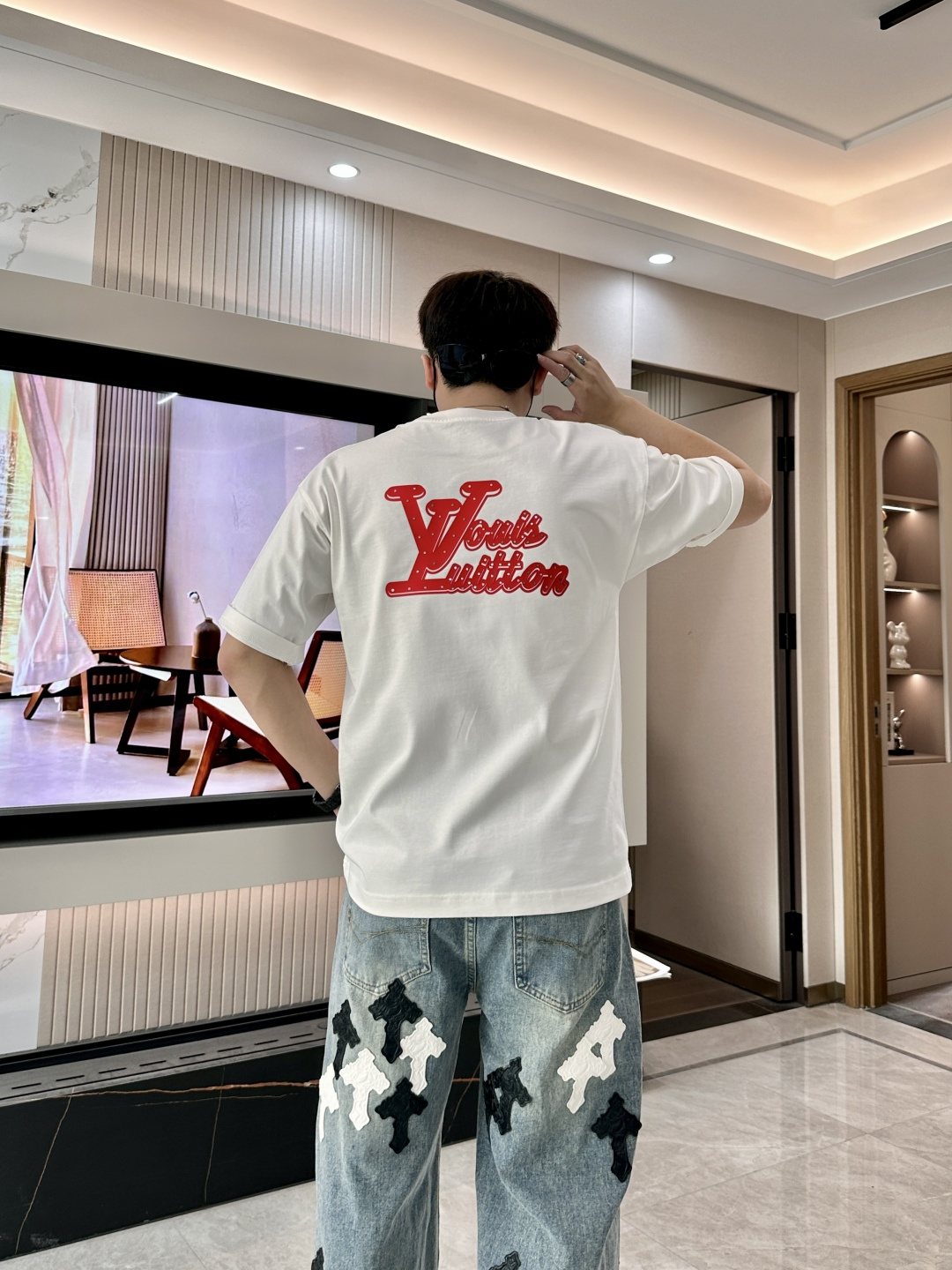 这款衣服是AAAAA 1:1 质量 (非常棒). 使用了和原版一模一样的材料. 商标部分也保持了和路易威登/Louis Vuitton一样. 图片拍摄是实物衣服拍摄, 您所收到的实物保证和我们图片一模一样.