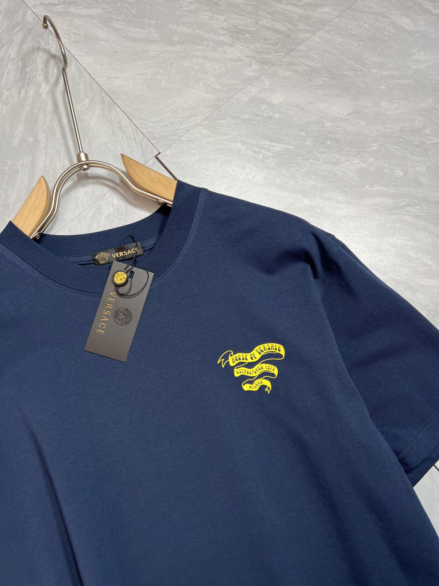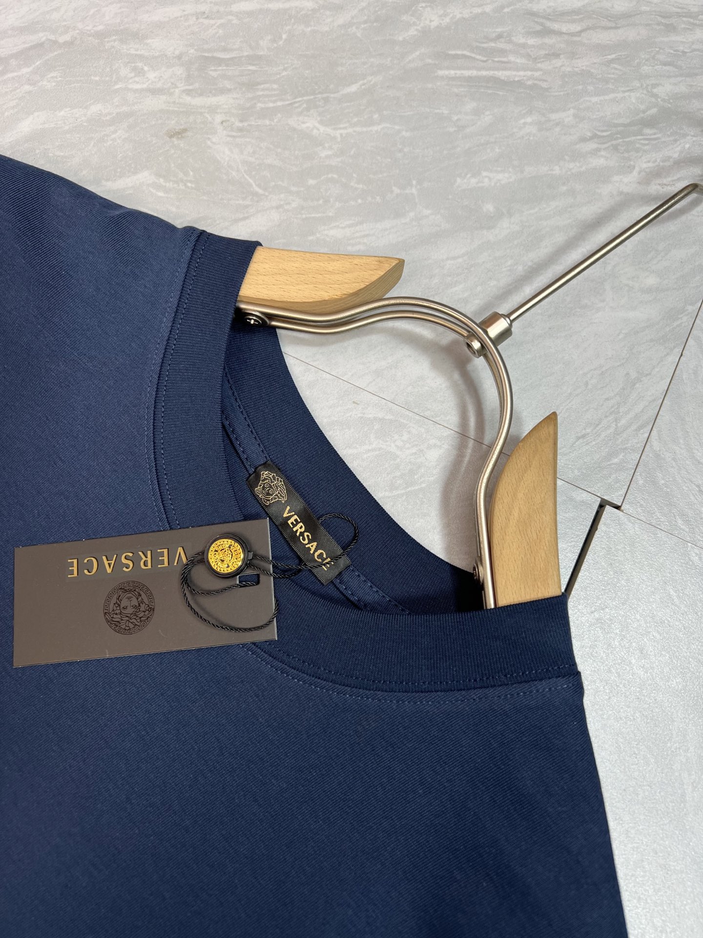 这款衣服是AAAAA 1:1 质量 (非常棒). 使用了和原版一模一样的材料. 商标部分也保持了和范思哲/Versace一样. 图片拍摄是实物衣服拍摄, 您所收到的实物保证和我们图片一模一样.