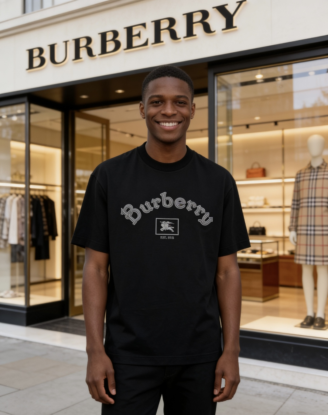 这款衣服是AAAAA 1:1 质量 (非常棒). 使用了和原版一模一样的材料. 商标部分也保持了和巴宝莉/Burberry一样. 图片拍摄是实物衣服拍摄, 您所收到的实物保证和我们图片一模一样.