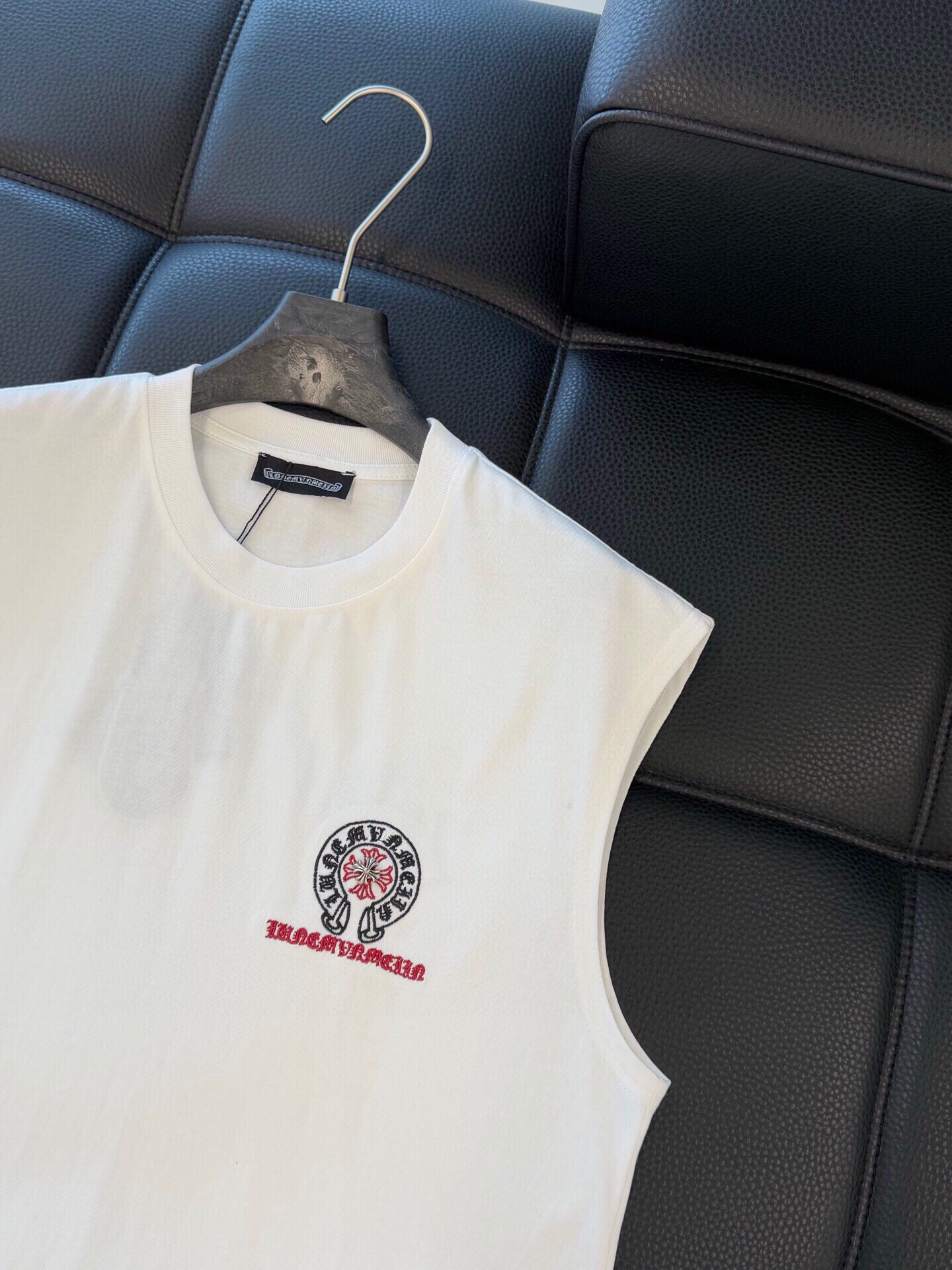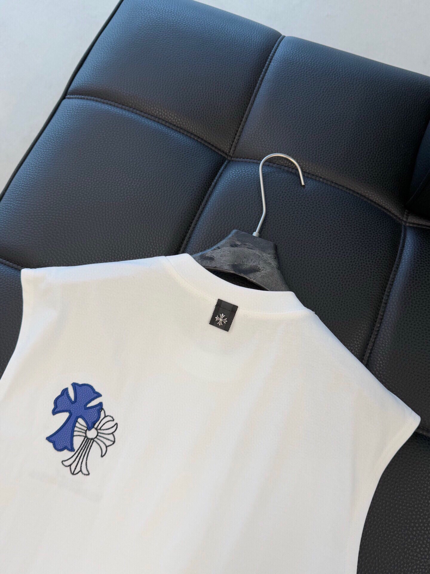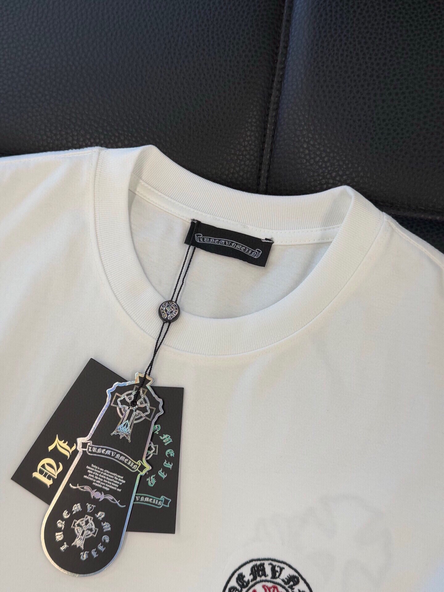 这款衣服是AAAAA 1:1 质量 (非常棒). 使用了和原版一模一样的材料. 商标部分也保持了和克罗心/Chrome Hearts一样. 图片拍摄是实物衣服拍摄, 您所收到的实物保证和我们图片一模一样.
