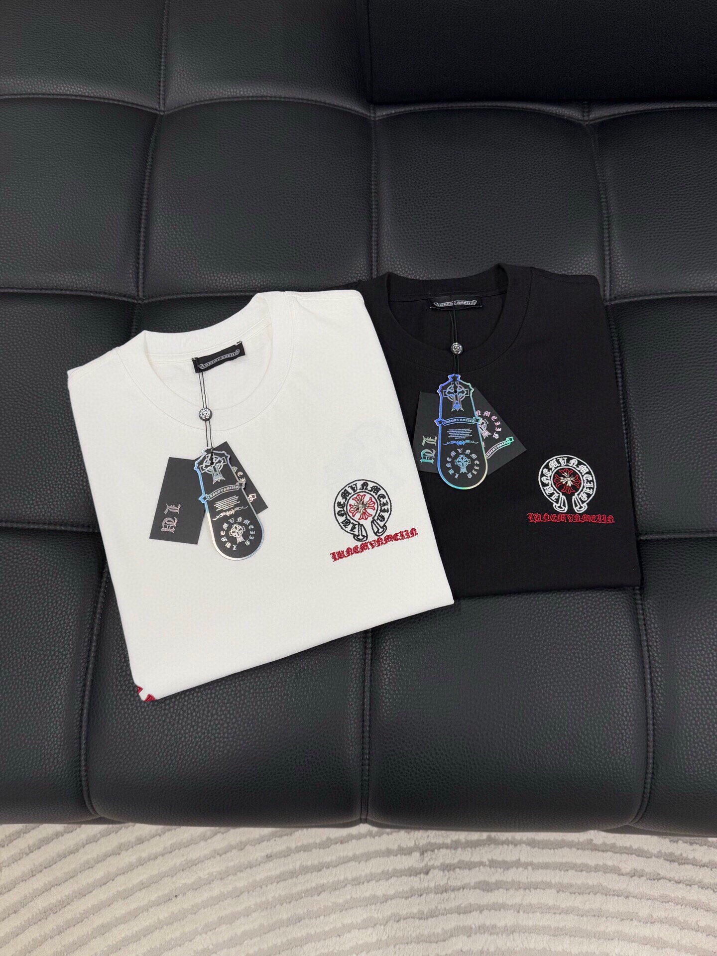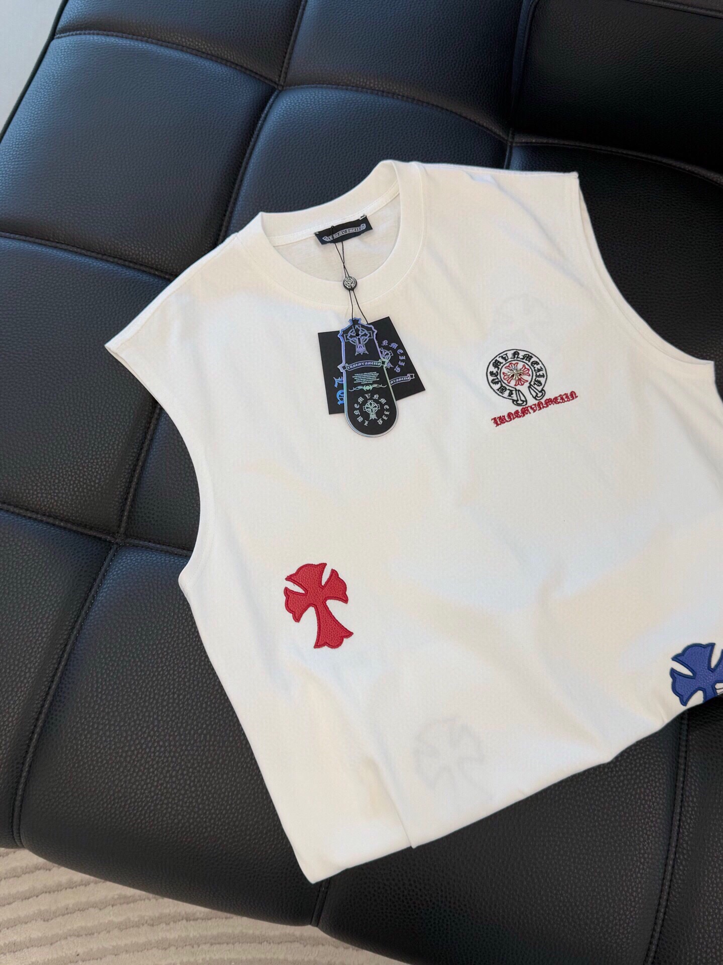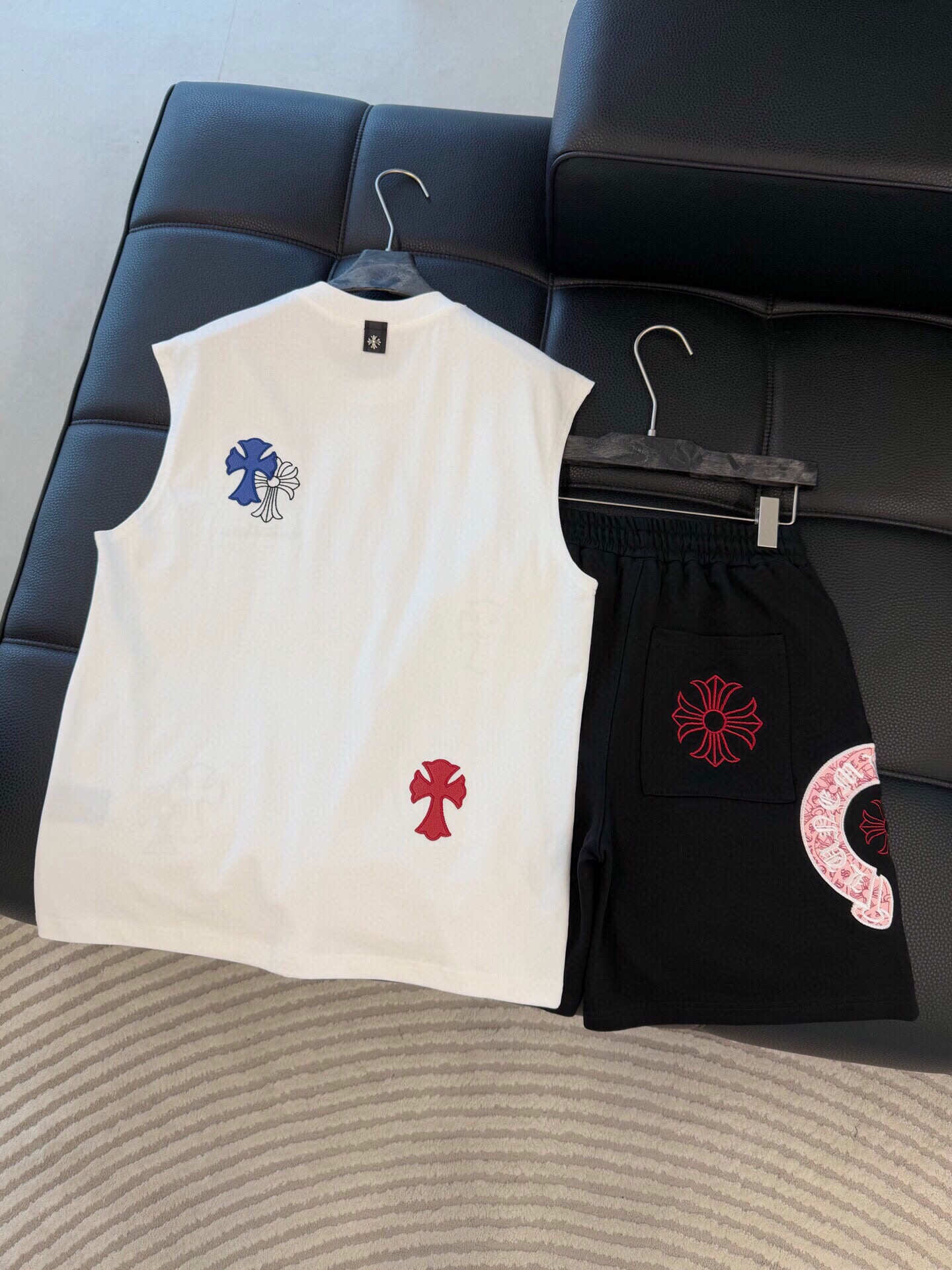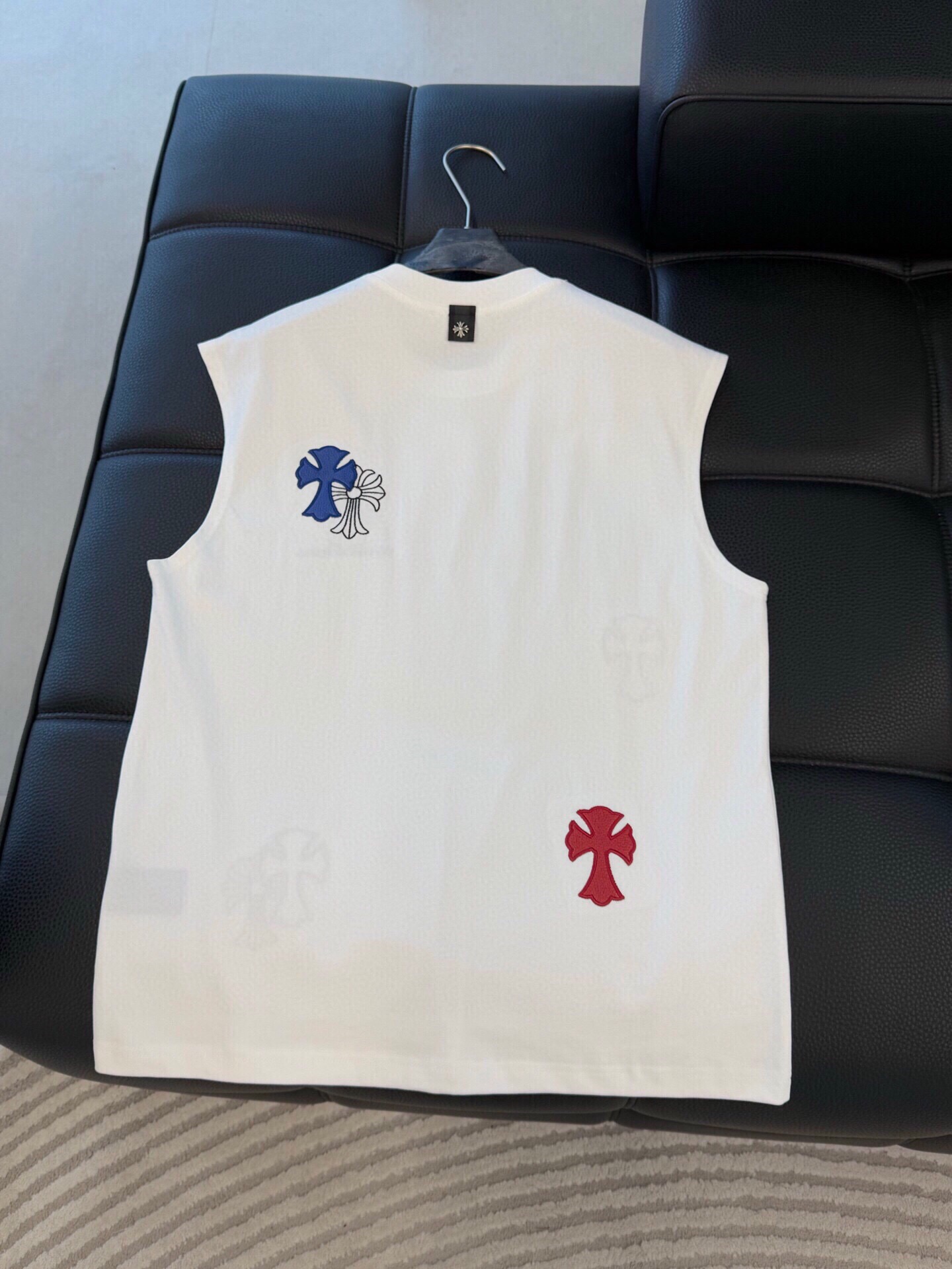 这款衣服是AAAAA 1:1 质量 (非常棒). 使用了和原版一模一样的材料. 商标部分也保持了和克罗心/Chrome Hearts一样. 图片拍摄是实物衣服拍摄, 您所收到的实物保证和我们图片一模一样.