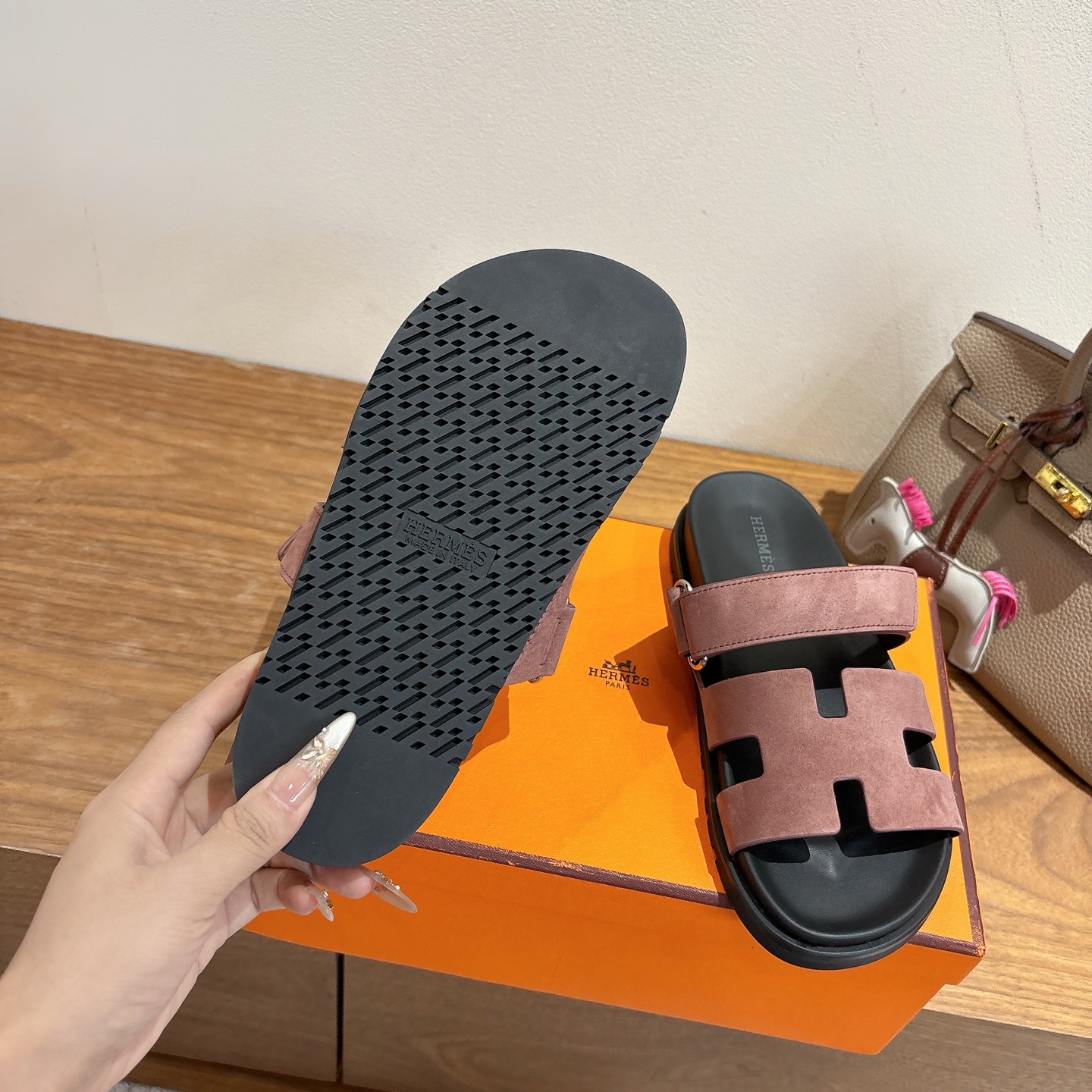 这款鞋子是AAAAA 1:1 质量 (非常棒). 使用了和原版一模一样的材料. 商标部分也保持了和爱马仕/Hermes一样. 图片拍摄是实物鞋子拍摄, 您所收到的实物保证和我们图片一模一样.