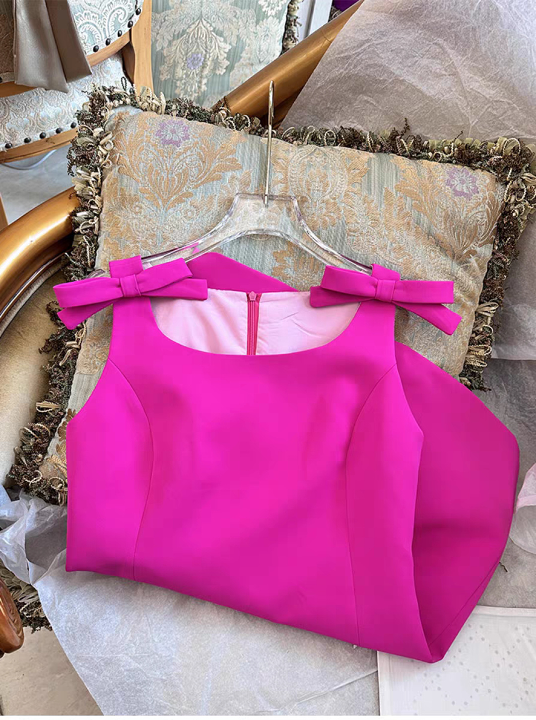 这款衣服是AAAAA 1:1 质量 (非常棒). 使用了和原版一模一样的材料. 商标部分也保持了和缪缪/Miu Miu一样. 图片拍摄是实物衣服拍摄, 您所收到的实物保证和我们图片一模一样.