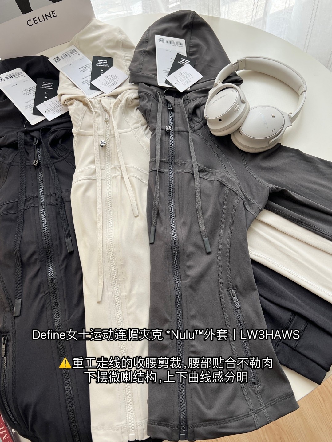 这款衣服是AAAAA 1:1 质量 (非常棒). 使用了和原版一模一样的材料. 商标部分也保持了和Lululemon一样. 图片拍摄是实物衣服拍摄, 您所收到的实物保证和我们图片一模一样.