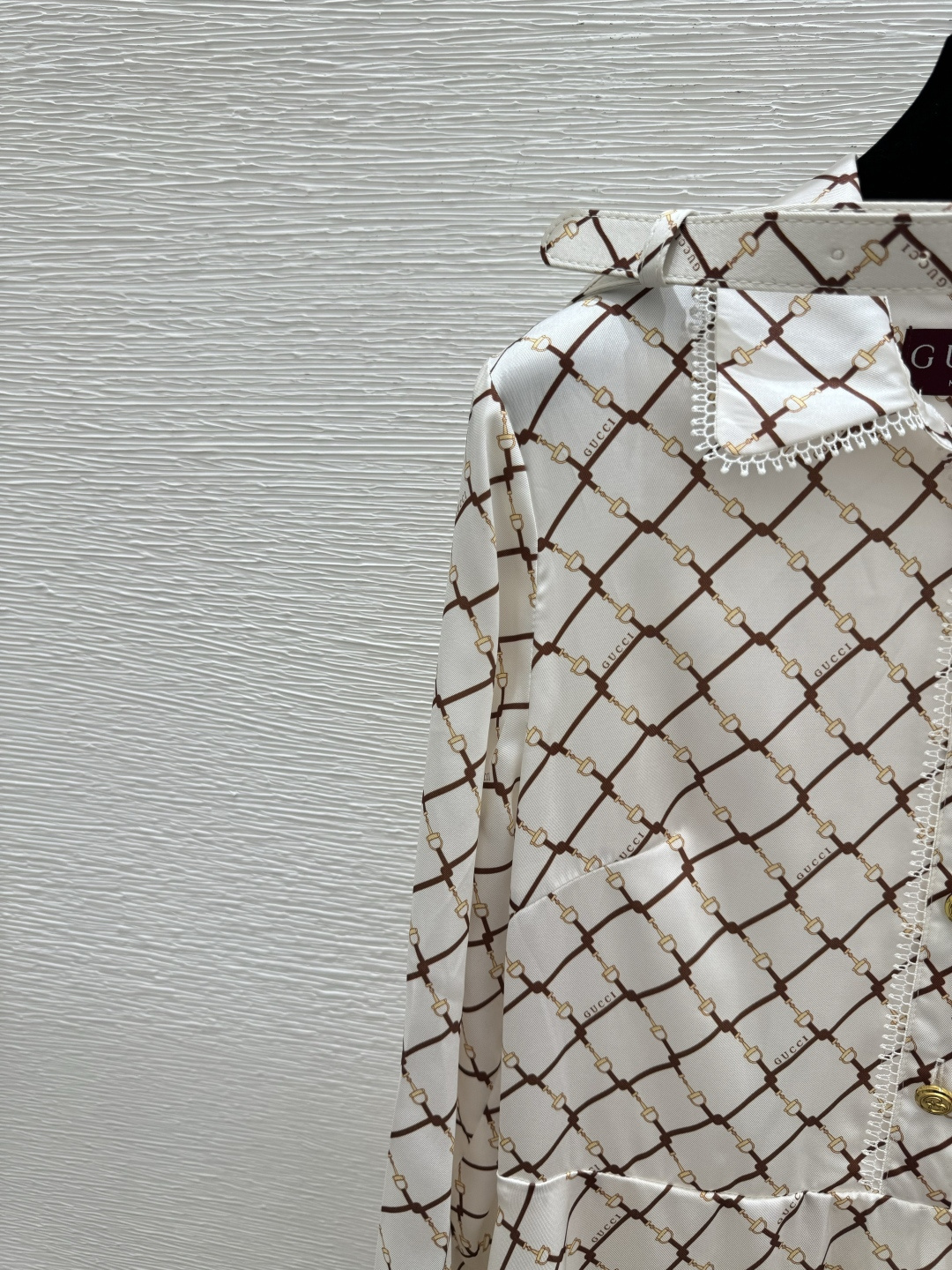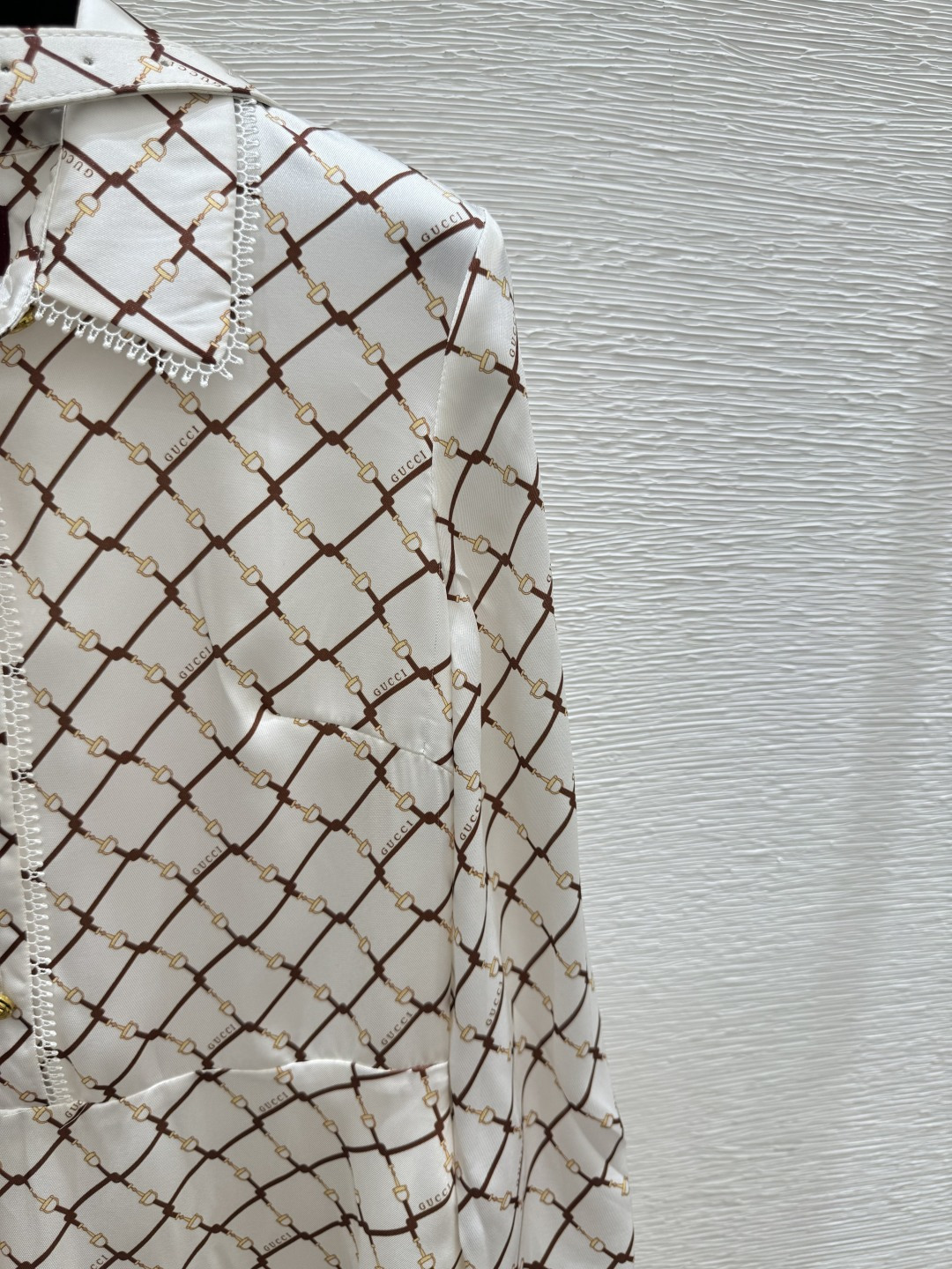 这款衣服是AAAAA 1:1 质量 (非常棒). 使用了和原版一模一样的材料. 商标部分也保持了和古奇/Gucci一样. 图片拍摄是实物衣服拍摄, 您所收到的实物保证和我们图片一模一样.