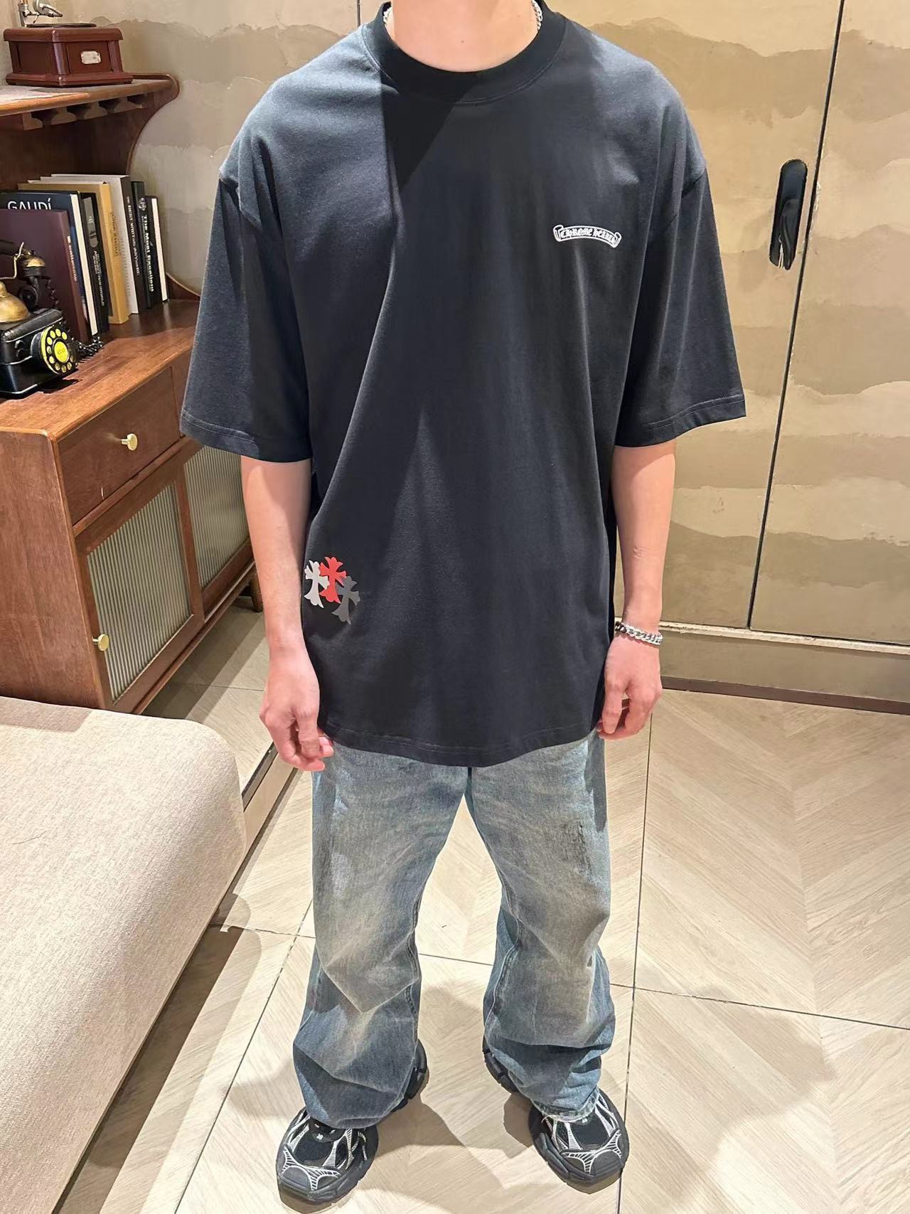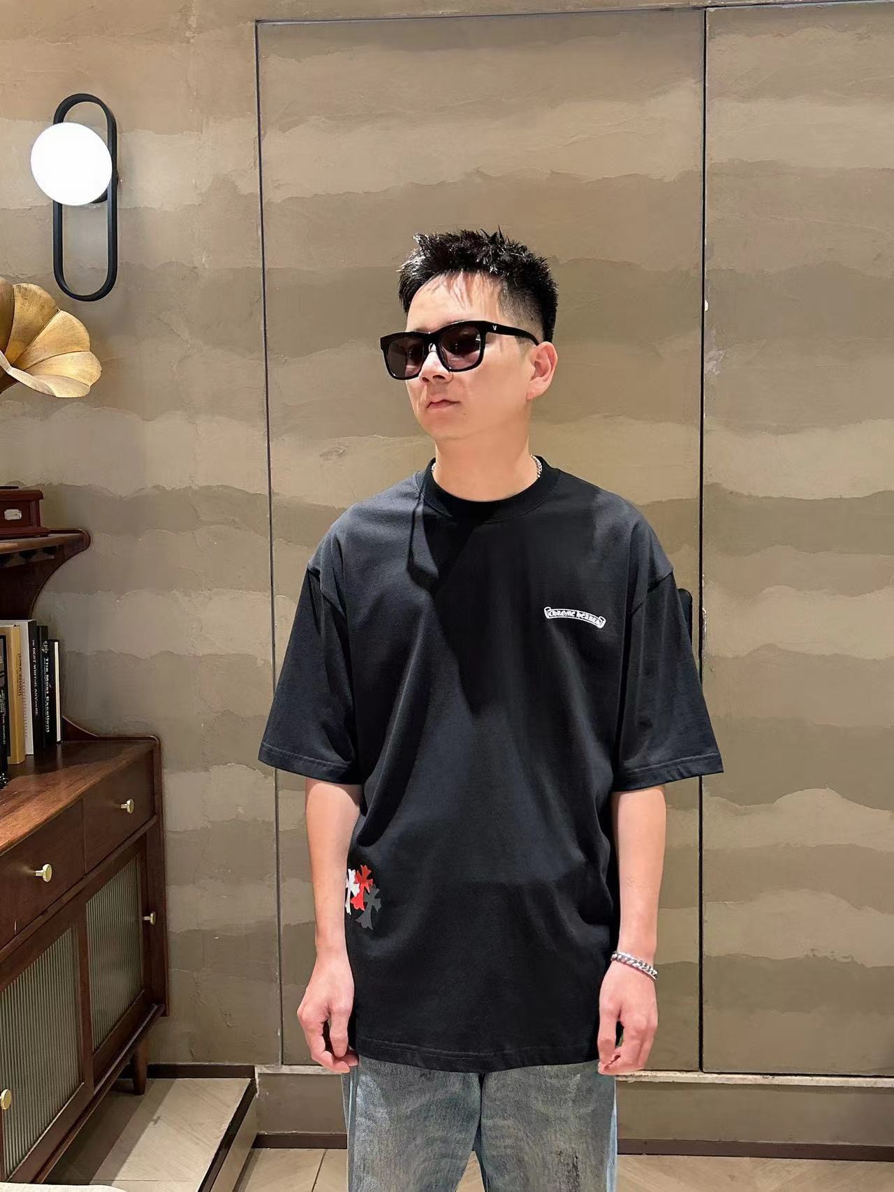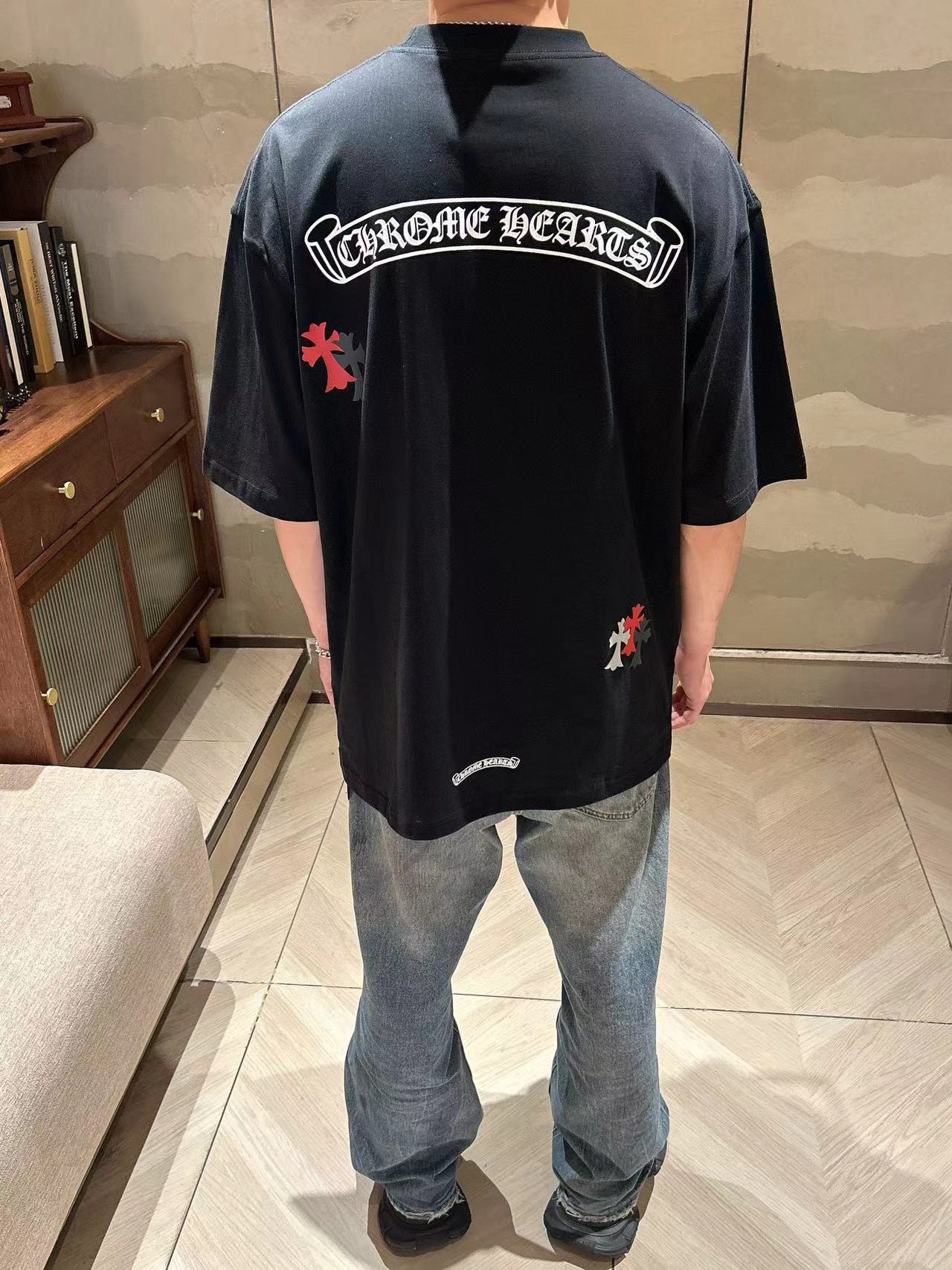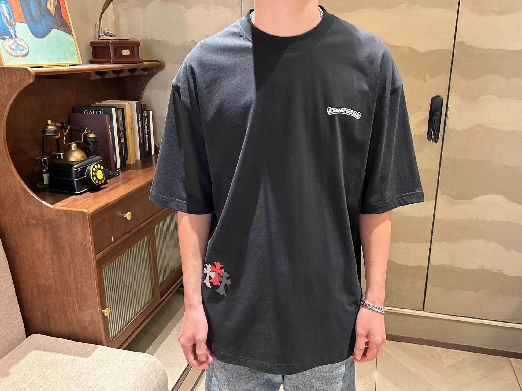 这款衣服是AAAAA 1:1 质量 (非常棒). 使用了和原版一模一样的材料. 商标部分也保持了和克罗心/Chrome Hearts一样. 图片拍摄是实物衣服拍摄, 您所收到的实物保证和我们图片一模一样.