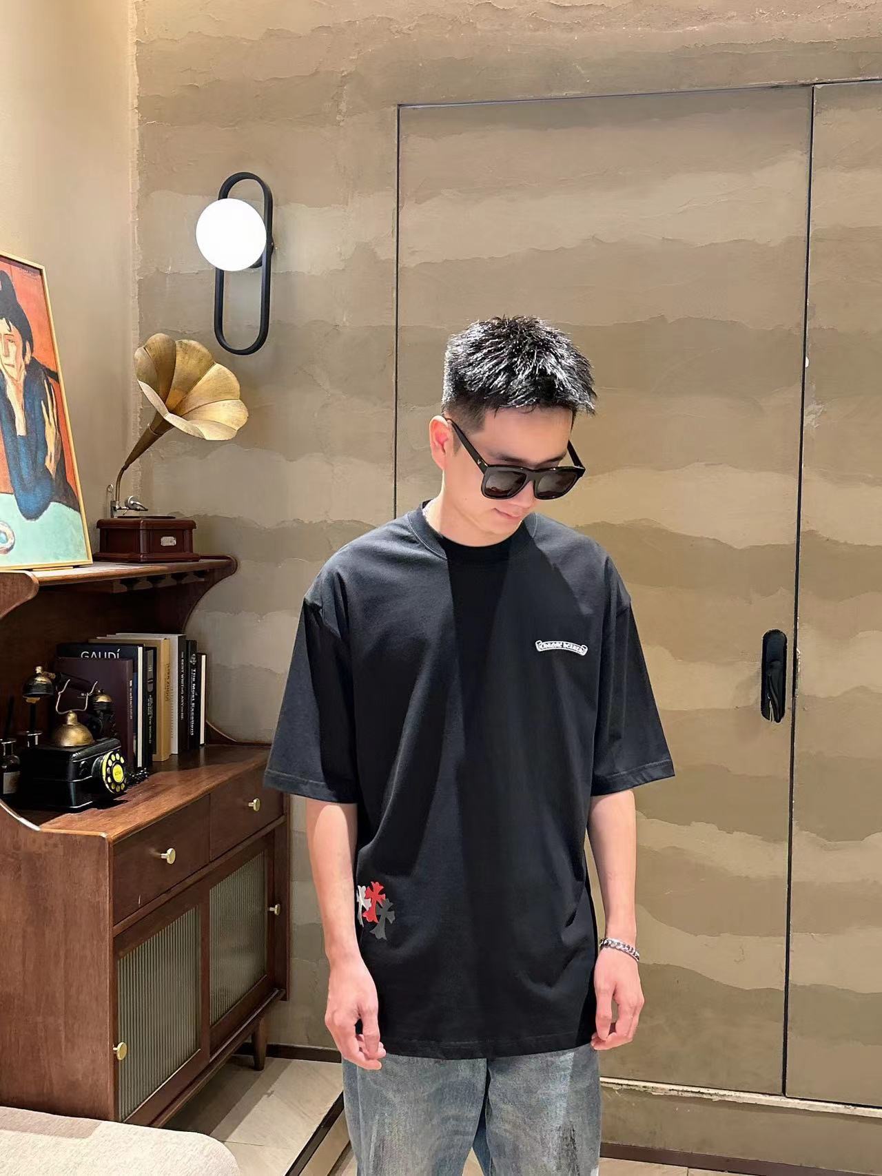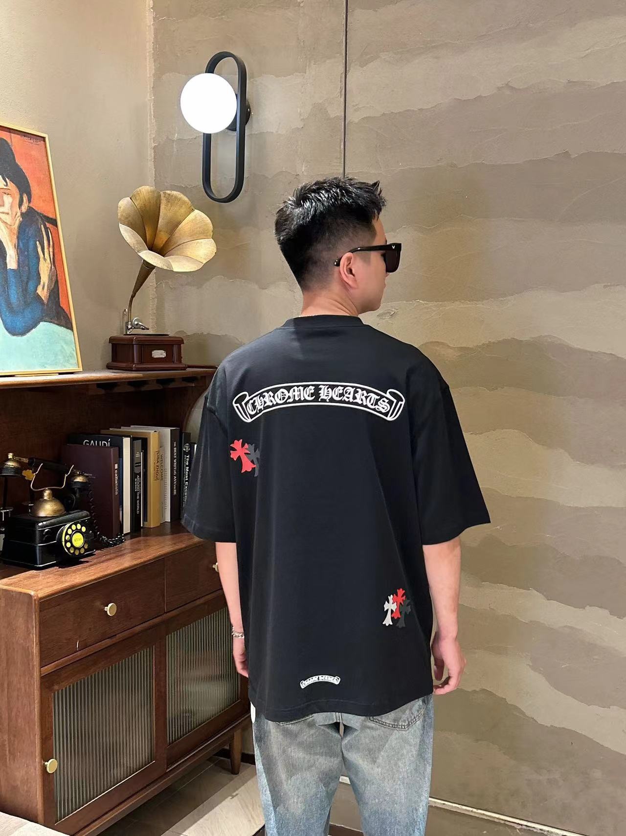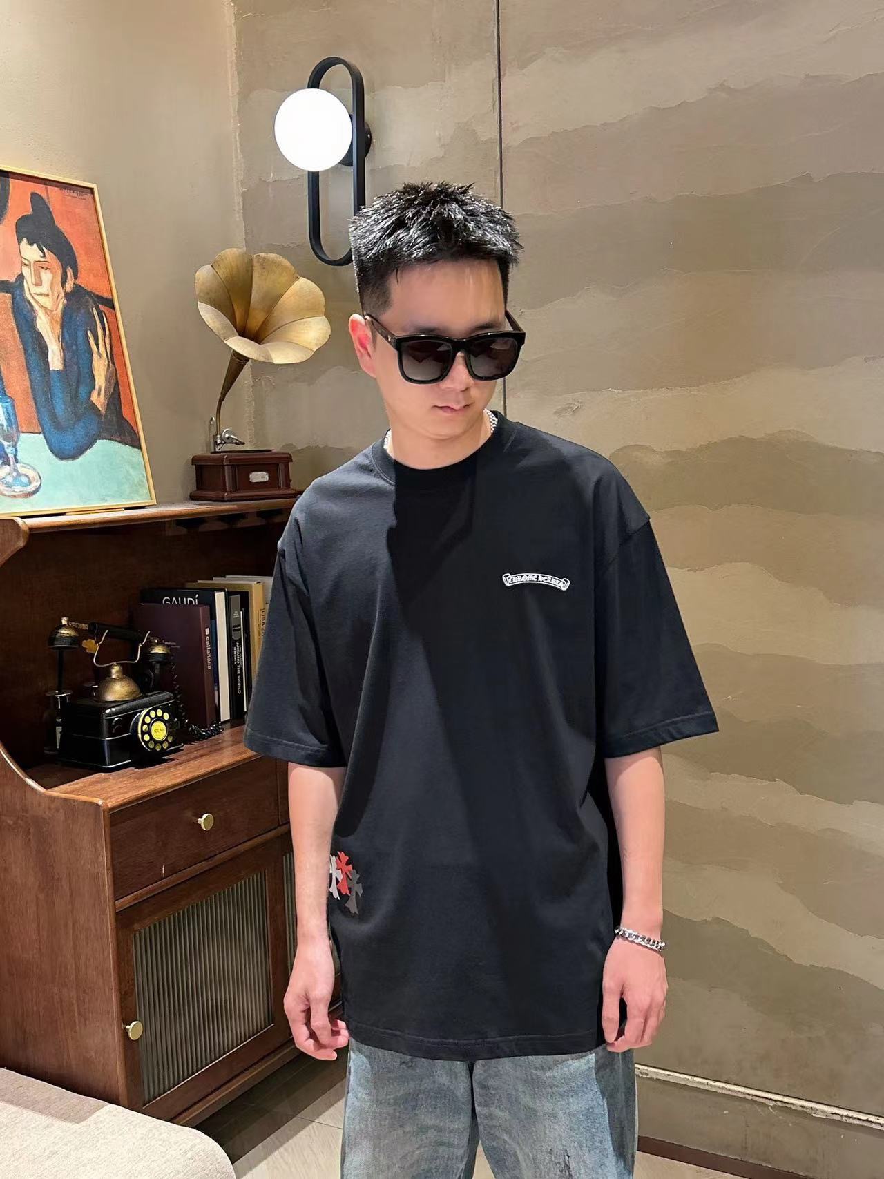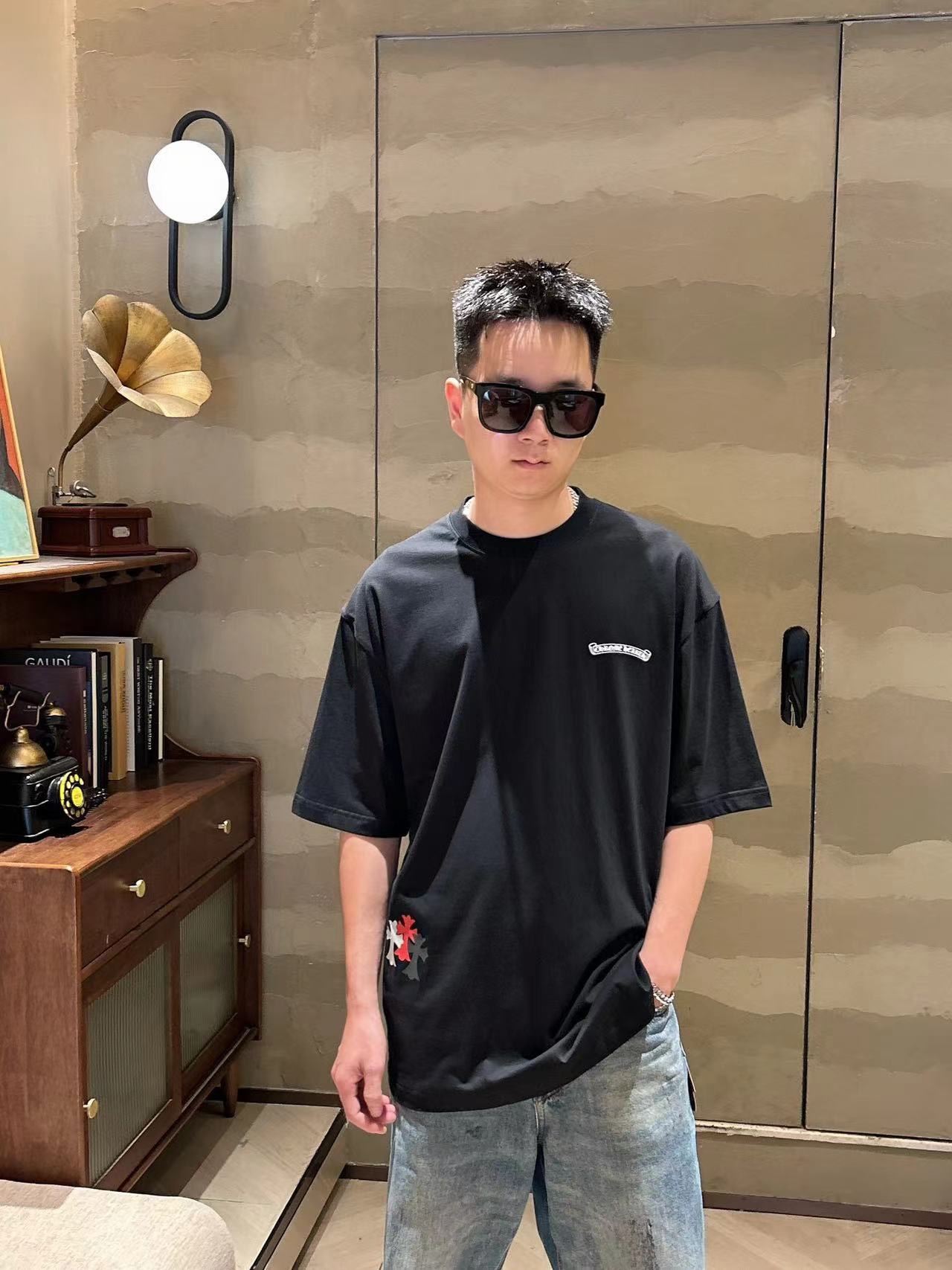 这款衣服是AAAAA 1:1 质量 (非常棒). 使用了和原版一模一样的材料. 商标部分也保持了和克罗心/Chrome Hearts一样. 图片拍摄是实物衣服拍摄, 您所收到的实物保证和我们图片一模一样.
