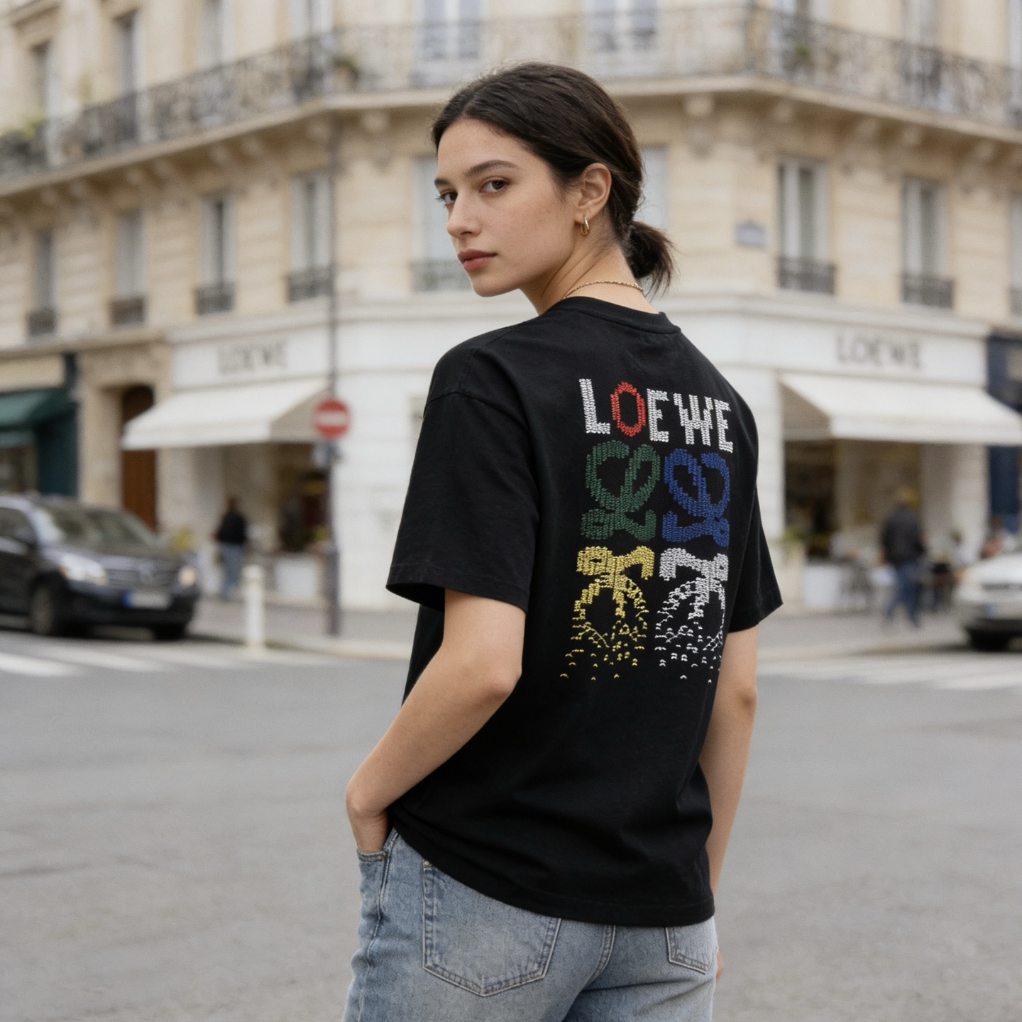 这款衣服是AAAAA 1:1 质量 (非常棒). 使用了和原版一模一样的材料. 商标部分也保持了和罗意威/Loewe一样. 图片拍摄是实物衣服拍摄, 您所收到的实物保证和我们图片一模一样.