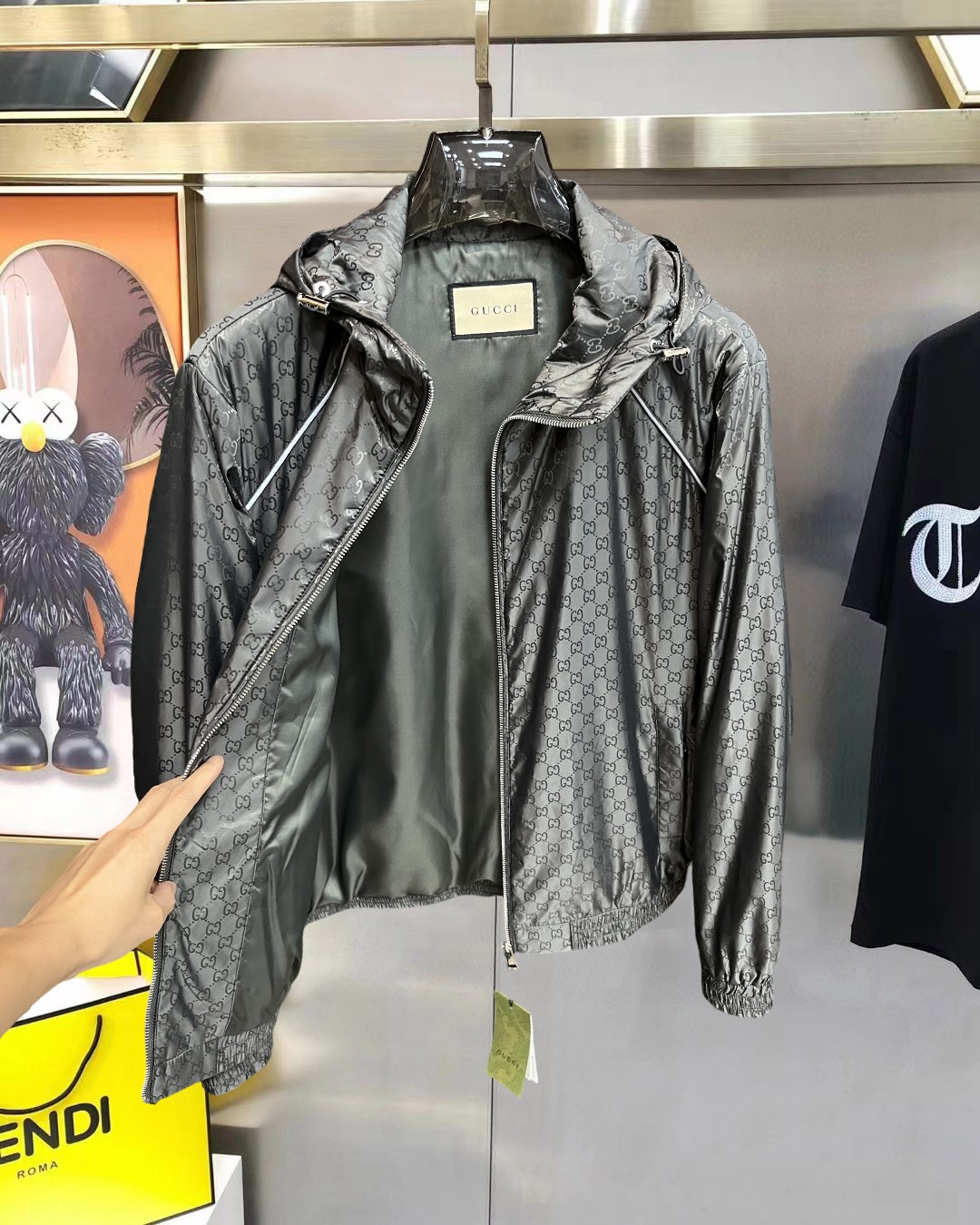 这款衣服是AAAAA 1:1 质量 (非常棒). 使用了和原版一模一样的材料. 商标部分也保持了和古奇/Gucci一样. 图片拍摄是实物衣服拍摄, 您所收到的实物保证和我们图片一模一样.
