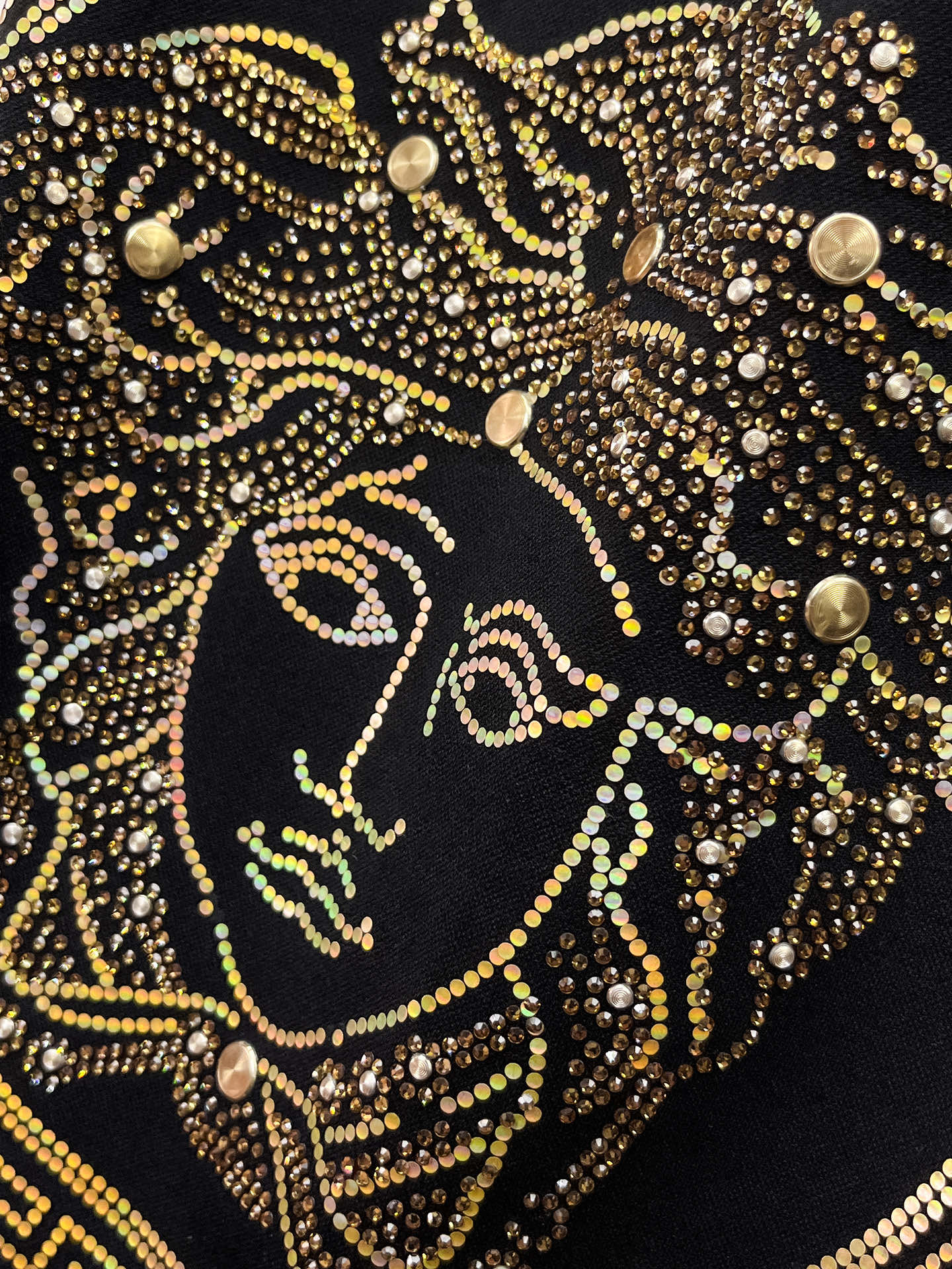 这款衣服是AAAAA 1:1 质量 (非常棒). 使用了和原版一模一样的材料. 商标部分也保持了和范思哲/Versace一样. 图片拍摄是实物衣服拍摄, 您所收到的实物保证和我们图片一模一样.