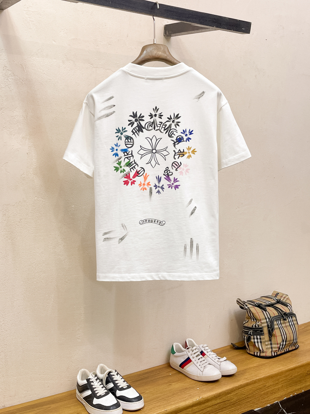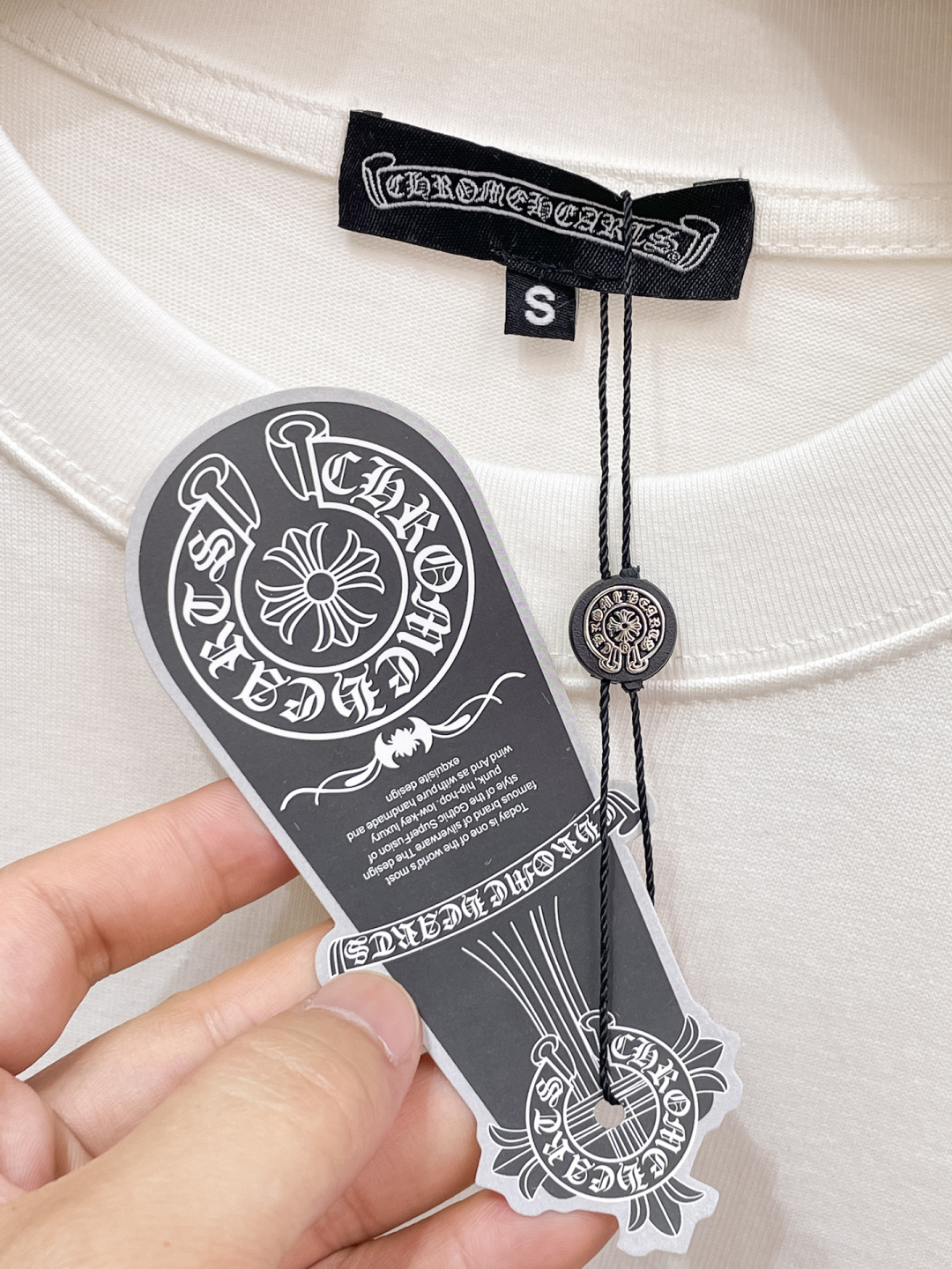 这款衣服是AAAAA 1:1 质量 (非常棒). 使用了和原版一模一样的材料. 商标部分也保持了和克罗心/Chrome Hearts一样. 图片拍摄是实物衣服拍摄, 您所收到的实物保证和我们图片一模一样.