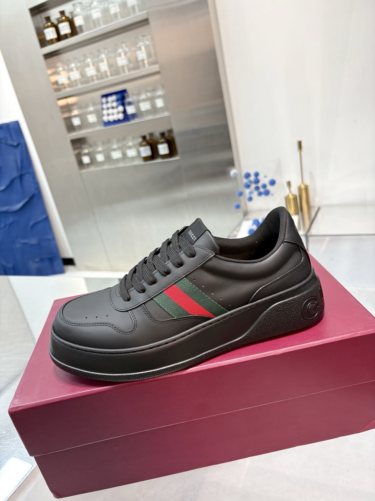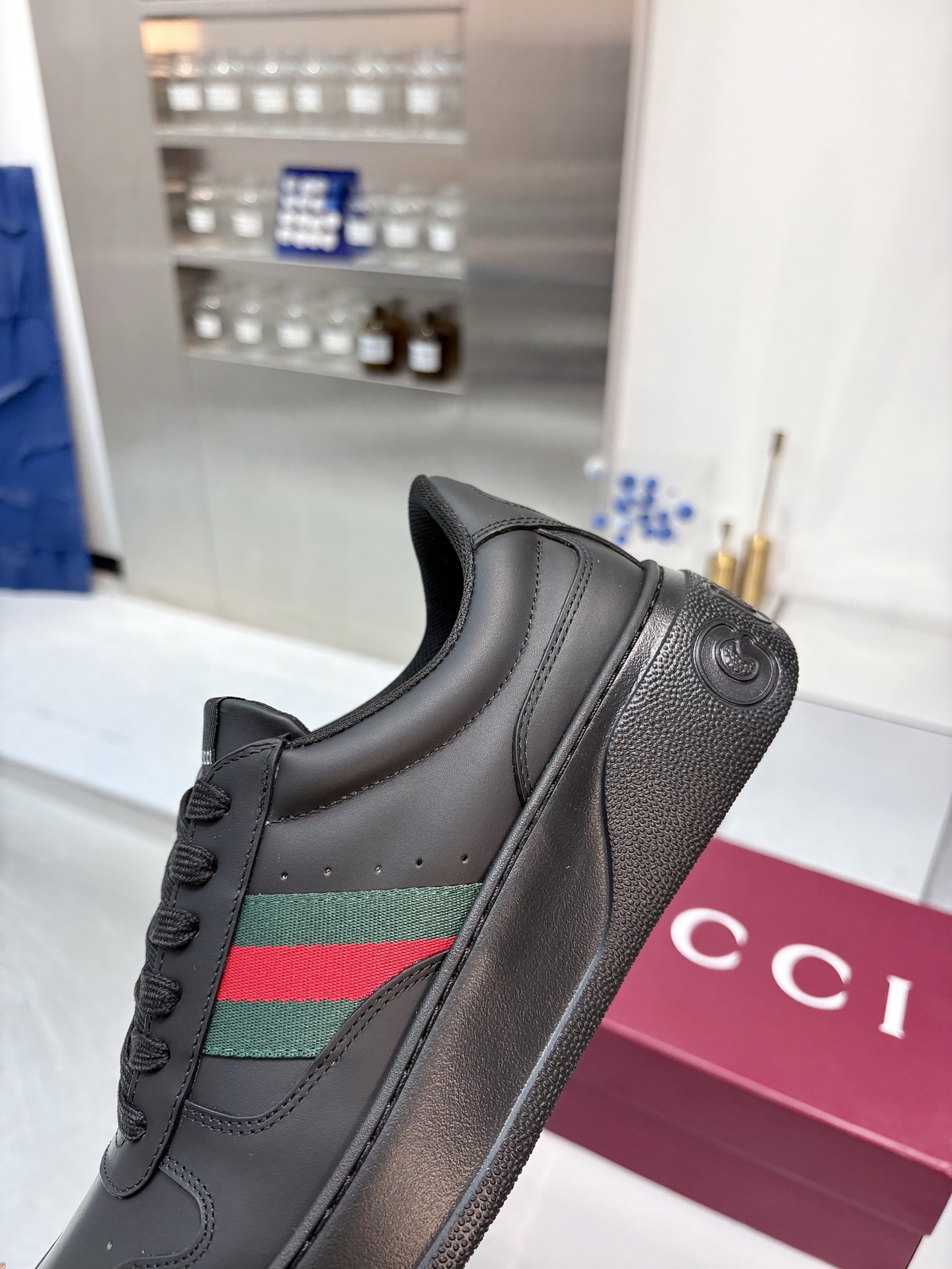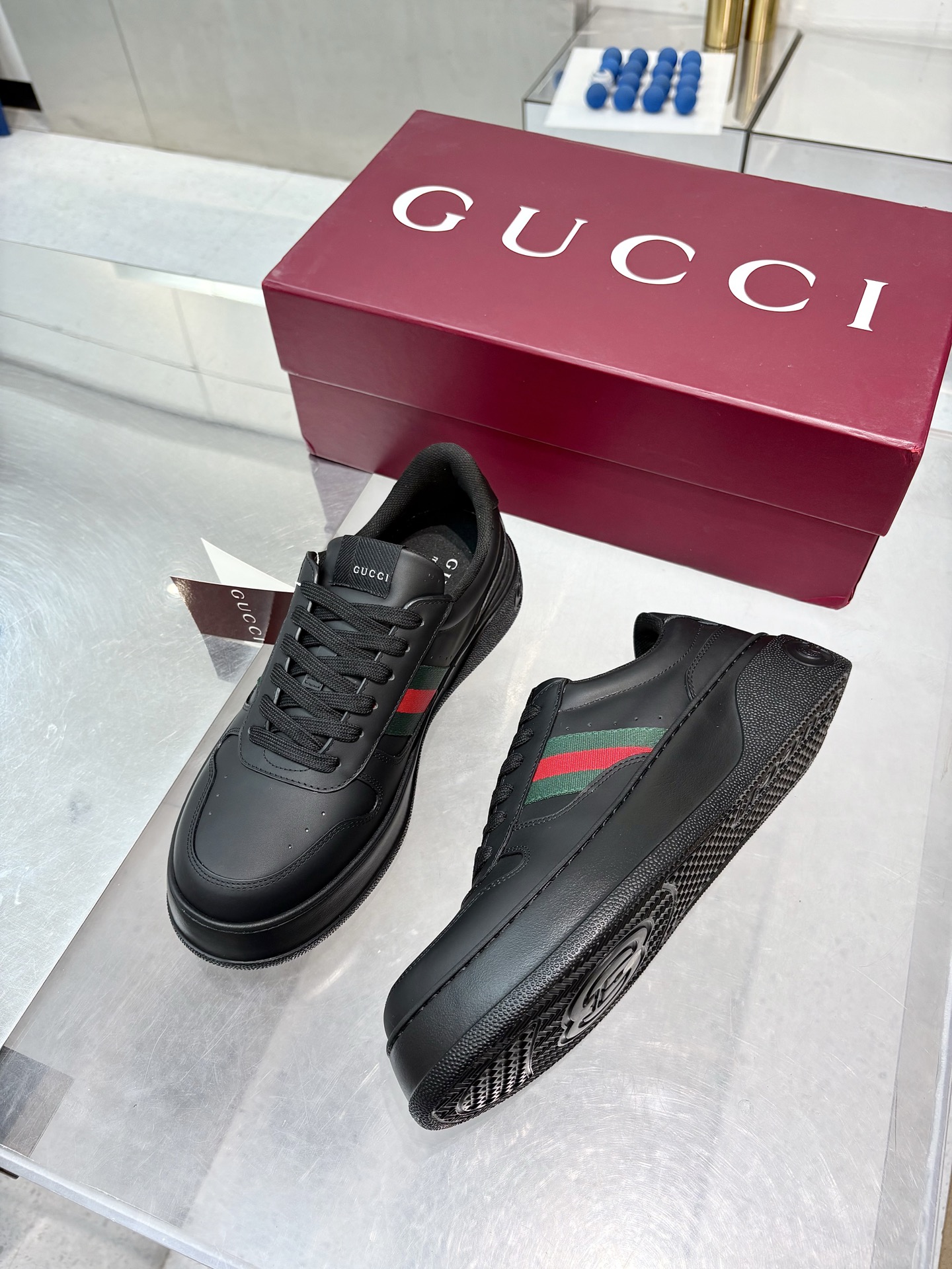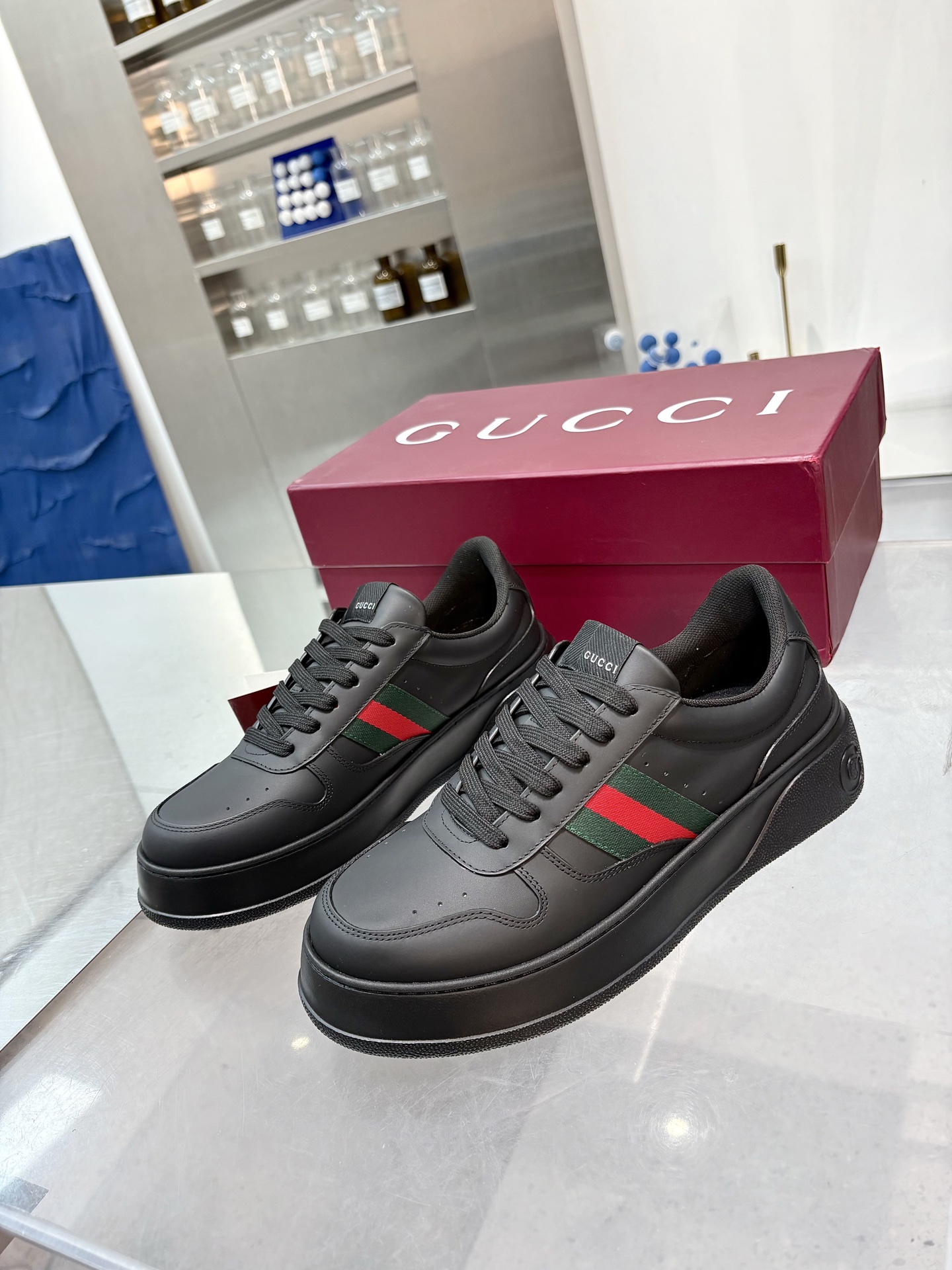 这款鞋子是AAAAA 1:1 质量 (非常棒). 使用了和原版一模一样的材料. 商标部分也保持了和古奇/Gucci一样. 图片拍摄是实物鞋子拍摄, 您所收到的实物保证和我们图片一模一样.