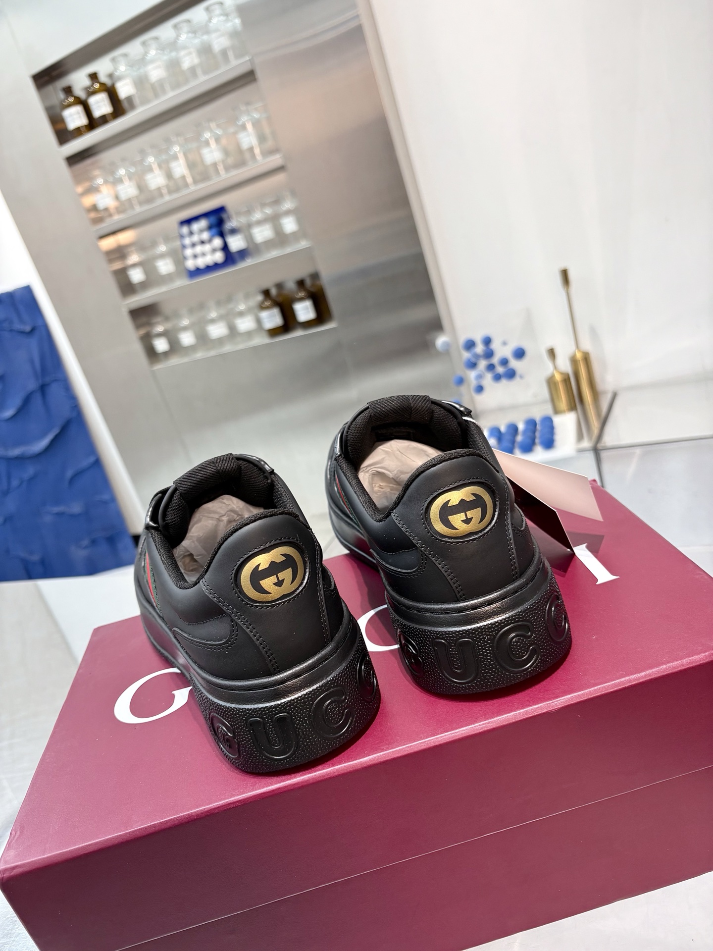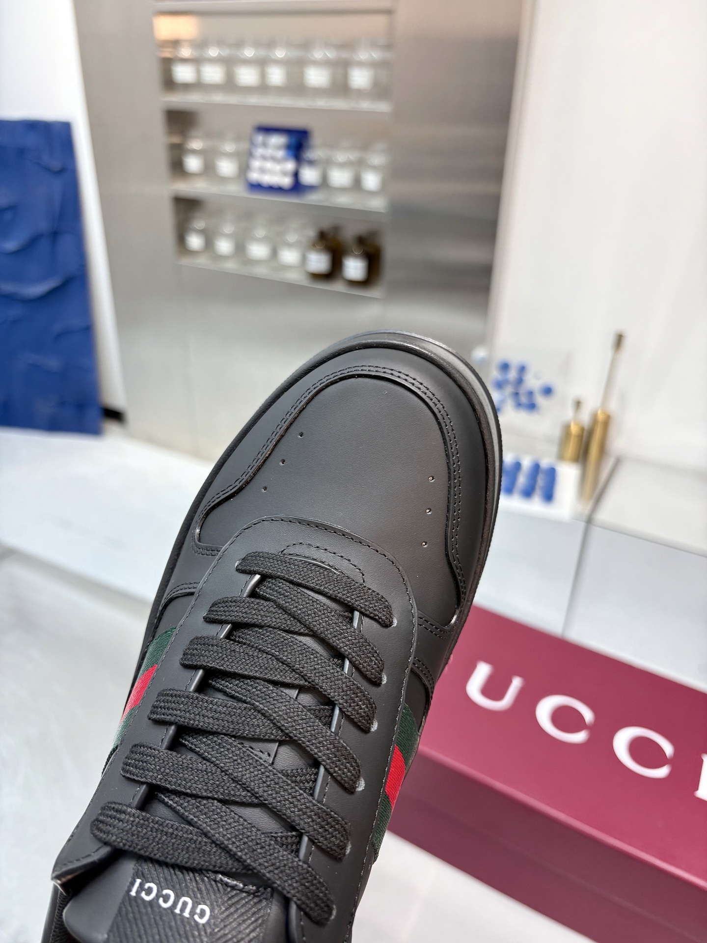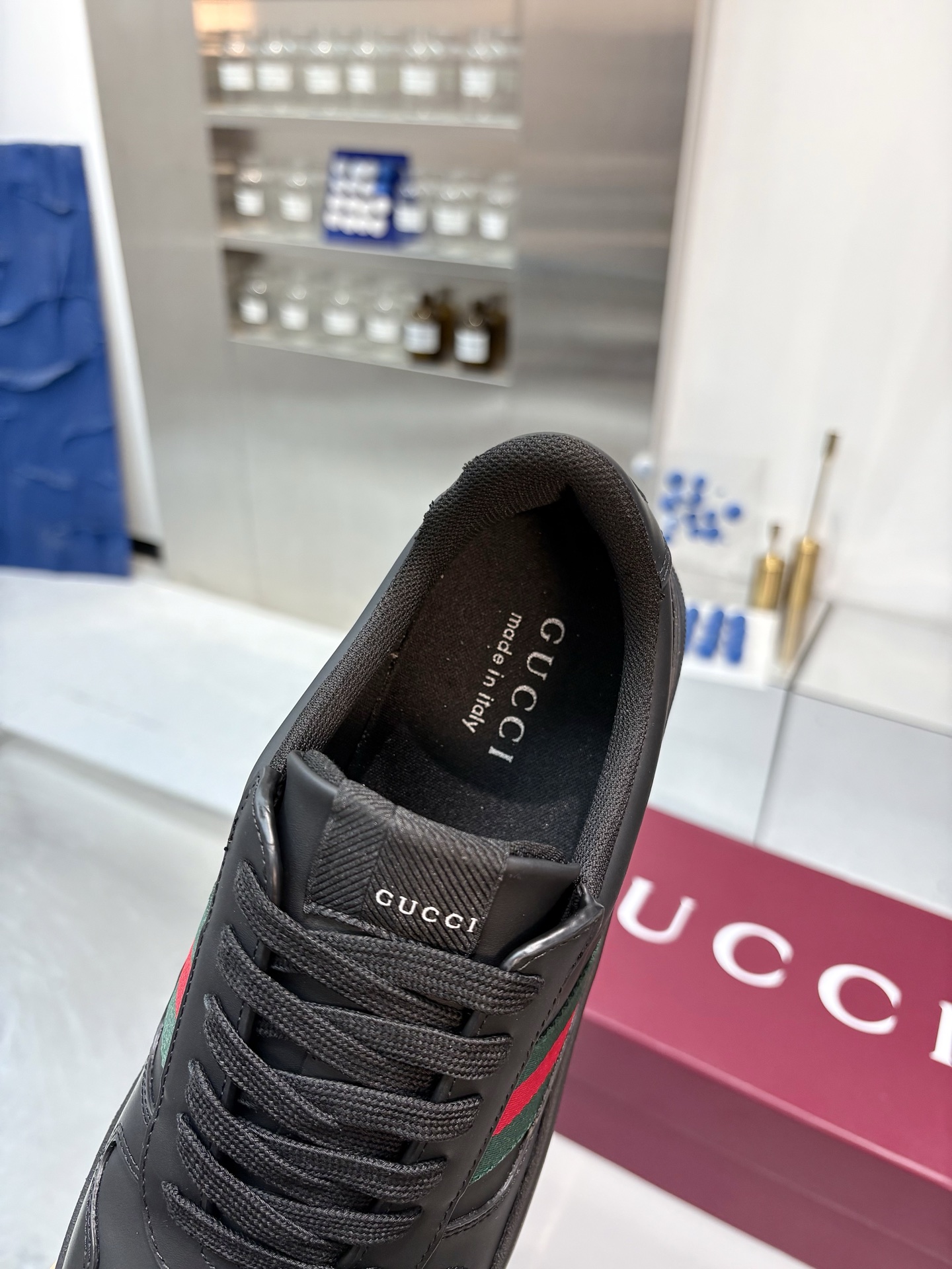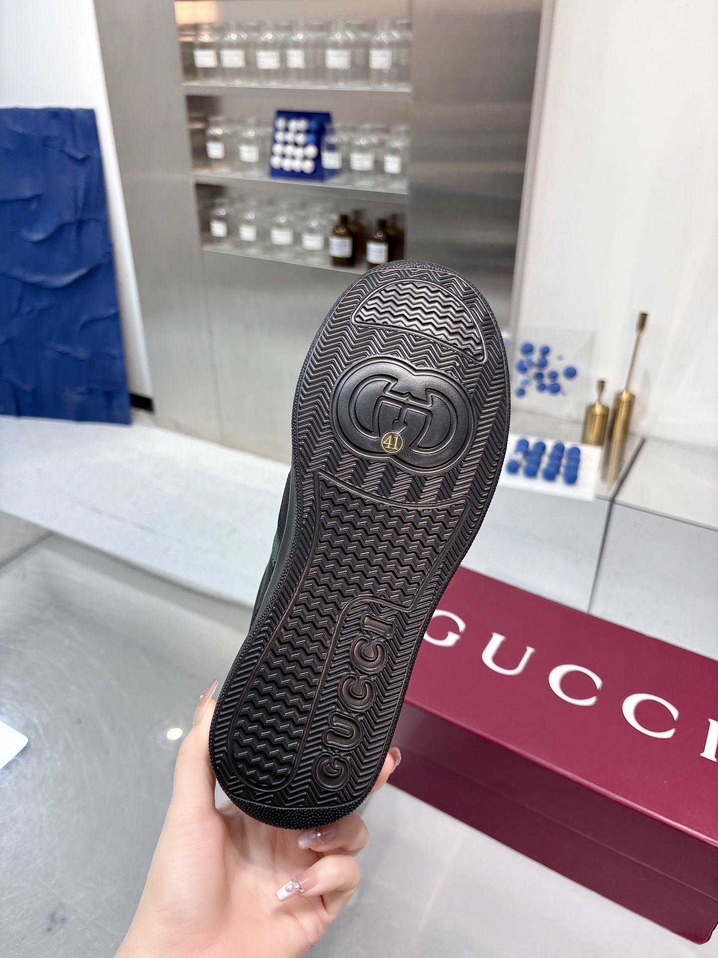 这款鞋子是AAAAA 1:1 质量 (非常棒). 使用了和原版一模一样的材料. 商标部分也保持了和古奇/Gucci一样. 图片拍摄是实物鞋子拍摄, 您所收到的实物保证和我们图片一模一样.