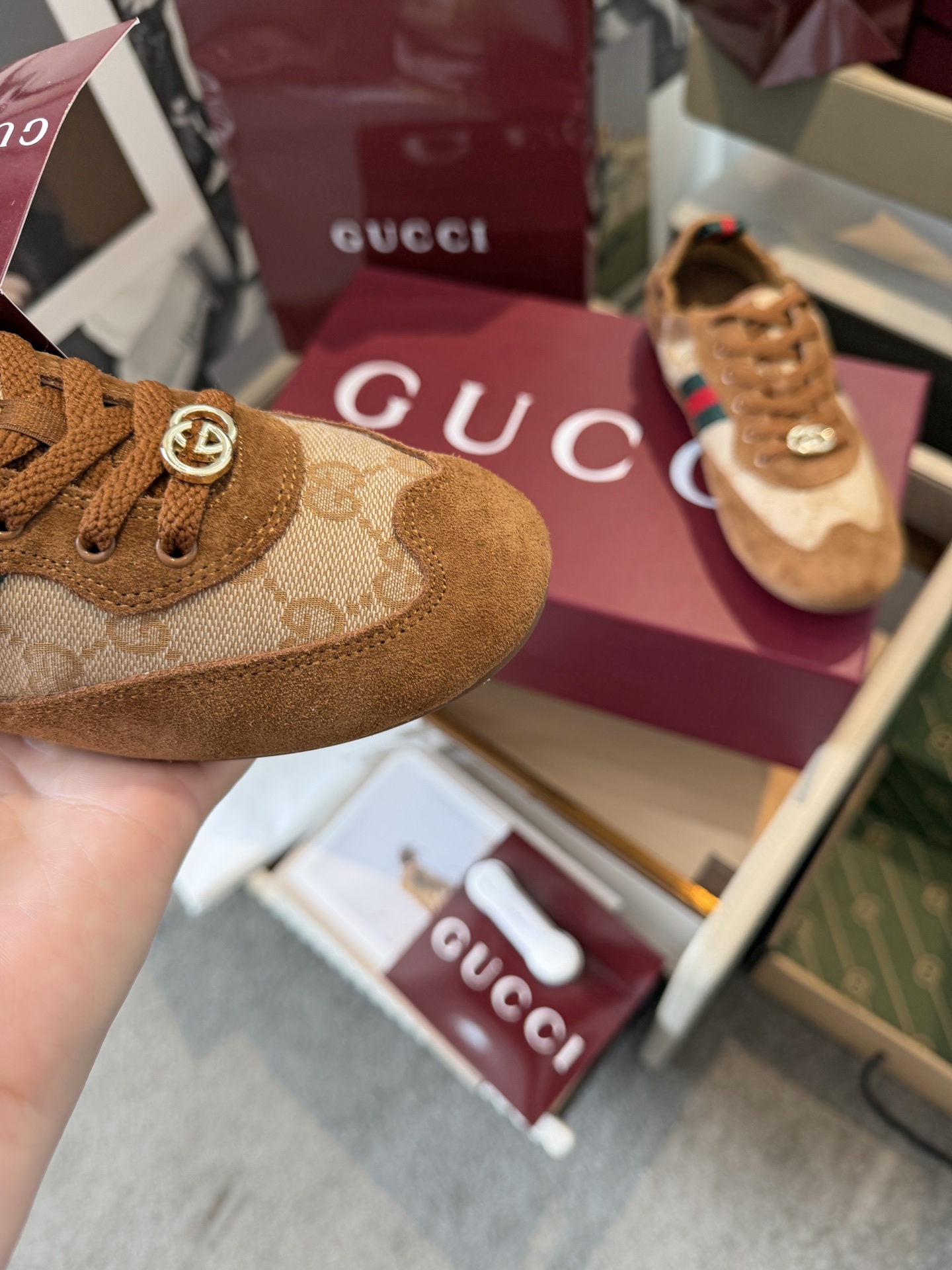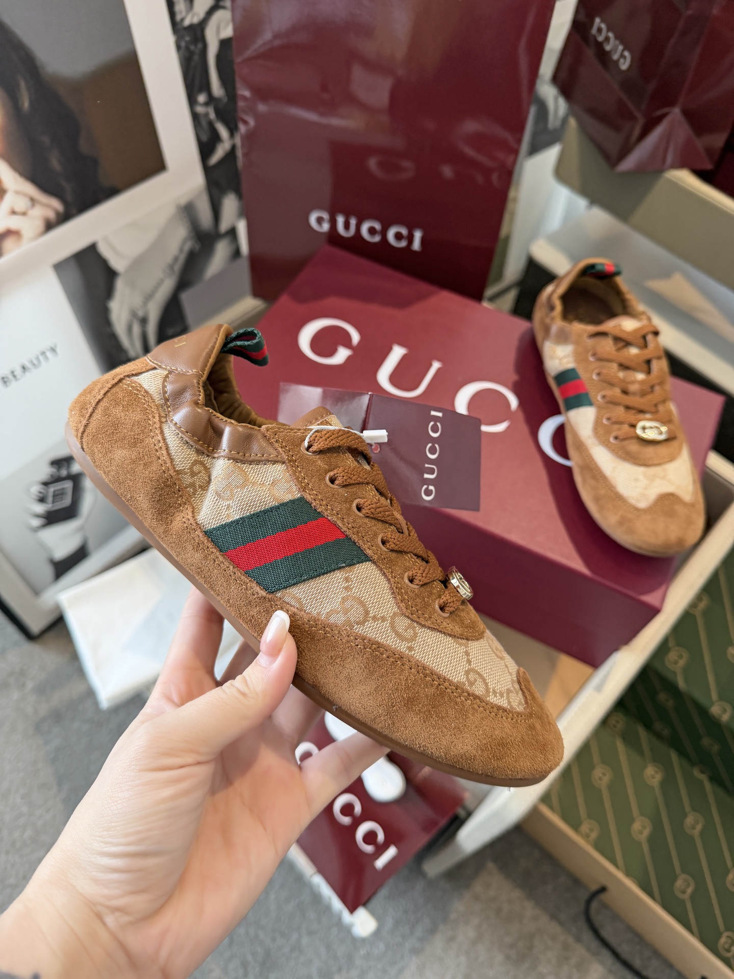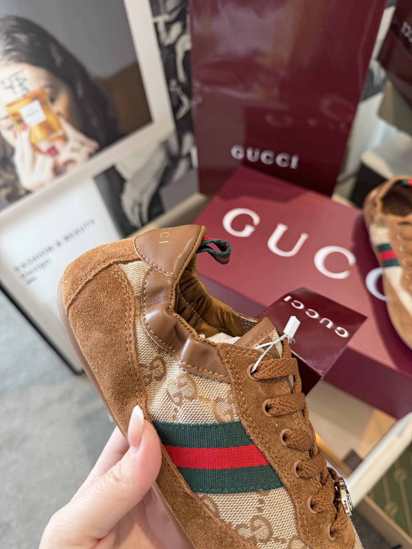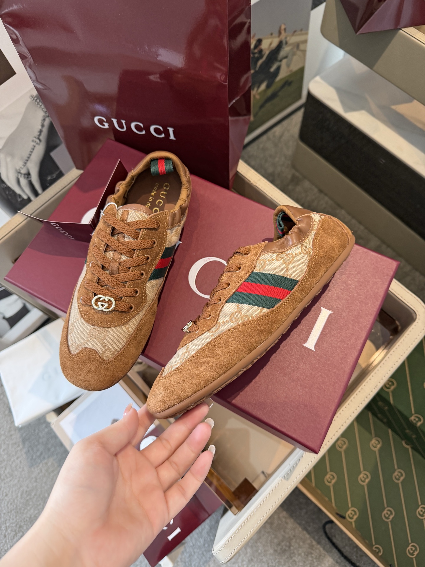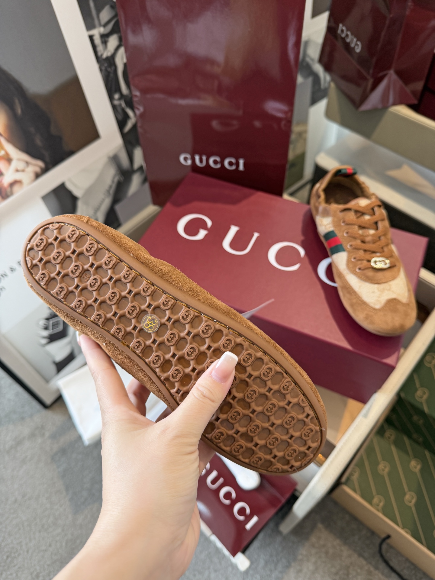 这款鞋子是AAAAA 1:1 质量 (非常棒). 使用了和原版一模一样的材料. 商标部分也保持了和古奇/Gucci一样. 图片拍摄是实物鞋子拍摄, 您所收到的实物保证和我们图片一模一样.
