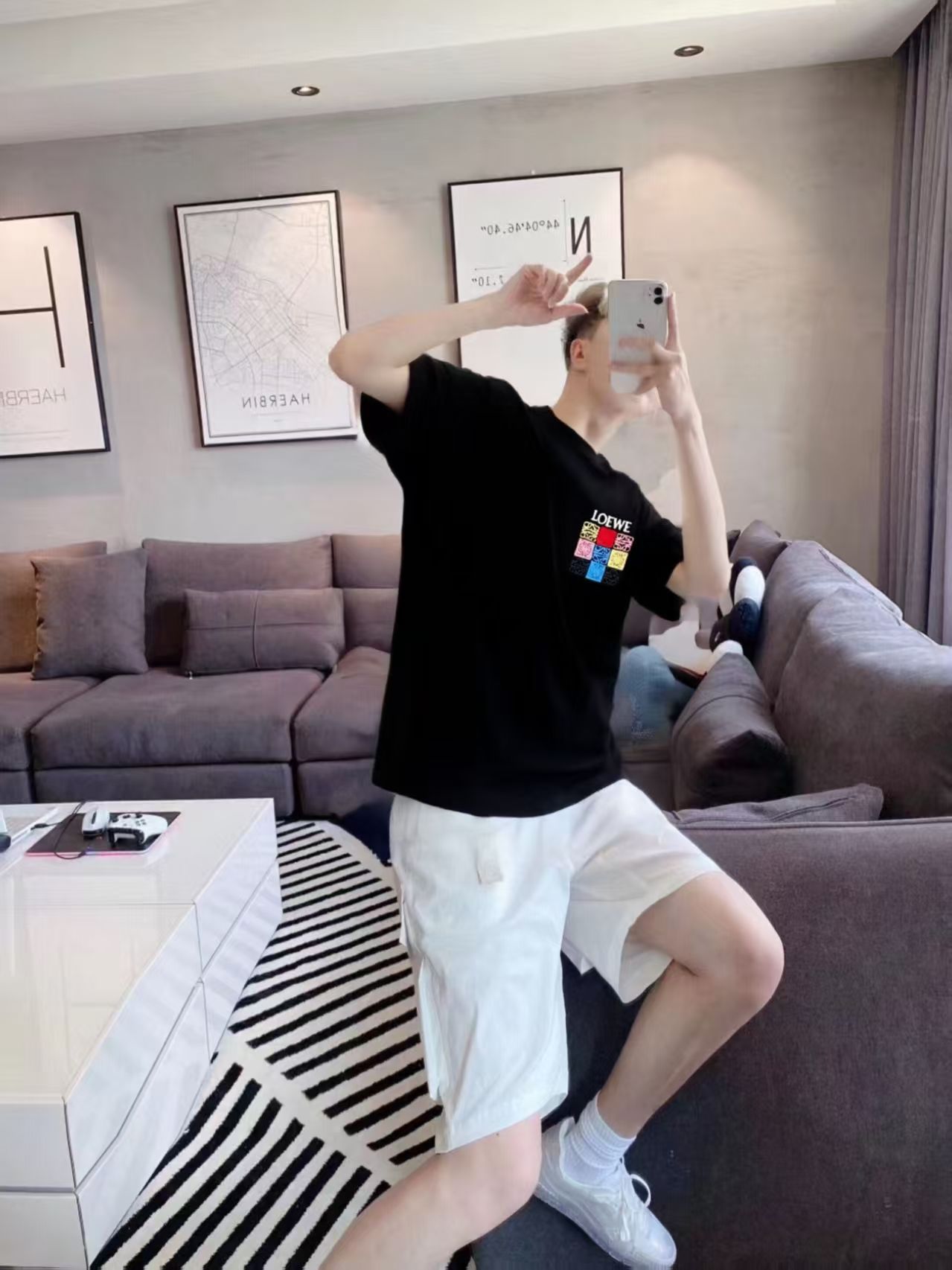 这款衣服是AAAAA 1:1 质量 (非常棒). 使用了和原版一模一样的材料. 商标部分也保持了和罗意威/Loewe一样. 图片拍摄是实物衣服拍摄, 您所收到的实物保证和我们图片一模一样.