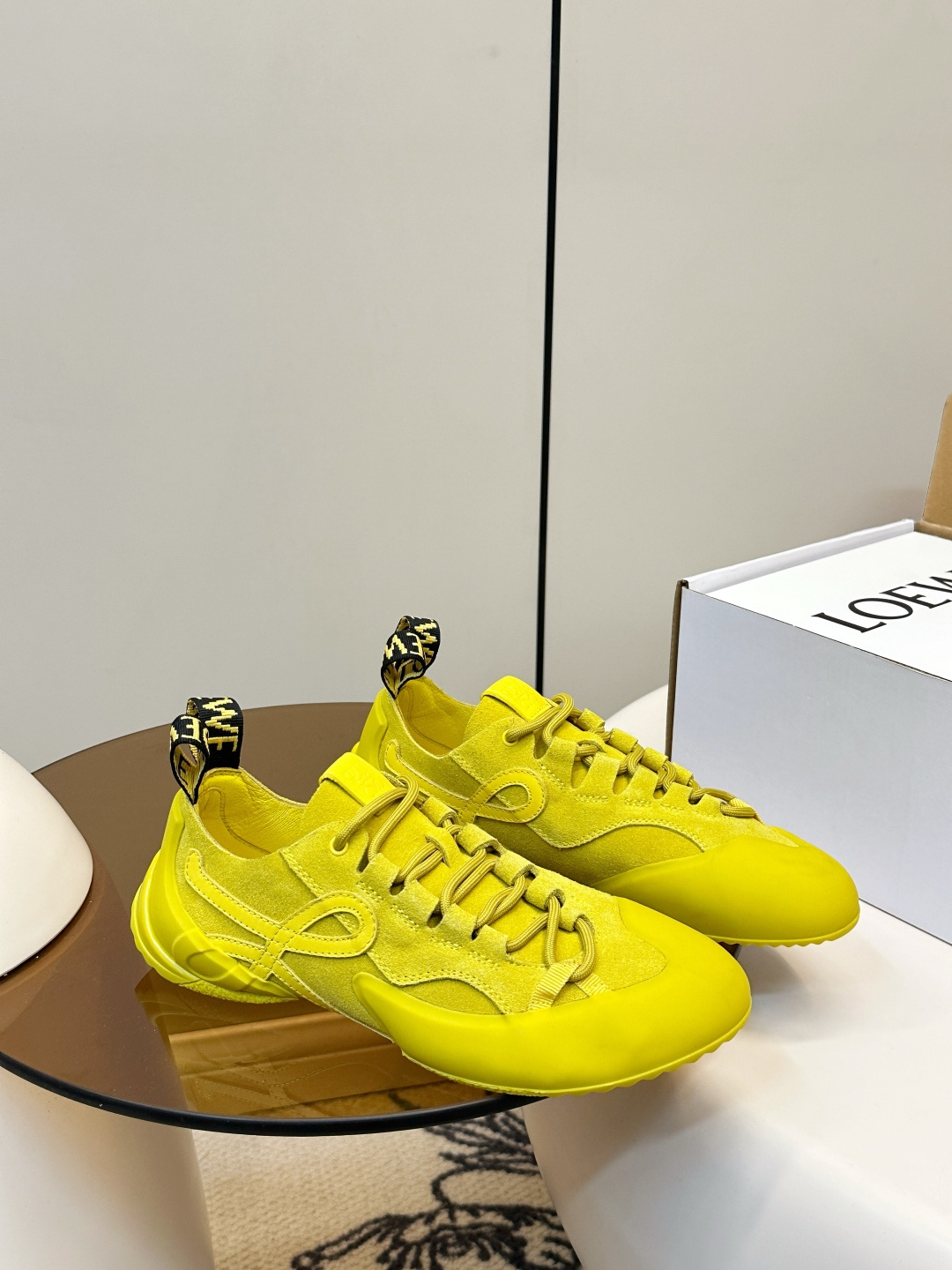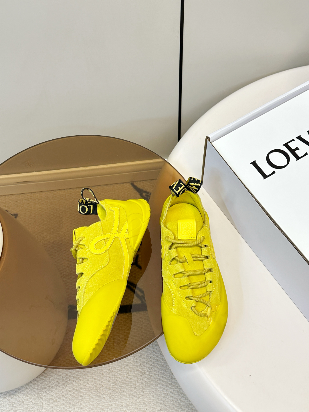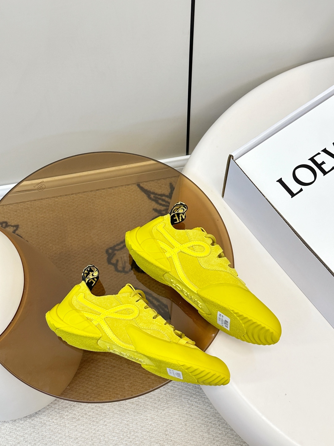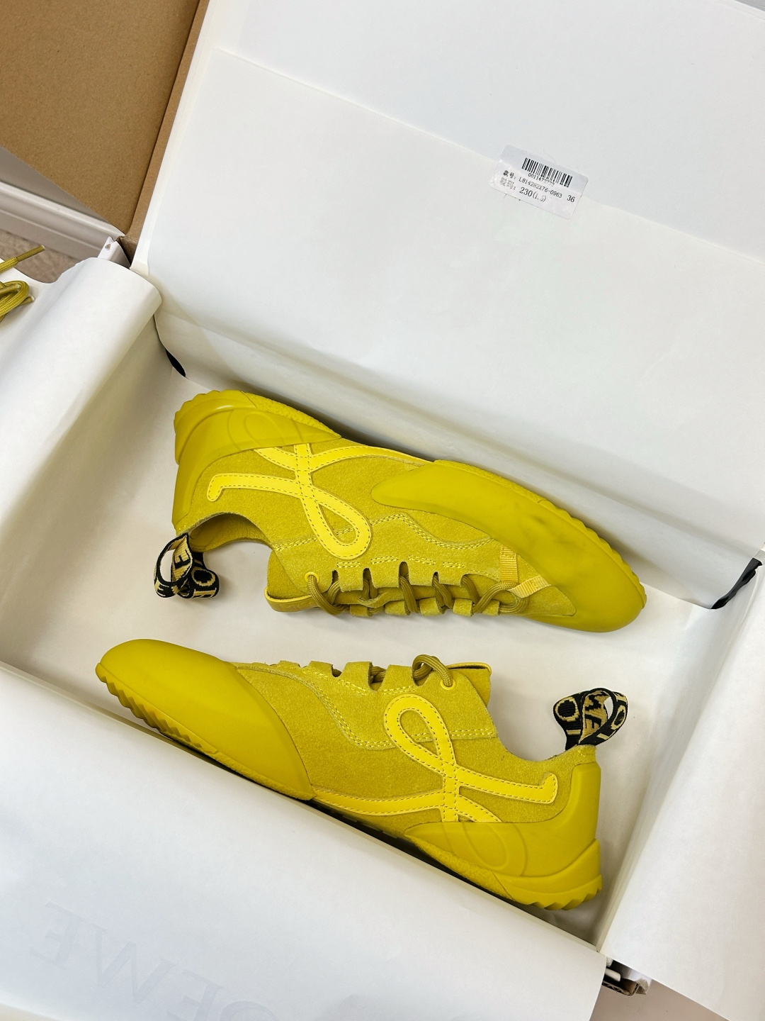 这款鞋子是AAAAA 1:1 质量 (非常棒). 使用了和原版一模一样的材料. 商标部分也保持了和罗意威/Loewe一样. 图片拍摄是实物鞋子拍摄, 您所收到的实物保证和我们图片一模一样.