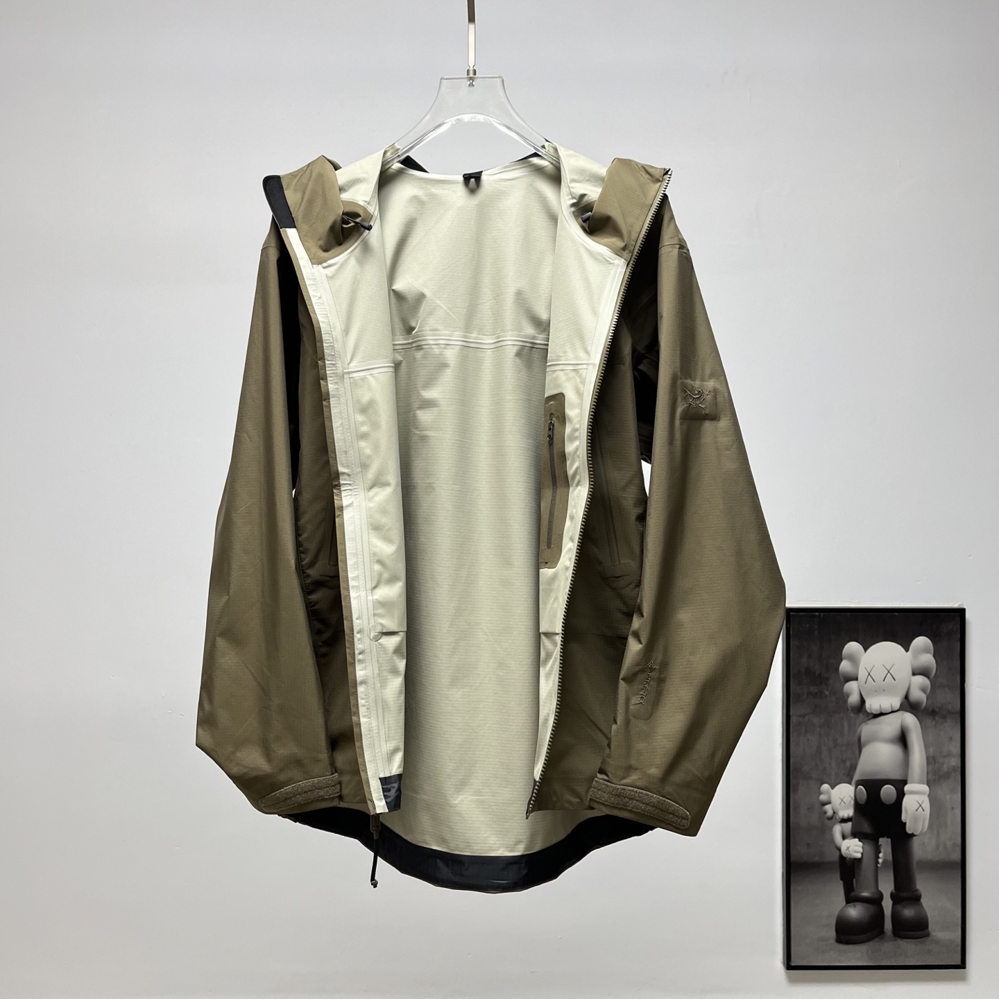 这款衣服是AAAAA 1:1 质量 (非常棒). 使用了和原版一模一样的材料. 商标部分也保持了和ARC'TERYX一样. 图片拍摄是实物衣服拍摄, 您所收到的实物保证和我们图片一模一样.