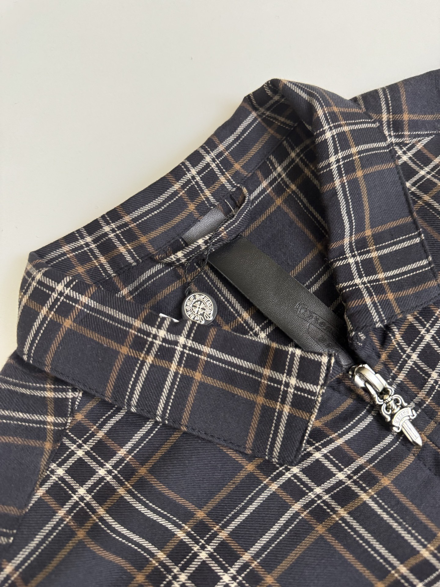 这款衣服是AAAAA 1:1 质量 (非常棒). 使用了和原版一模一样的材料. 商标部分也保持了和克罗心/Chrome Hearts一样. 图片拍摄是实物衣服拍摄, 您所收到的实物保证和我们图片一模一样.