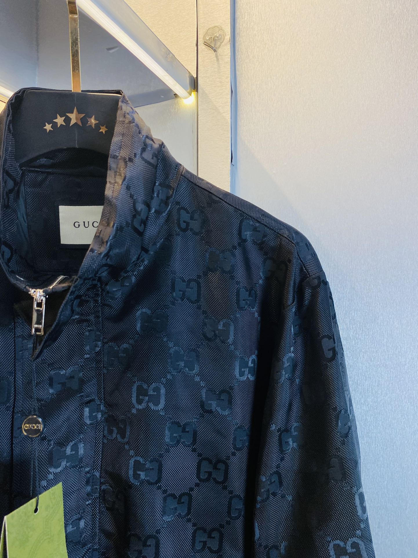 这款衣服是AAAAA 1:1 质量 (非常棒). 使用了和原版一模一样的材料. 商标部分也保持了和古奇/Gucci一样. 图片拍摄是实物衣服拍摄, 您所收到的实物保证和我们图片一模一样.