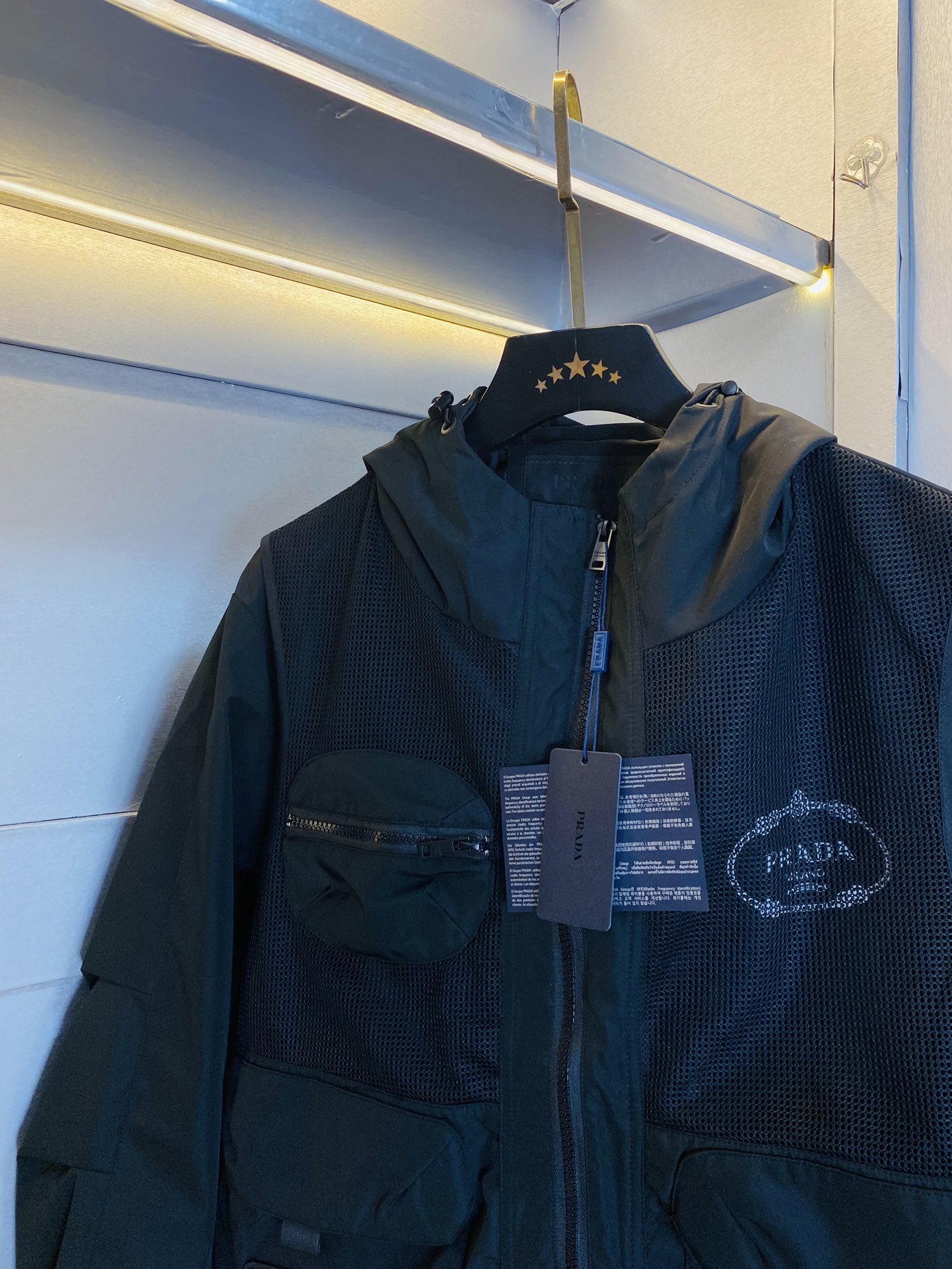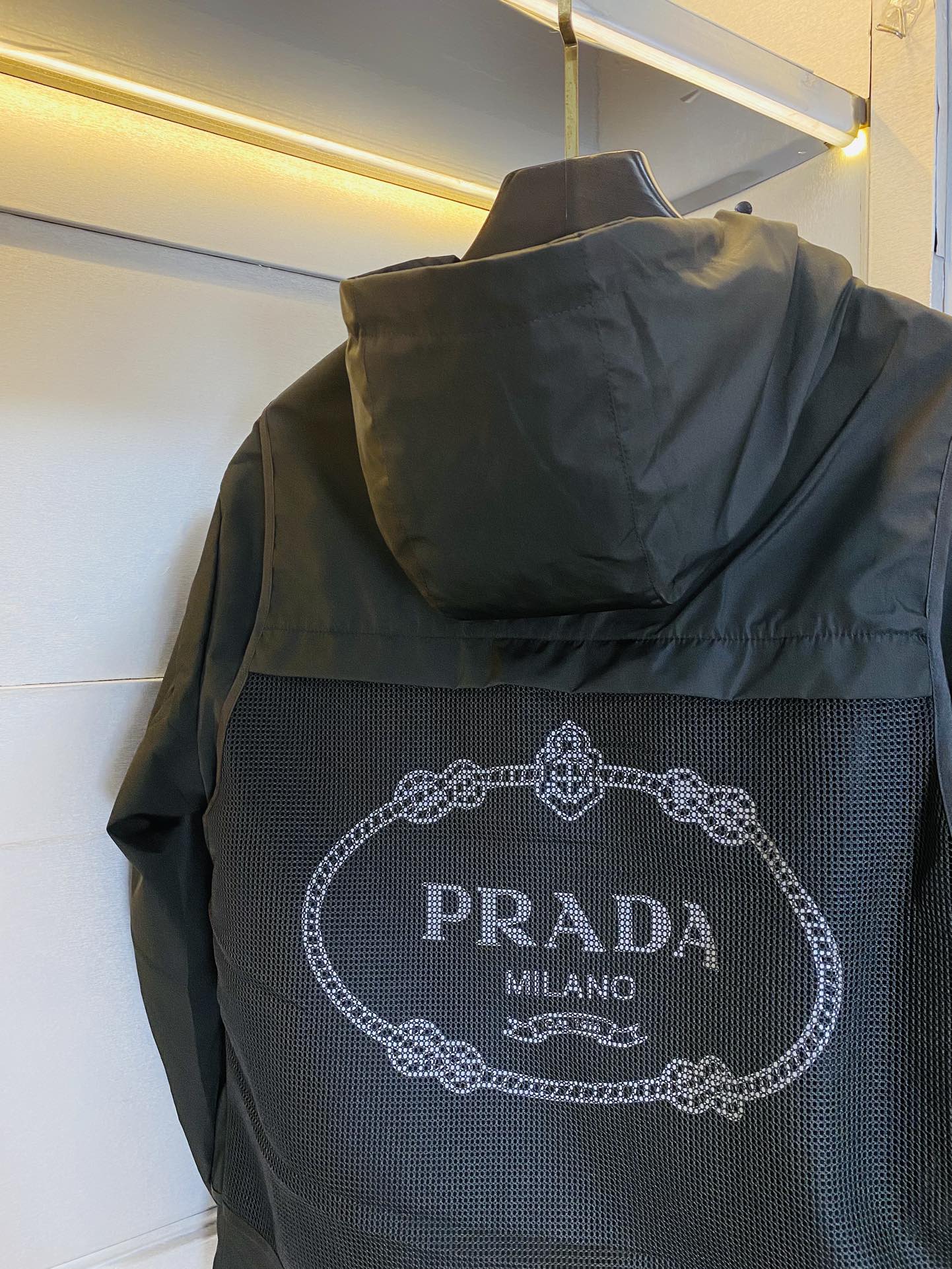 这款衣服是AAAAA 1:1 质量 (非常棒). 使用了和原版一模一样的材料. 商标部分也保持了和普拉达/Prada一样. 图片拍摄是实物衣服拍摄, 您所收到的实物保证和我们图片一模一样.